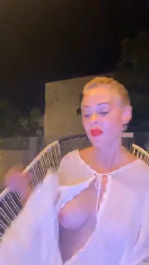 La actriz/cantante Rose McGowan muestra sus tetas desnudas durante un Instagram Live de baja calidad, 10/05/2020. Es una gran promoción de la estrella de The Fappening.