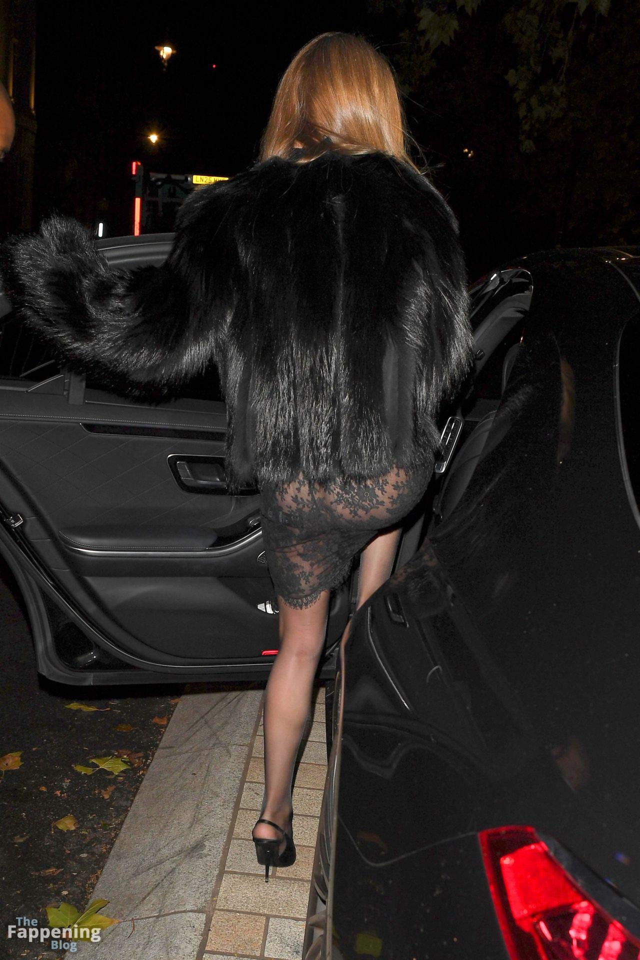 Rosie Huntington-Whiteley fue vista saliendo de Carbone en Londres, luciendo un vestido de encaje transparente que mostraba sus atributos.