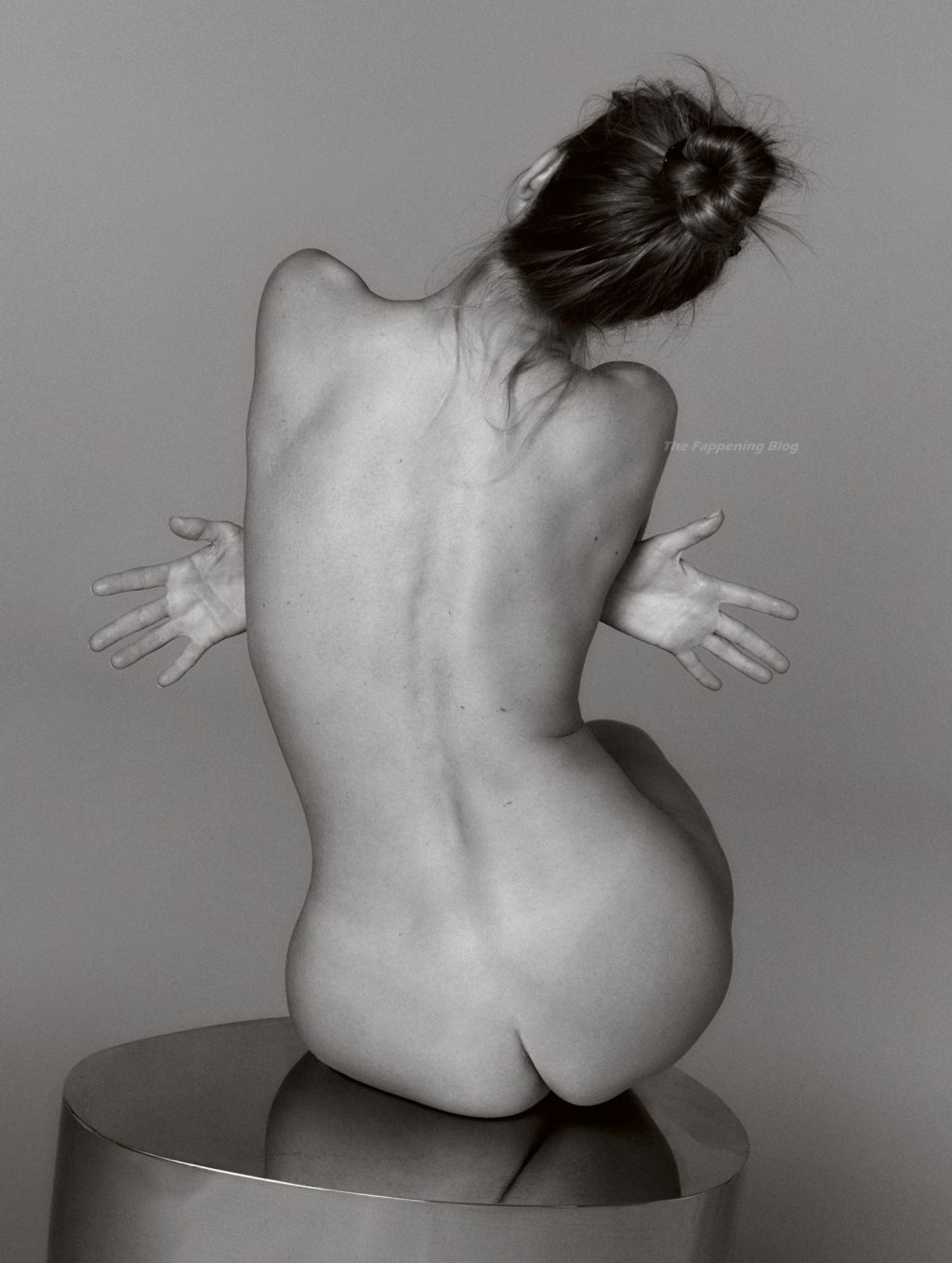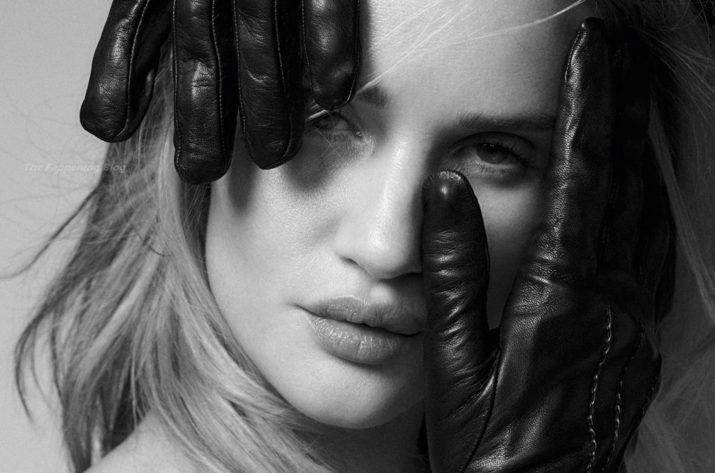 Model Rosie Huntington-Whiteley expone su piel, glúteos firmes y piernas sexys posando desnuda sin ropa interior en una sesión fotográfica de Quentin Jones para la edición de abril de 2021 de Elle UK.