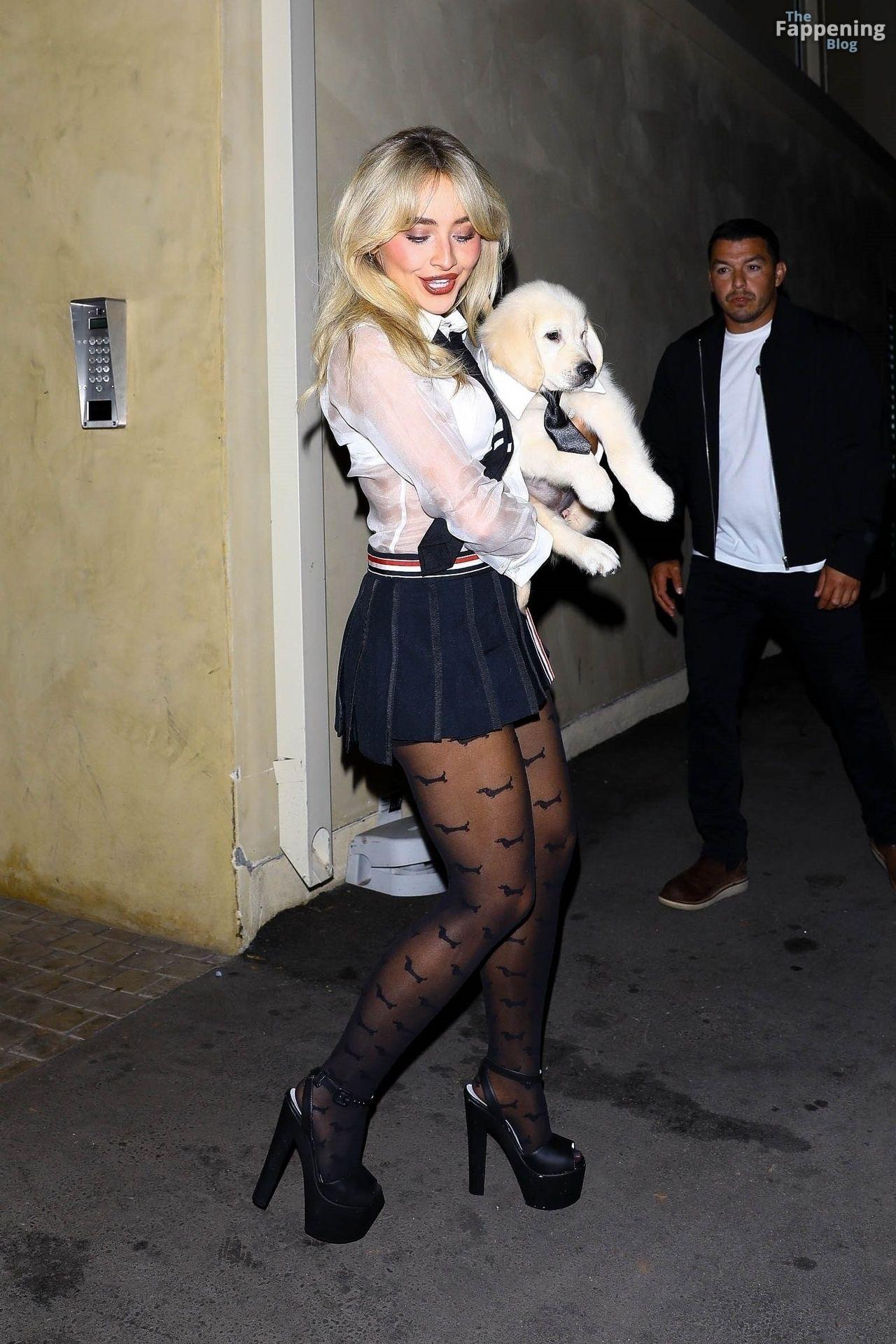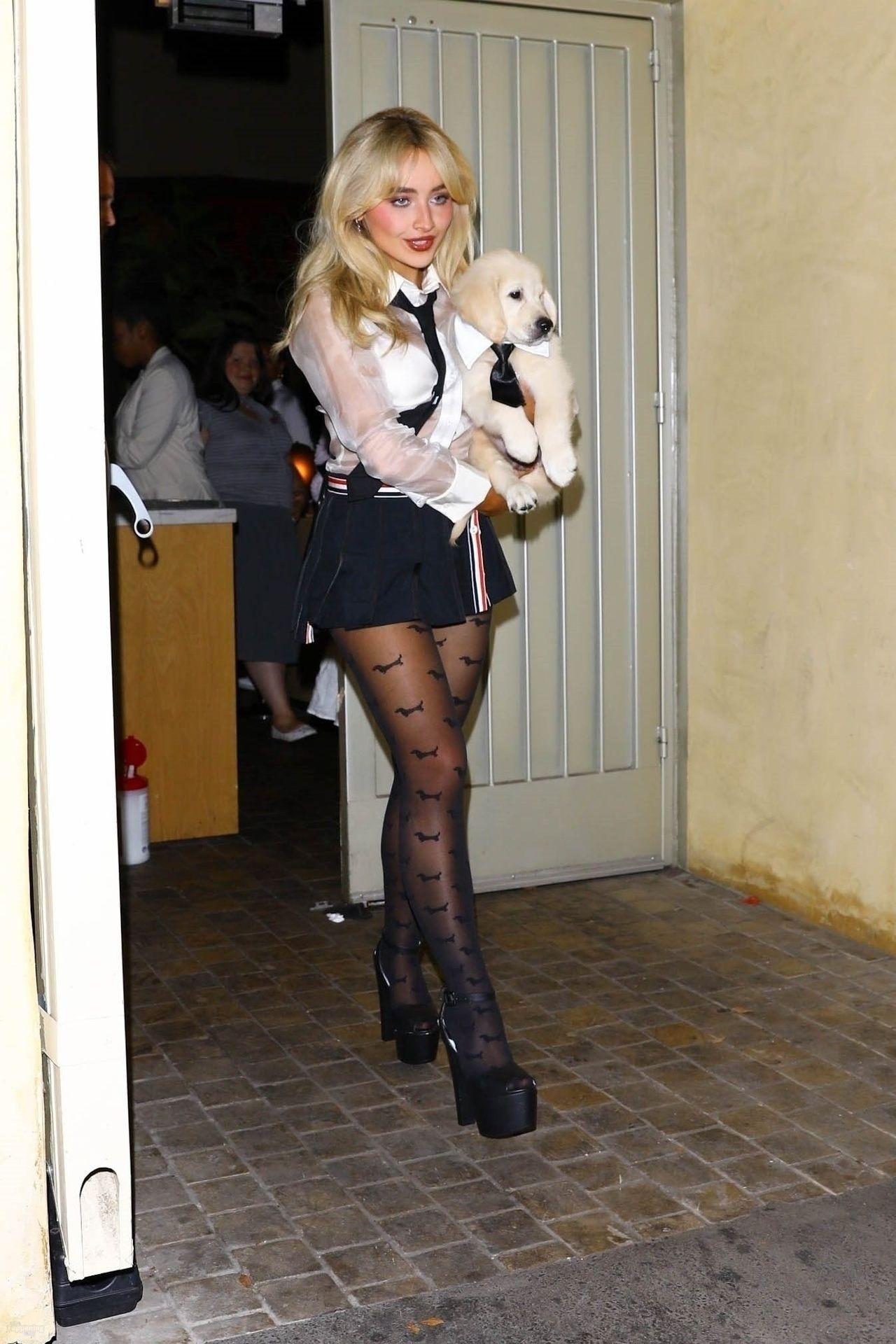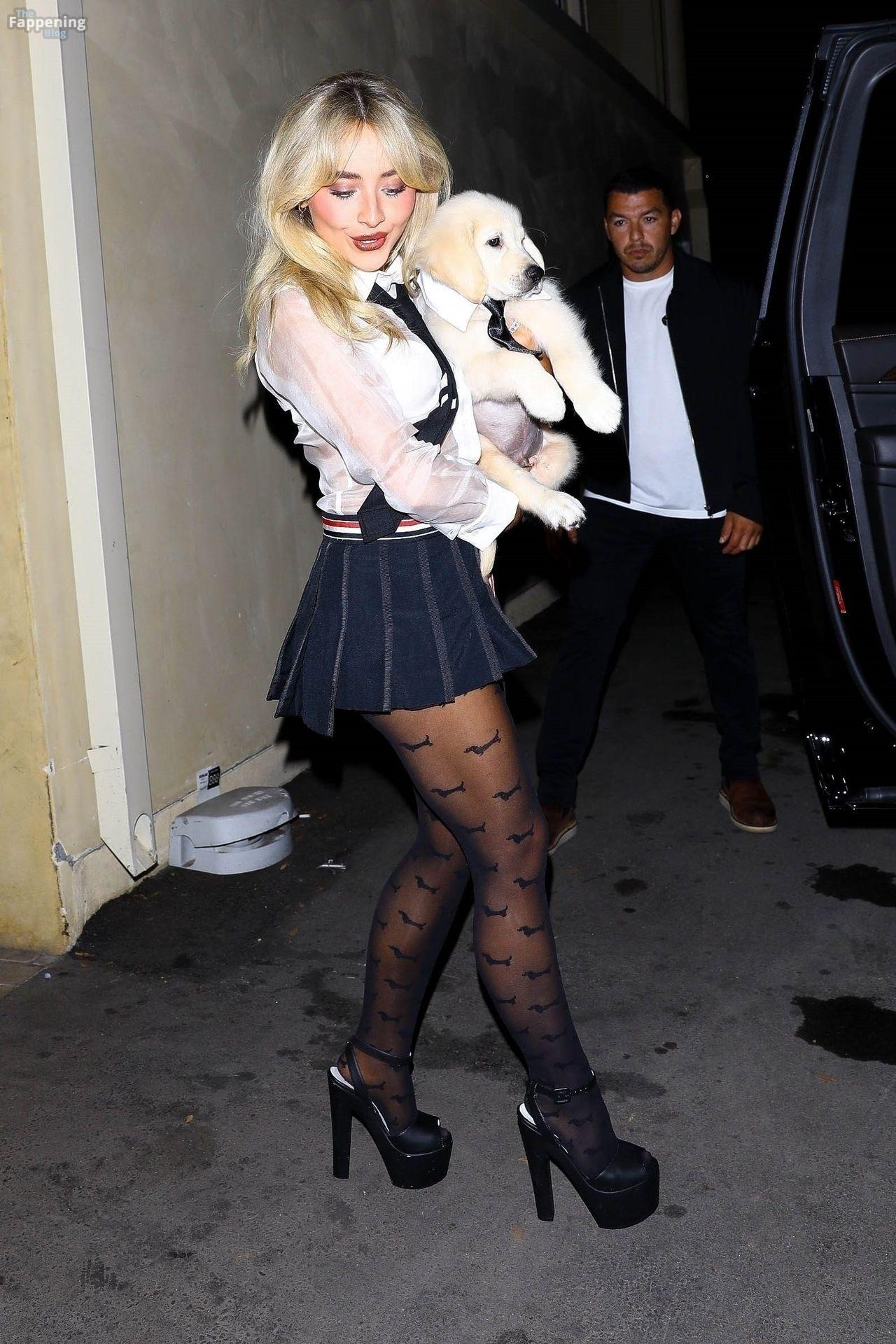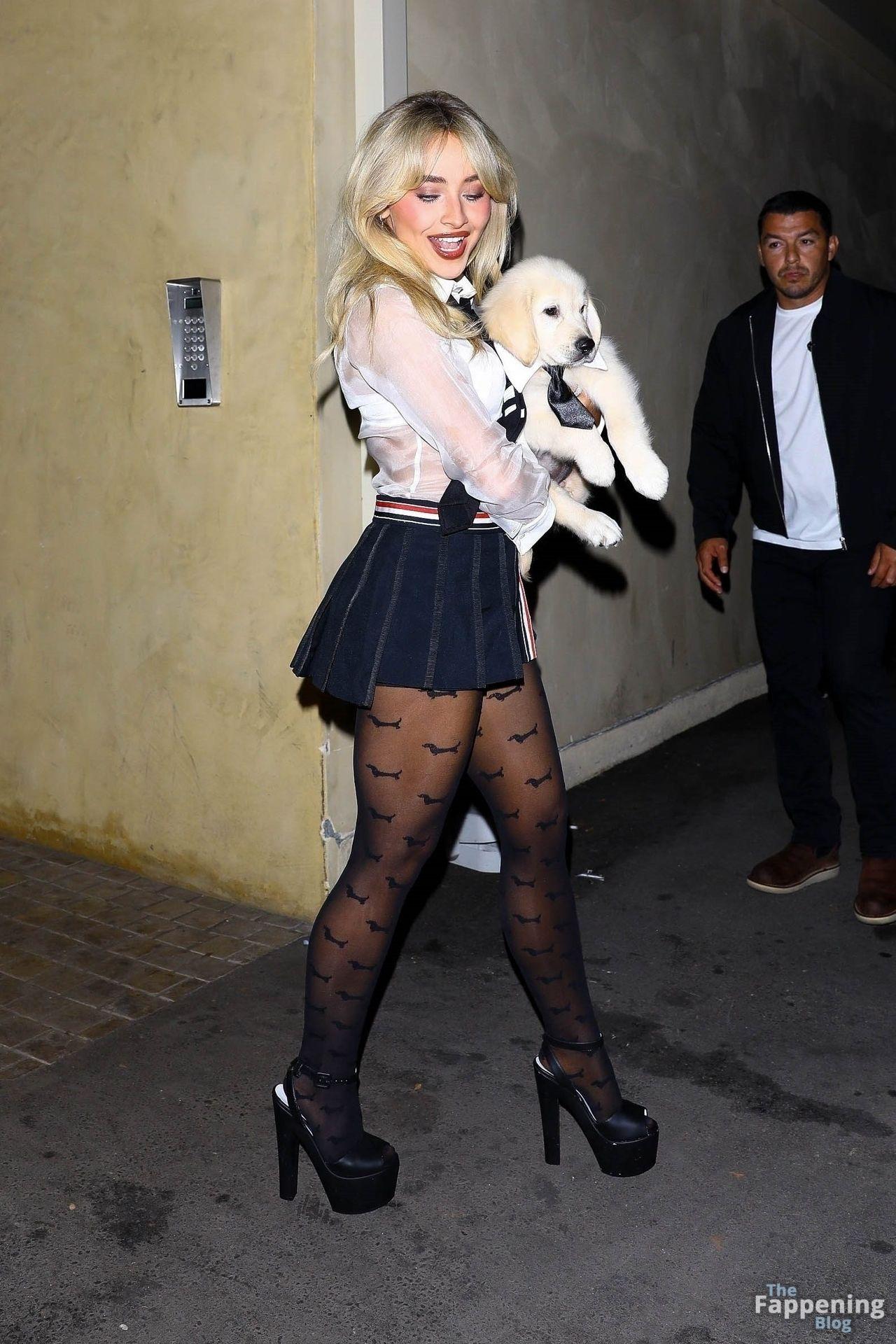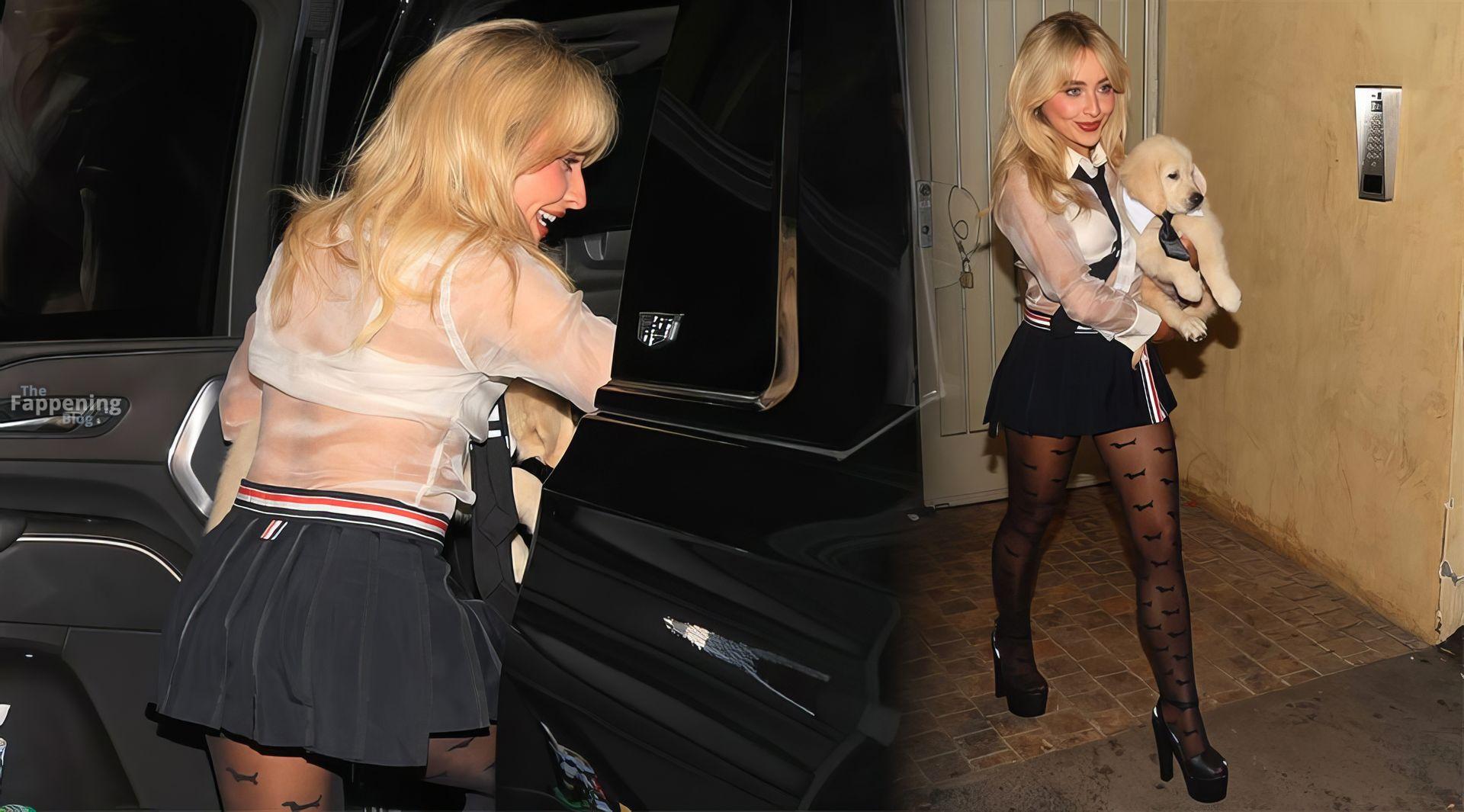 Mira a Sabrina Carpenter en LA con una blusa transparente y minifalda, luciendo sus piernas y glúteos en el lanzamiento del álbum de Alba.