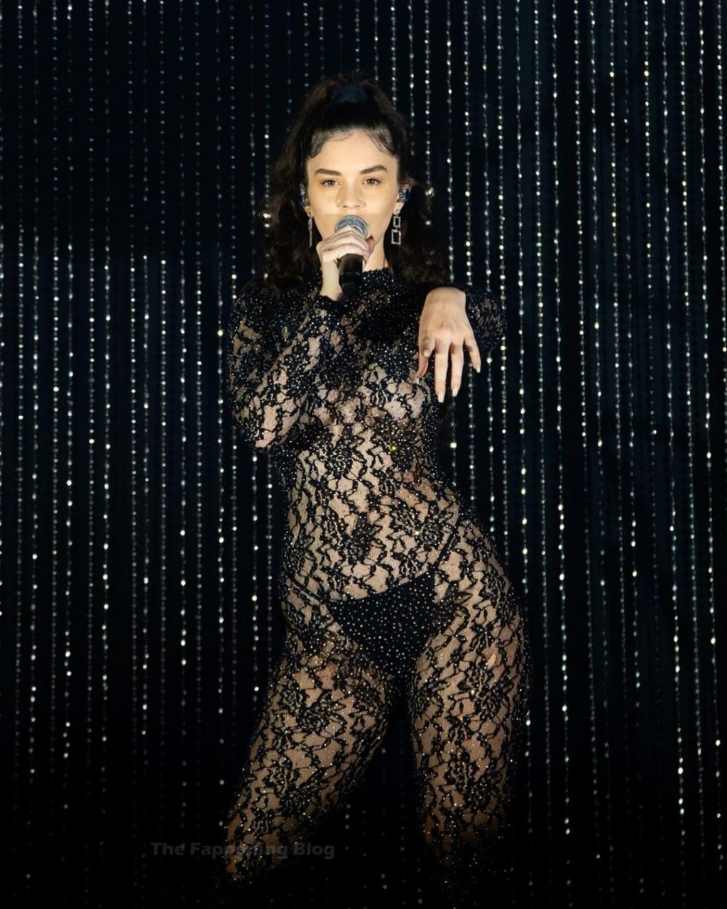 Mira las fotos ligeramente desnudas y sexys de Sabrina Claudio en Instagram (2019-2020). A esta chica le gusta mostrar sus tetas usando atuendos transparentes y lencería. También complace a sus admiradores en el escenario con su apariencia y voz.
