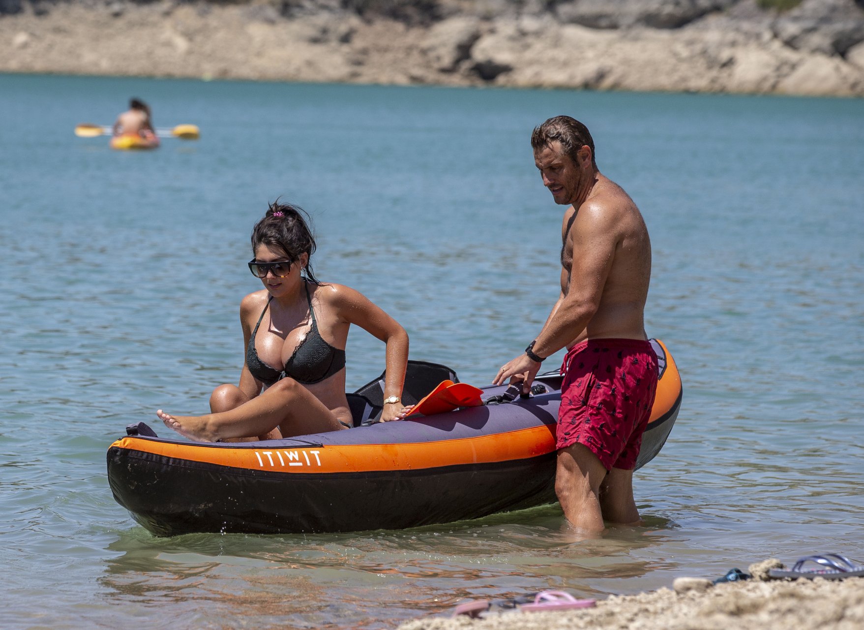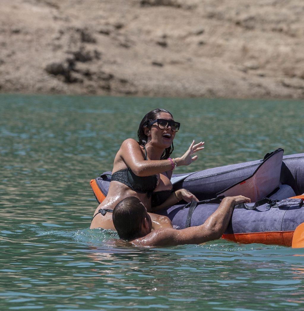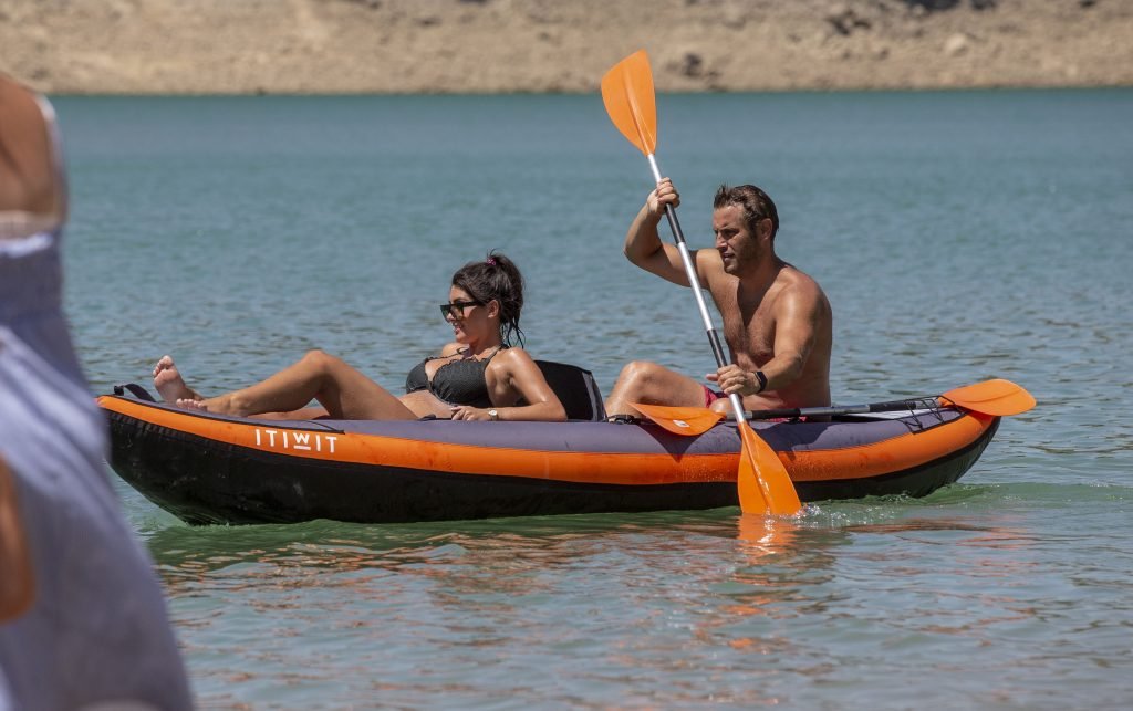 Pregnant Sadie Stuart and husband Elliott Wright were spotted in Marbella, Spain, 08/26/2018. They spent the day in the Mountain Lakes by enjoying their time kayaking and swimming in the Spanish sun. Sadie is now 5 months pregnant as she shows off her glowing baby bump in a bikini. At one point their kayak capsizes, as they laugh Elliott helps Sadie get back on.