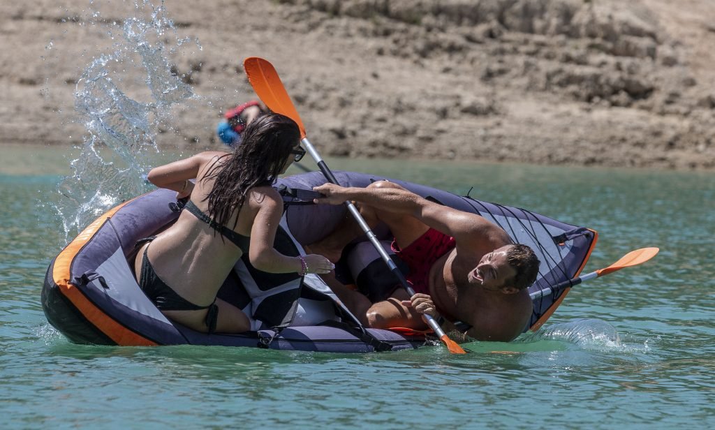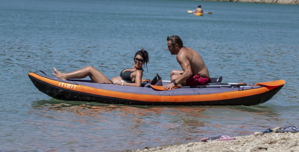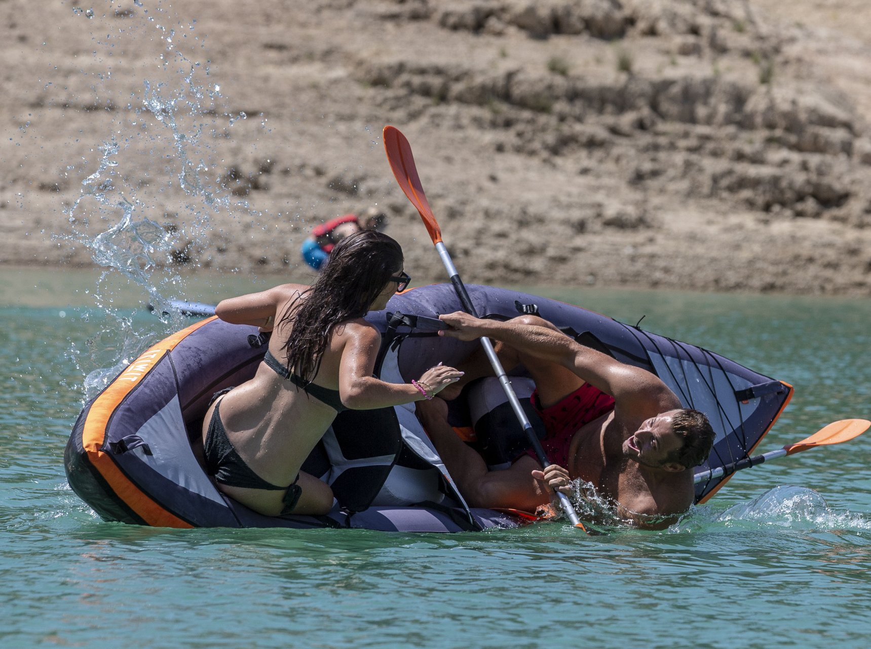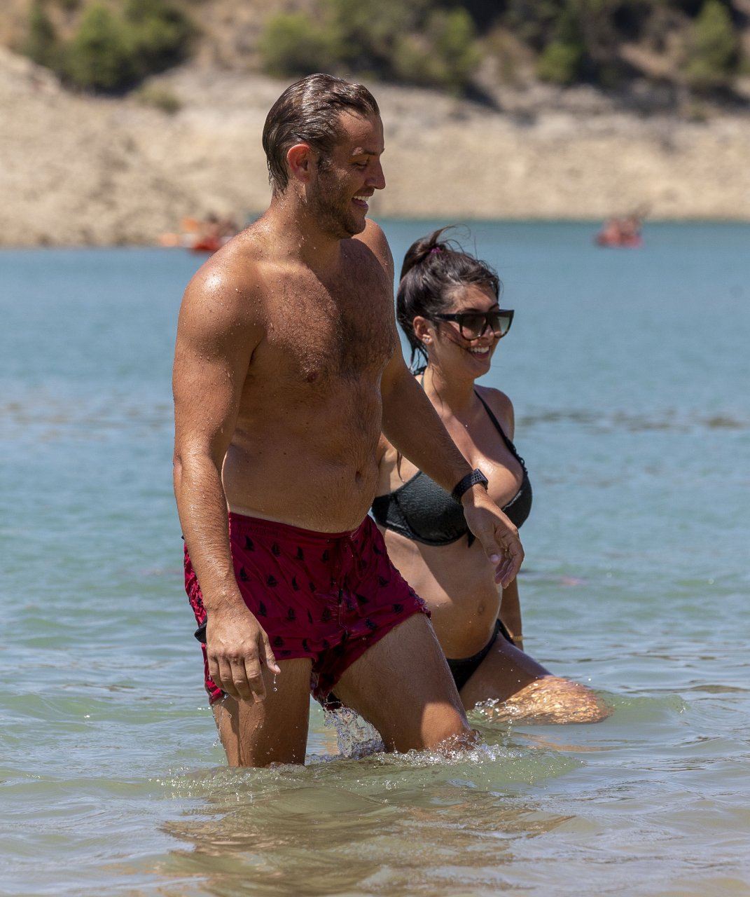 Pregnant Sadie Stuart and husband Elliott Wright were spotted in Marbella, Spain, 08/26/2018. They spent the day in the Mountain Lakes by enjoying their time kayaking and swimming in the Spanish sun. Sadie is now 5 months pregnant as she shows off her glowing baby bump in a bikini. At one point their kayak capsizes, as they laugh Elliott helps Sadie get back on.
