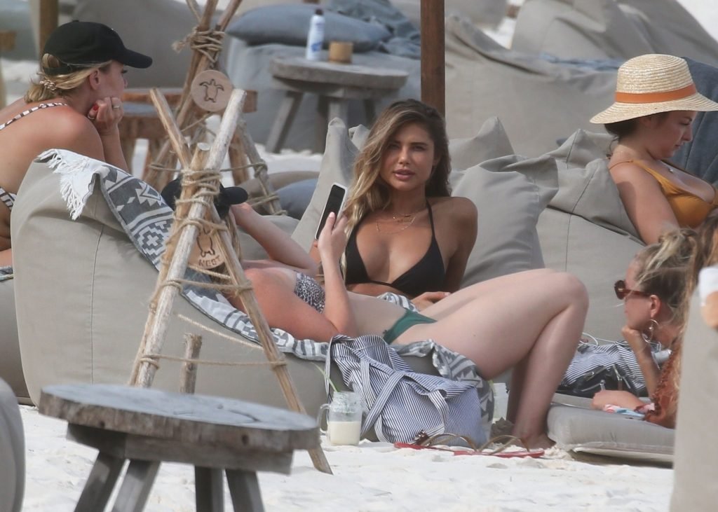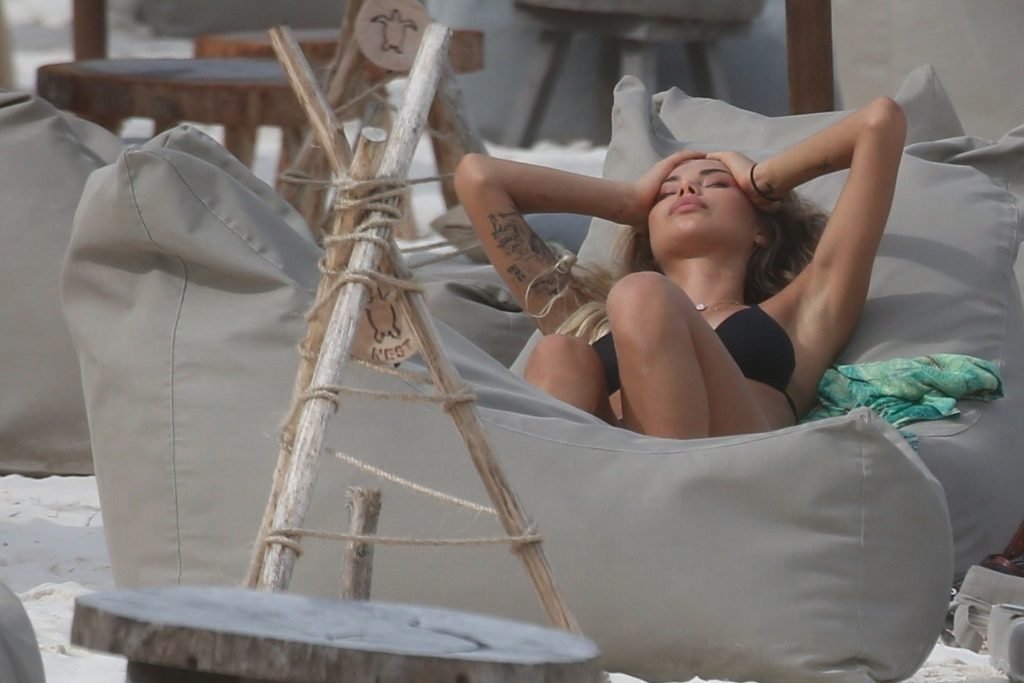Sahara Ray muestra su cuerpo de playa con un pequeño bikini negro mientras pasa el rato en Tulum, México, 05/09/2018.
