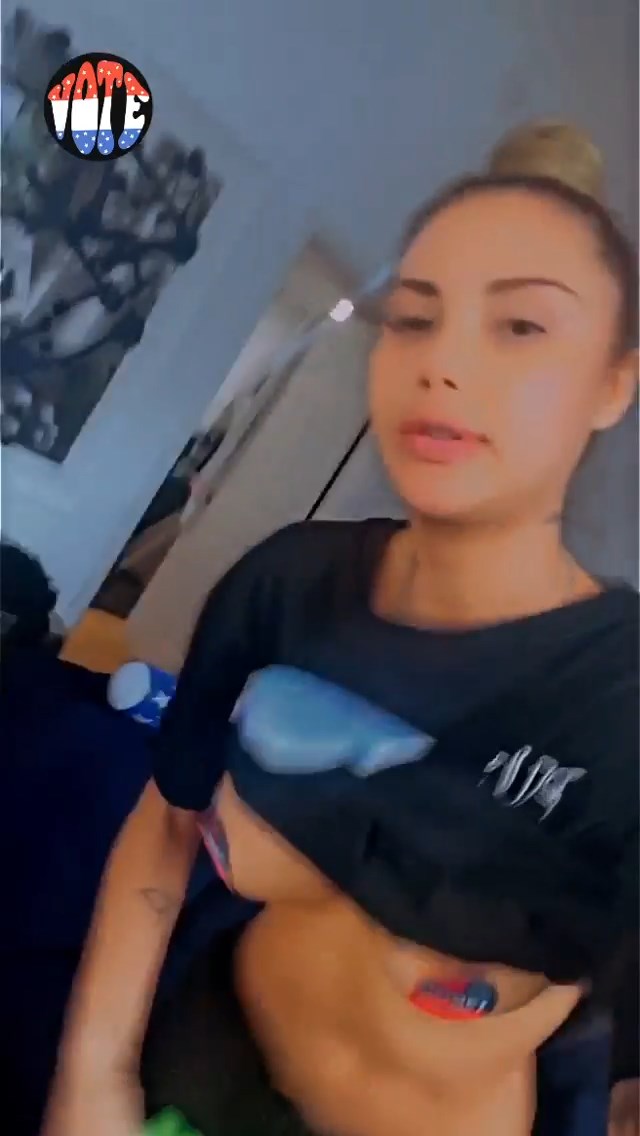 Model Sahara Ray muestra sus pechos ligeramente desnudos mientras posa para una nueva sesión de fotos en redes sociales “I Voted” – Instagram, 11/03/2020.