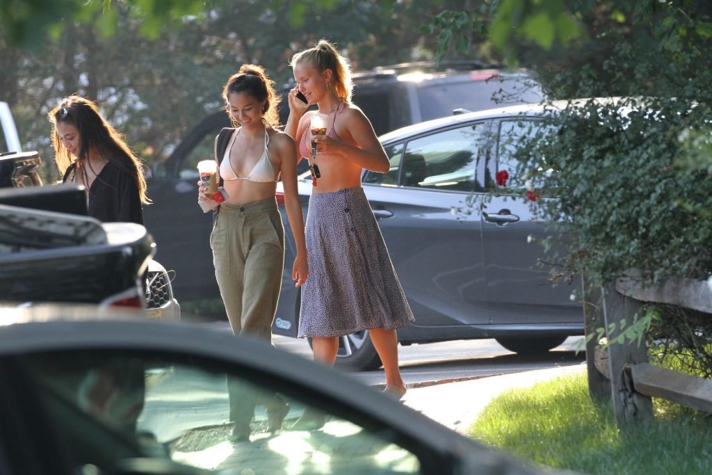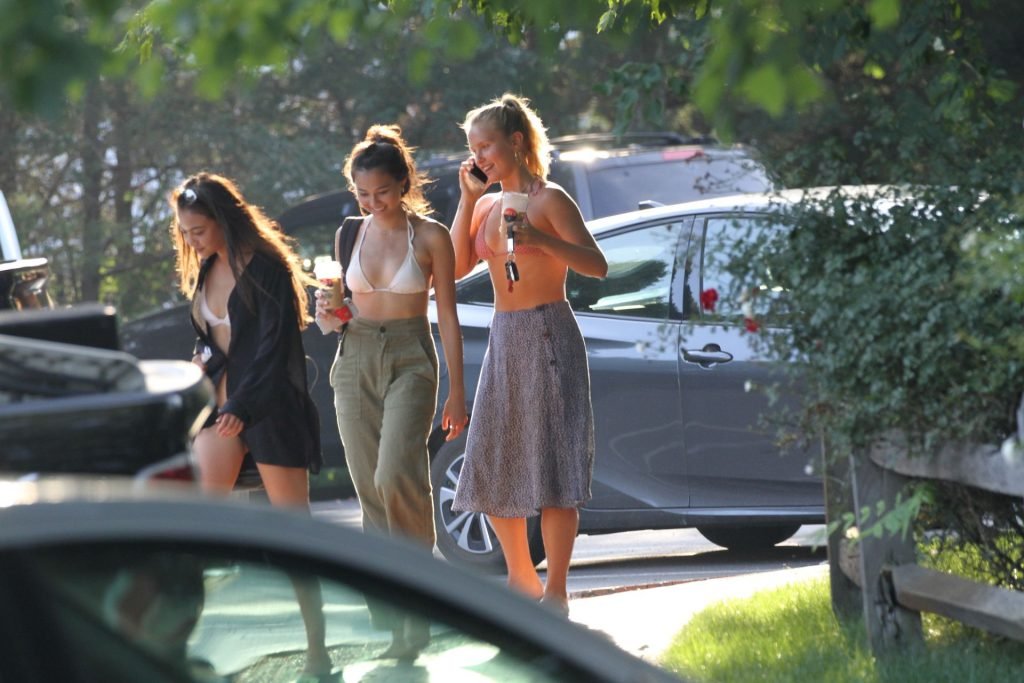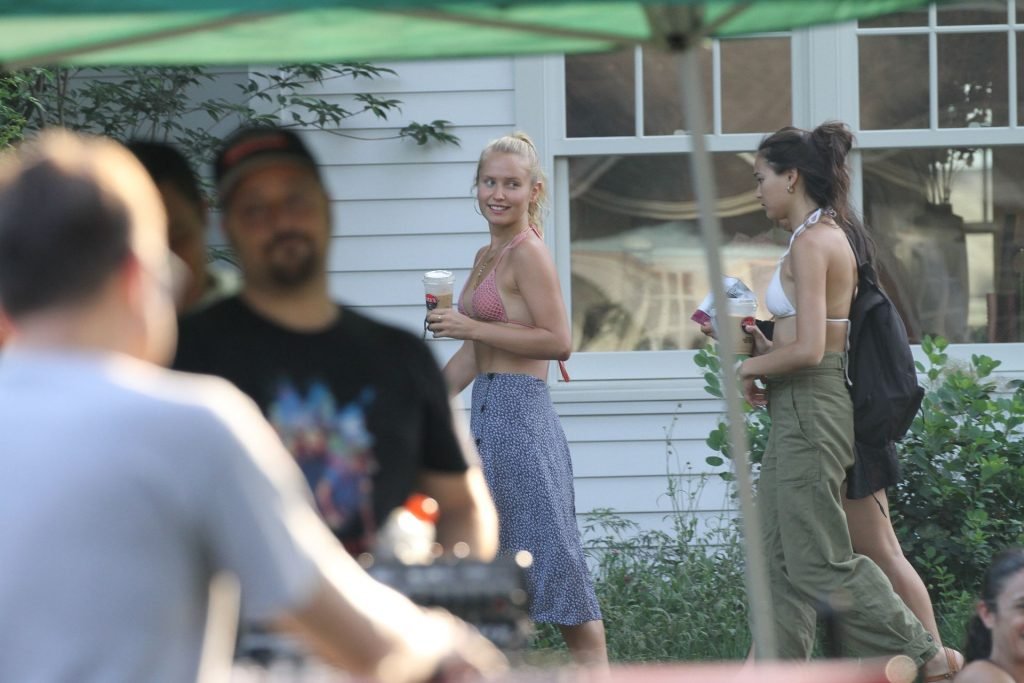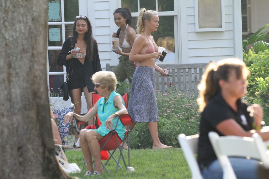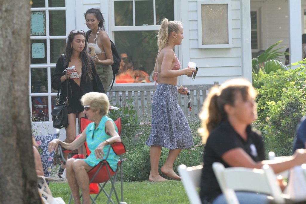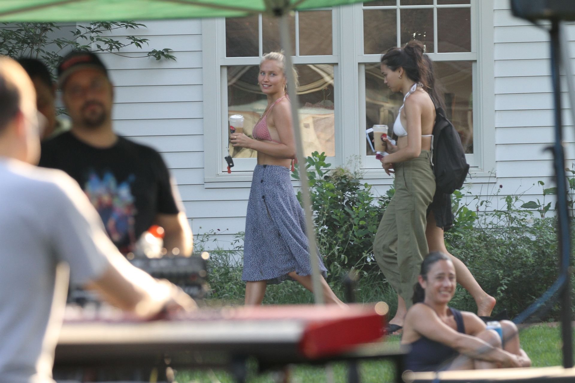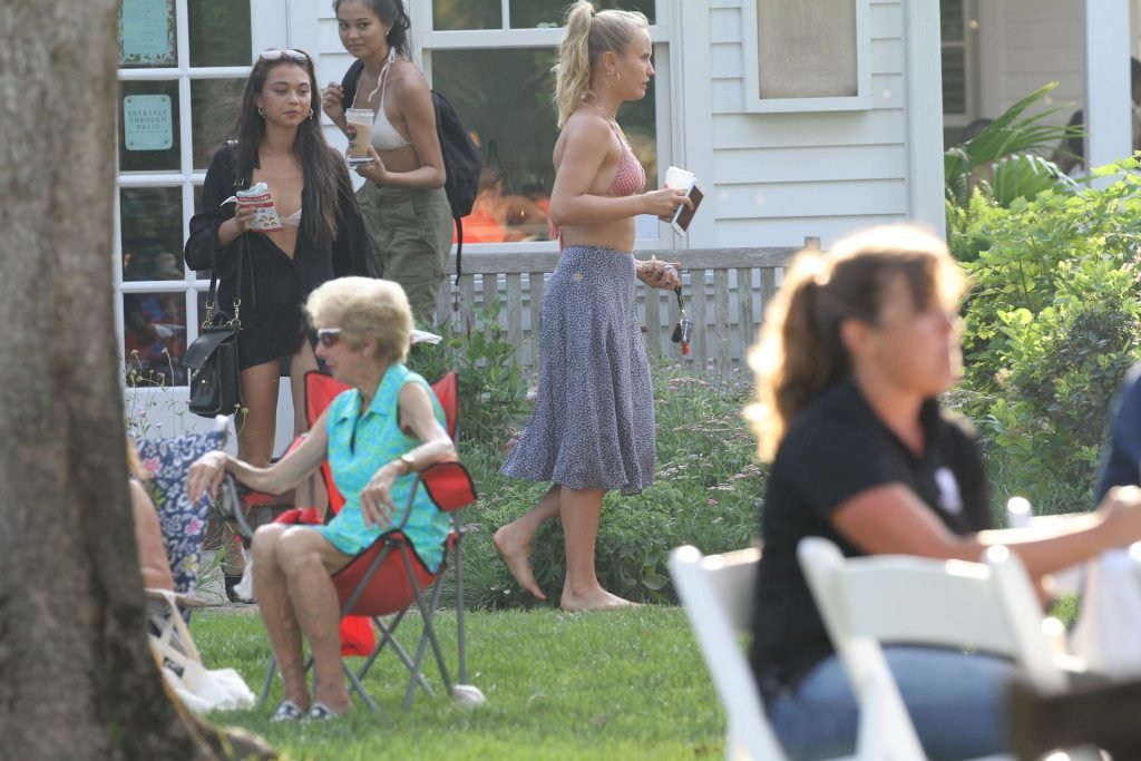 Sailor Brinkley lleva un top de bikini y un vestido azul mientras está en los Hamptons durante el fin de semana con amigos, 22/07/2019.