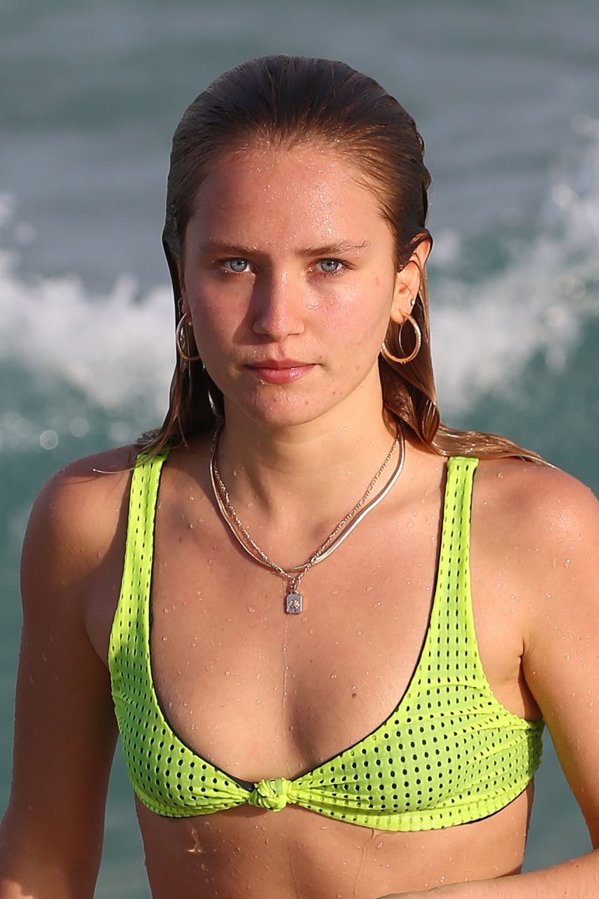 Modelo Sailor Lee Brinkley-Cook (20) luce genial con un bikini amarillo neón en la playa de Miami, 12/08/2018.