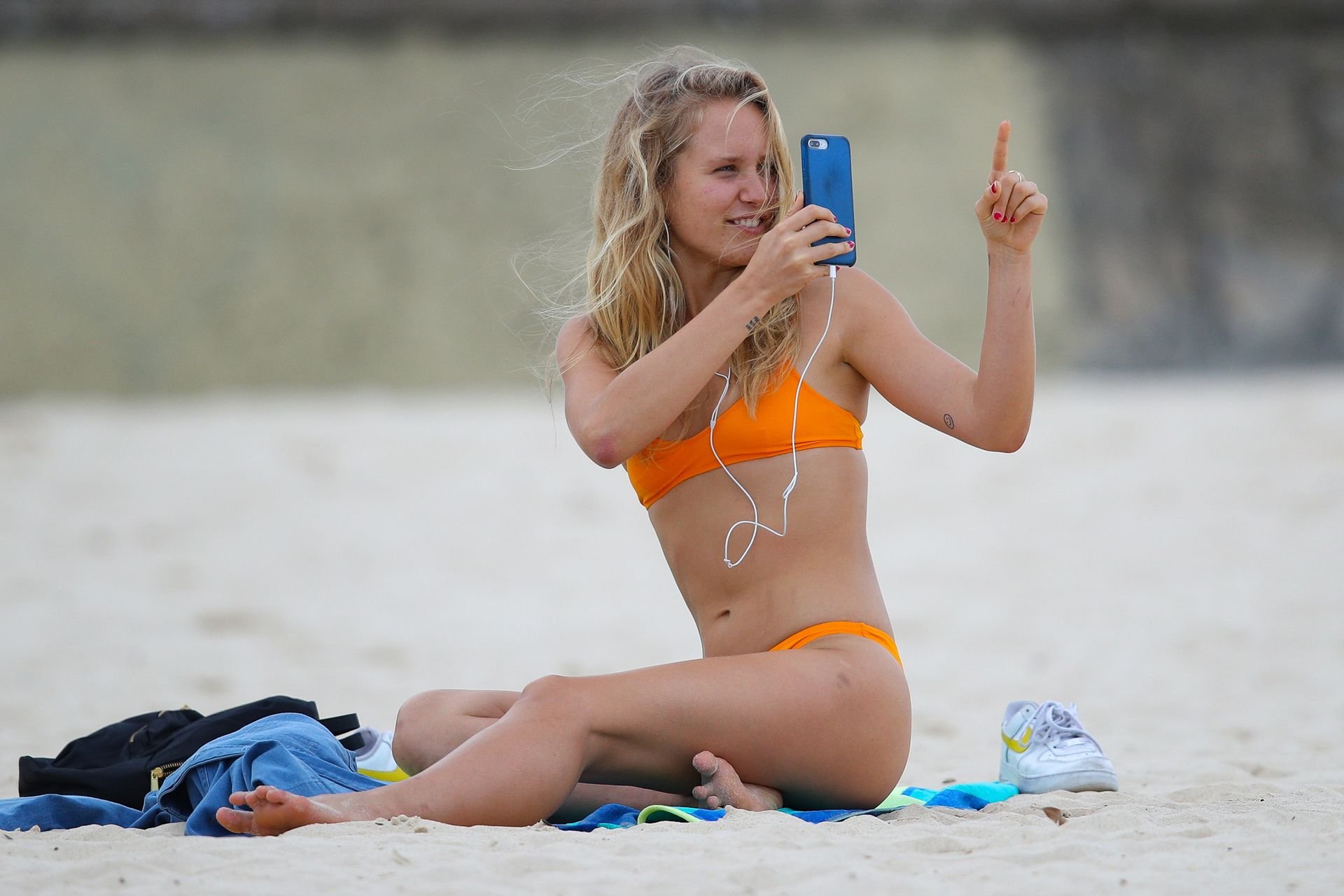 Sailor Brinkley fue fotografiada tomando el sol con su bikini naranja brillante en Bondi Beach en Sídney, 01/08/2019. La hija de la famosa modelo Christie Brinkley está en la ciudad para discutir contratos de modelaje. Sailor Brinkley Cook es una modelo estadounidense de 20 años de IMG Models.