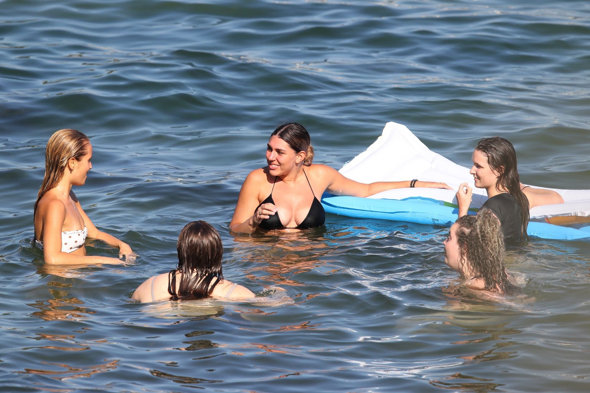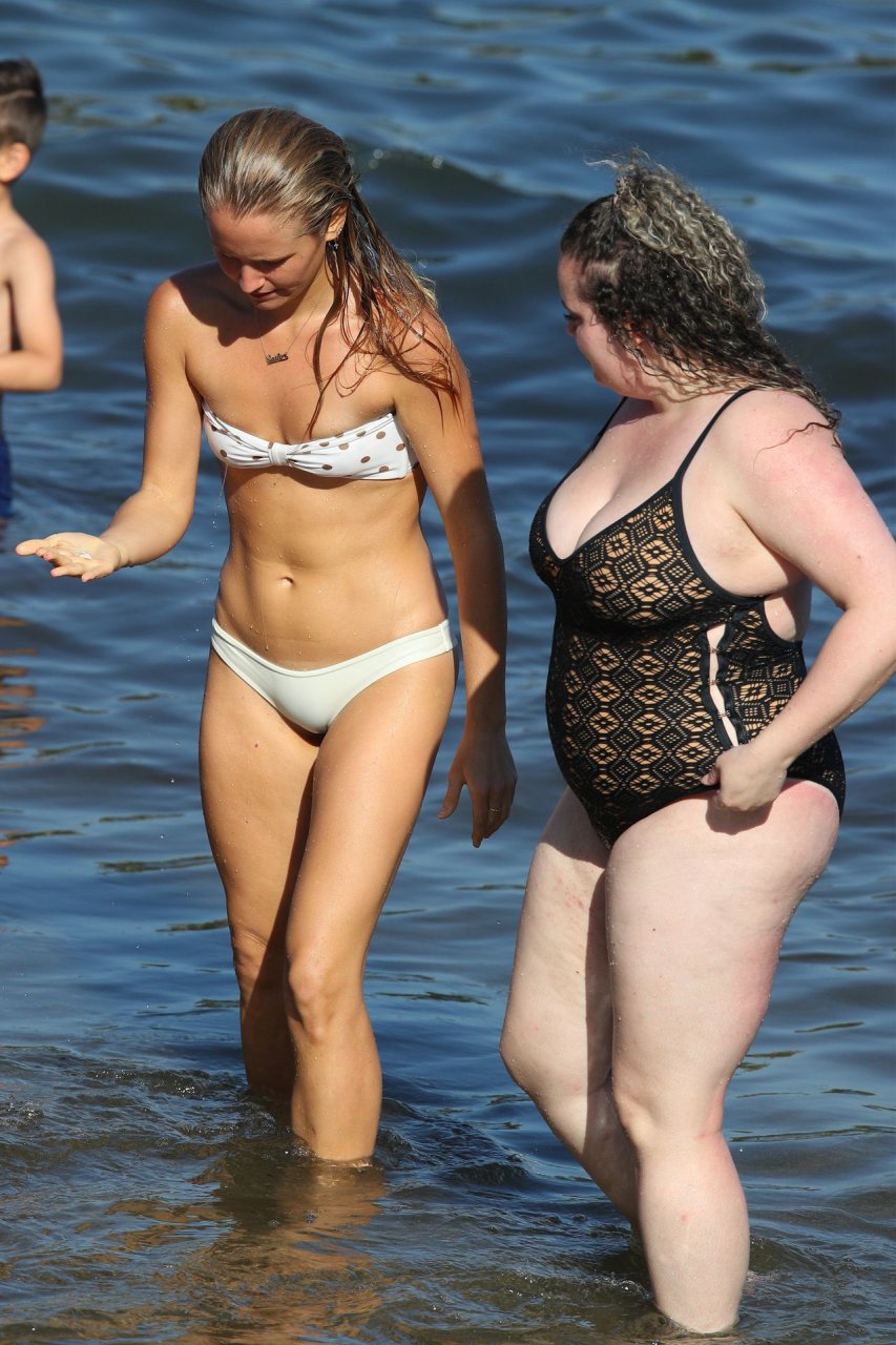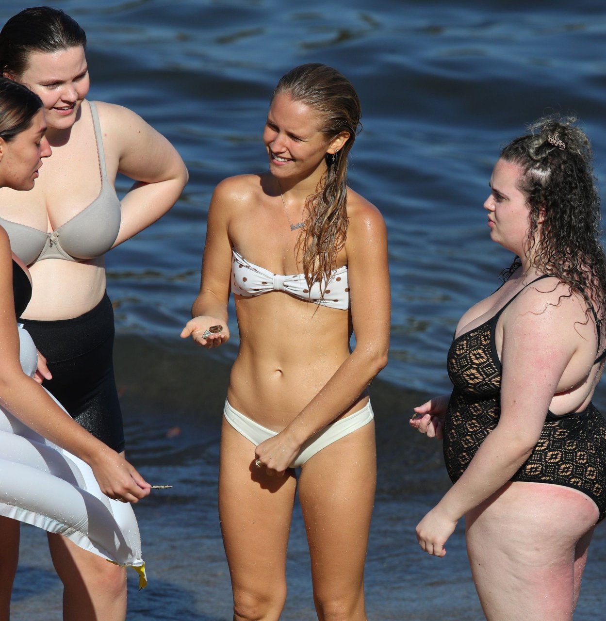 La modelo Titless Sailor Brinkley Cook fue fotografiada con un bikini blanco en Sídney mientras buscaba conchas marinas, 17/01/2019.