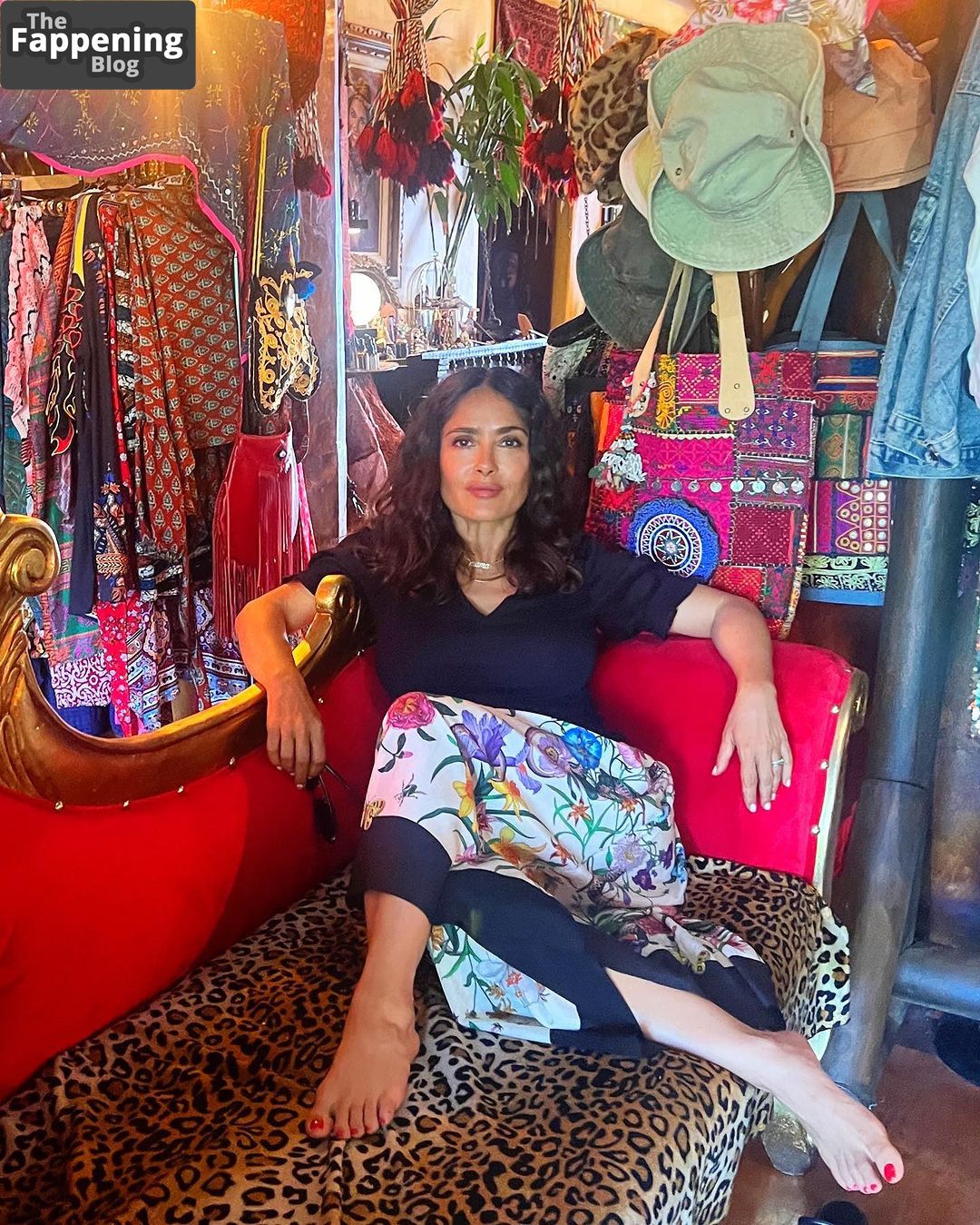 Salma Hayek luce sus curvas y sus famosos pechos grandes en las fotos de paparazzi y redes sociales a continuación.