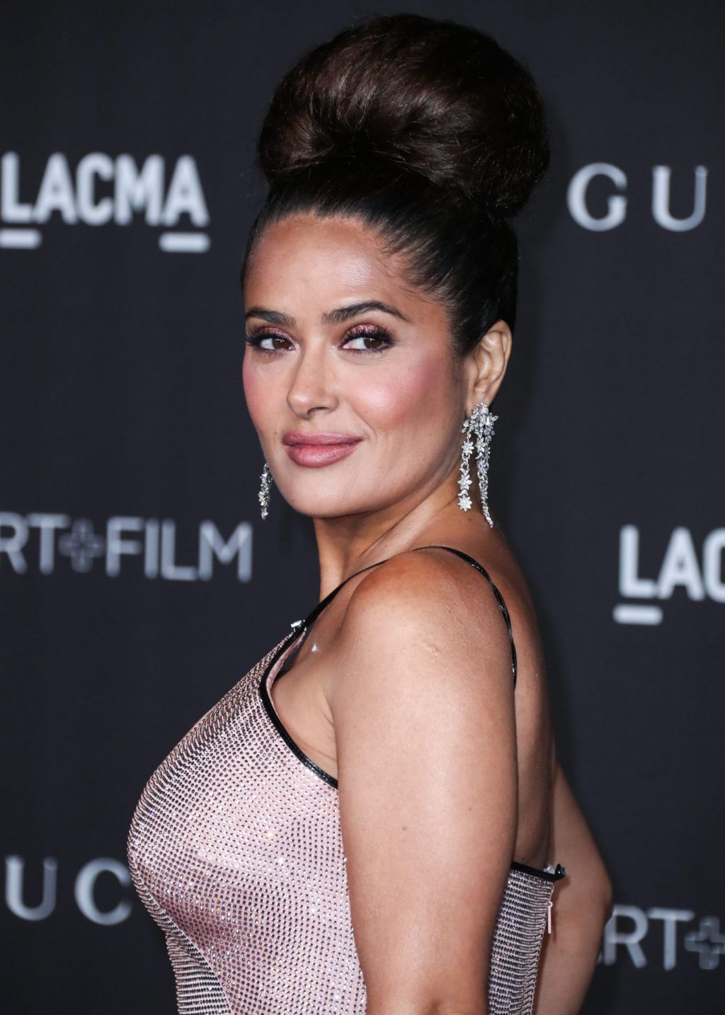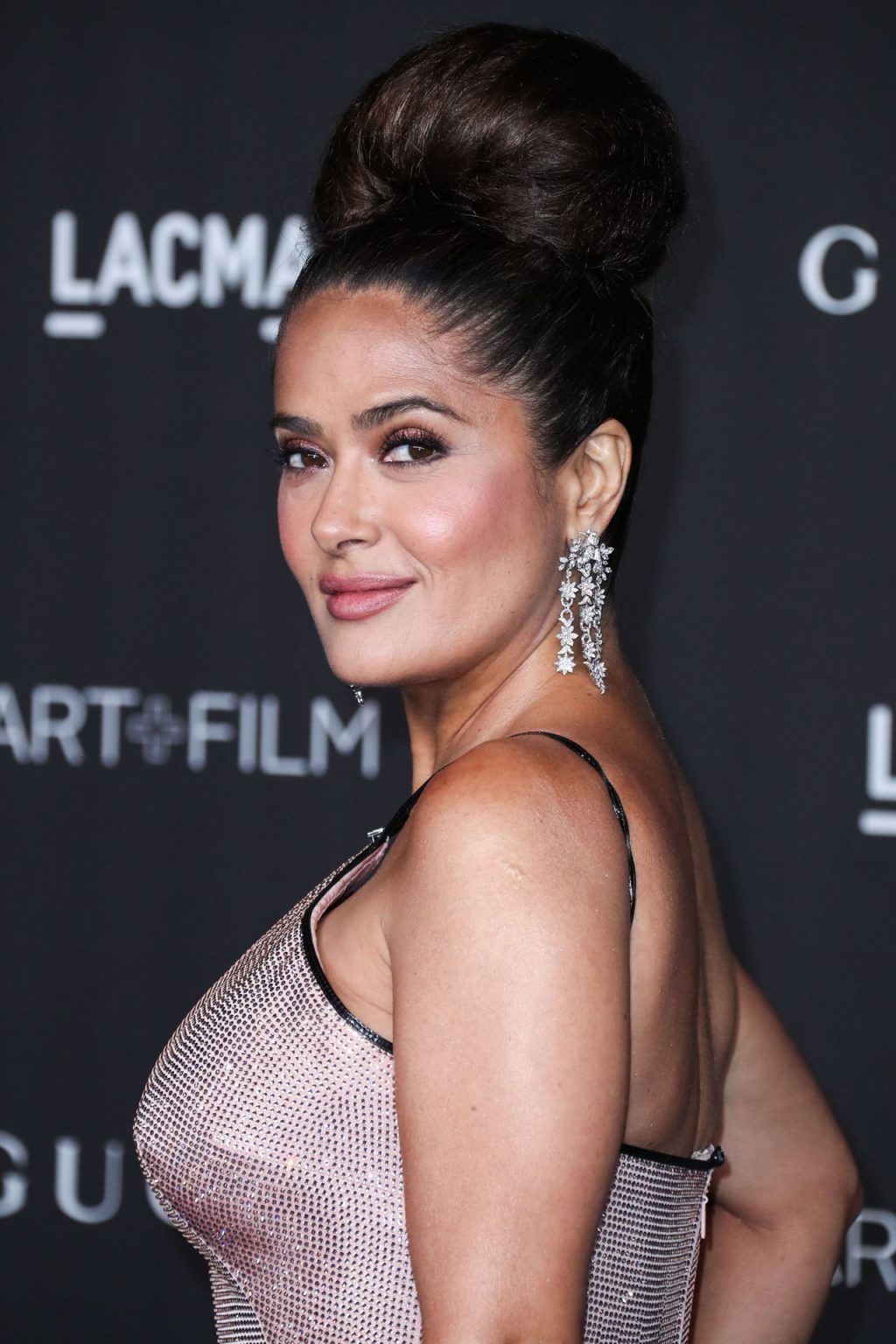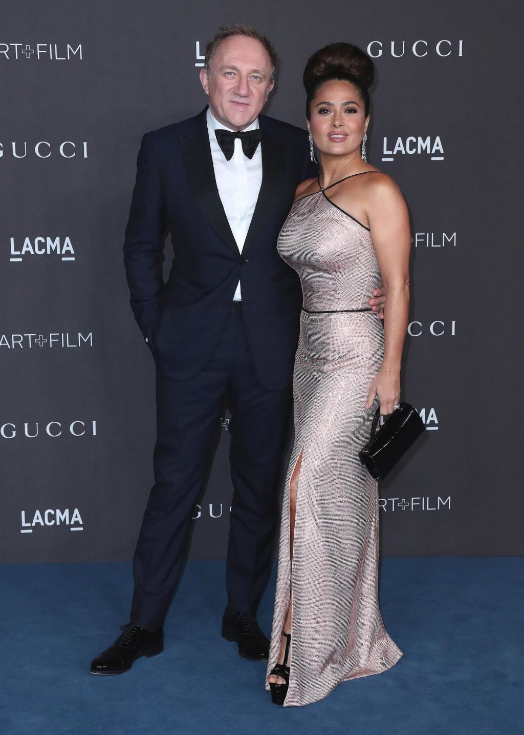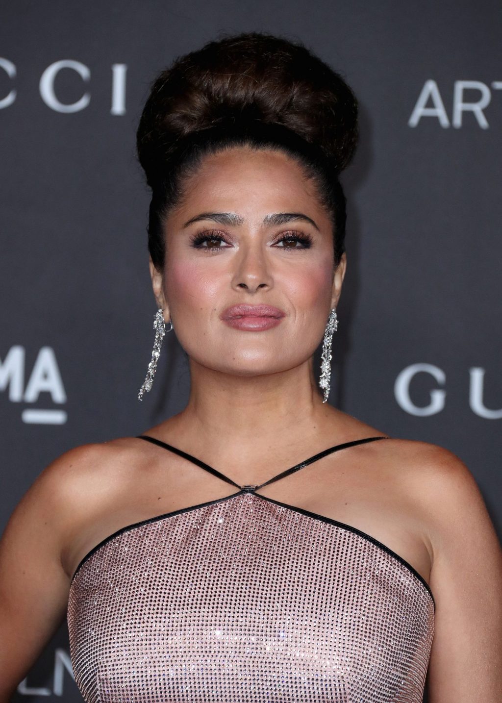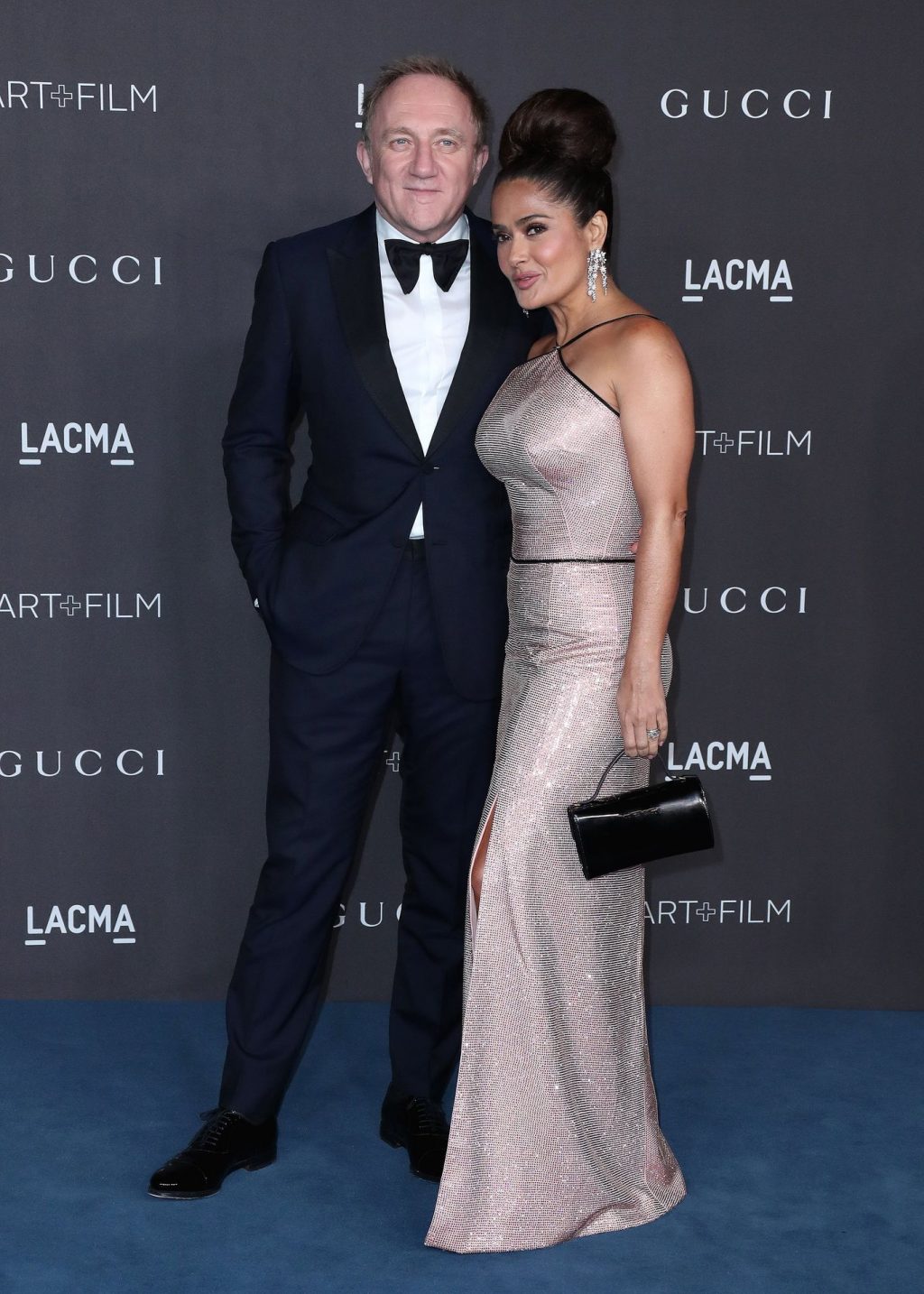 La actriz voluptuosa Salma Hayek Pinault, vestida con Gucci, llega a la Gala de Arte + Cine LACMA 2019 celebrada en el Museo de Arte del Condado de Los Ángeles el 2 de noviembre de 2019 en Los Ángeles.