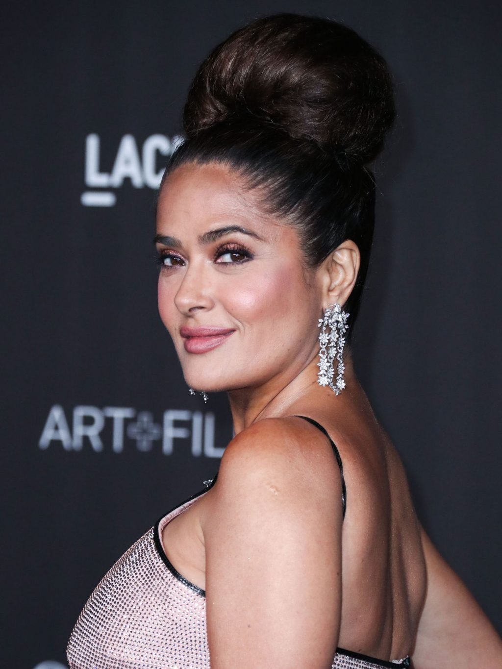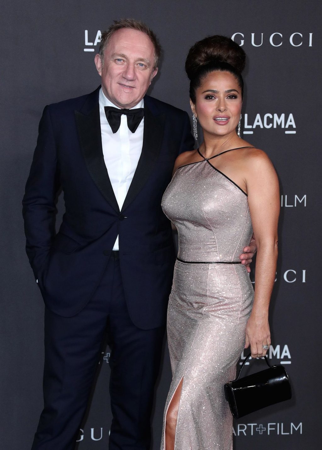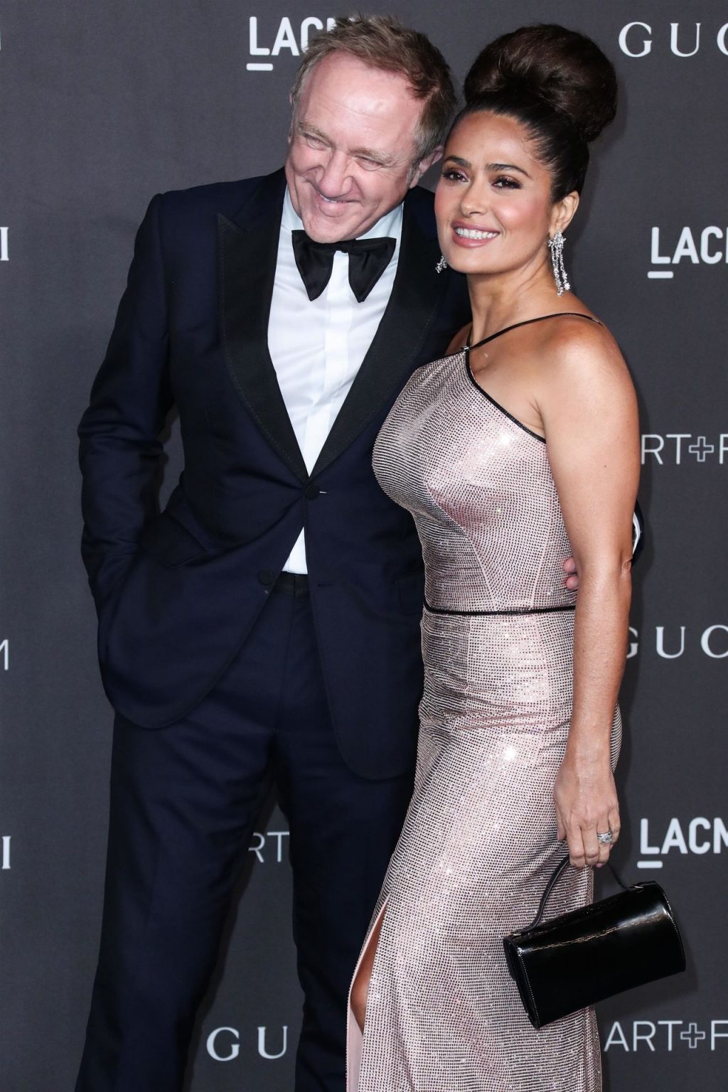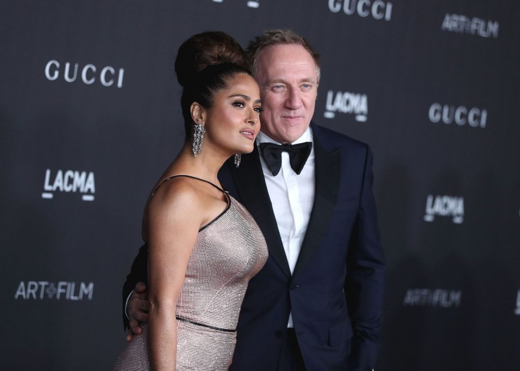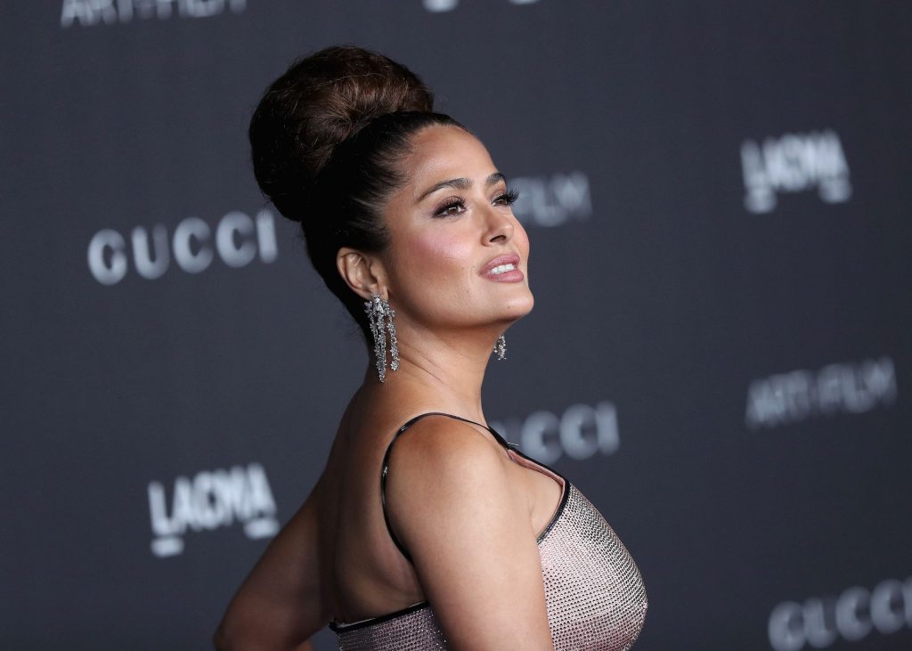 La actriz voluptuosa Salma Hayek Pinault, vestida con Gucci, llega a la Gala de Arte + Cine LACMA 2019 celebrada en el Museo de Arte del Condado de Los Ángeles el 2 de noviembre de 2019 en Los Ángeles.