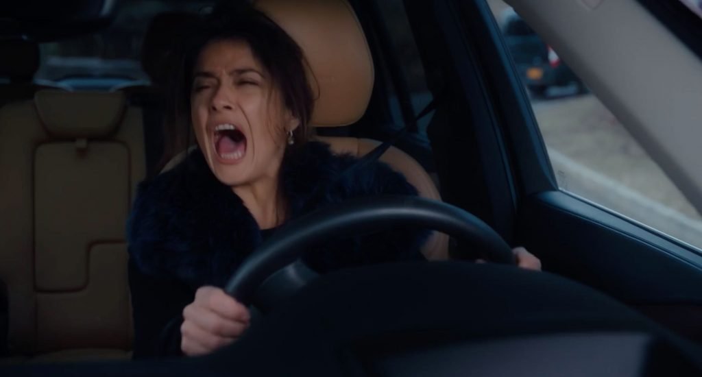 Hayek, de 52 años, salta cuando él la descubre con el atractivo atuendo. La pareja interpreta a los esposos Frank y Nancy Teagarten, quienes enfrentan problemas financieros secretos en la película, que se estrenará en EE.UU. en abril de 2019.