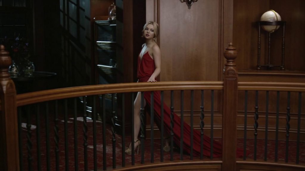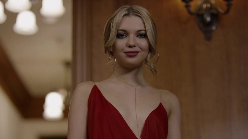 Based on the novel of the same name from Flowers in the Attic author Virginia C. Andrews comes Lifetime’s Seeds of Yesterday (2015). The rebuilt Foxworth Mansion is inherited by 25 year-old, middle son Bart Sheffield (James Maslow) of the long-suffering and cursed Dollanganger clan. Similar to the torment inflicted on their mom/aunt Cathy and dad/uncle Chris, the film focuses on recovered psych patient Bart and his incompatible half-brother Jory (Anthony Konechny) and the troubled relationships, secrets and bad luck that seems to follow this family around like a lost puppy. Sammi Hanratty co-stars as Cindy Sheffield, Bart’s adopted teenage sister. She looks hot going for a swim in a cleavage-baring bikini and really scrumptious in a boob-hugging bra and butt-swallowing panties in another scene.