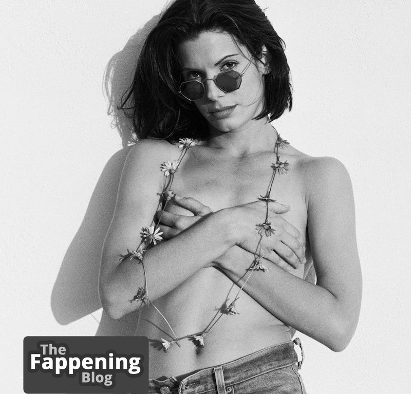 La colección de fotos de Sandra Bullock presenta contenido explícito que destaca su desnudez, poses provocativas y actividades sexuales. Muestra sus grandes pechos sin sostén y sin sujetador, escote revelador, glúteos expuestos, poses con referencias genitales explícitas y momentos íntimos participando en actos sexuales.