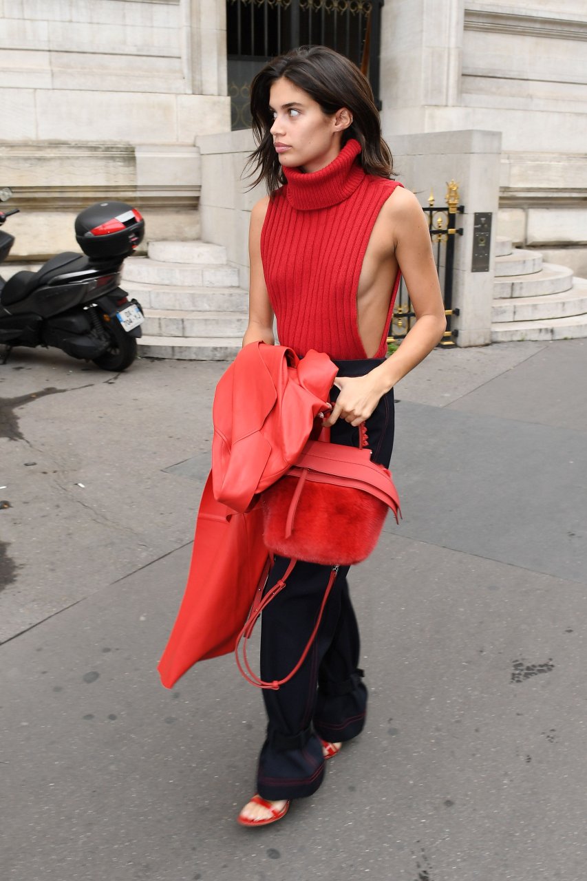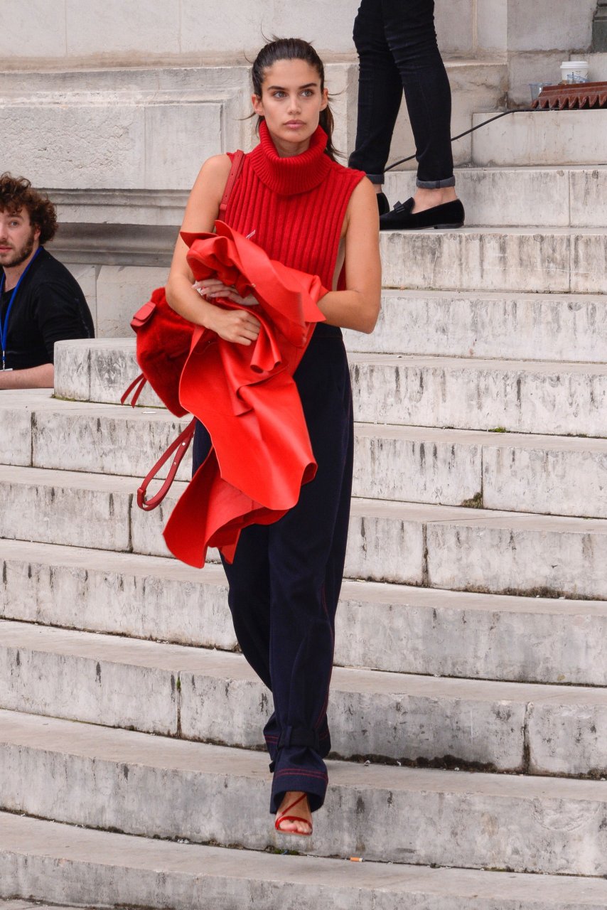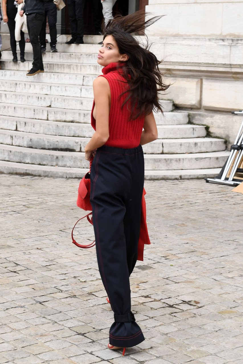 La modelo Sara Sampaio llega al desfile de Balmain Primavera/Verano 2018 durante la Semana de la Moda de París en París, Francia, 28/09/2017.