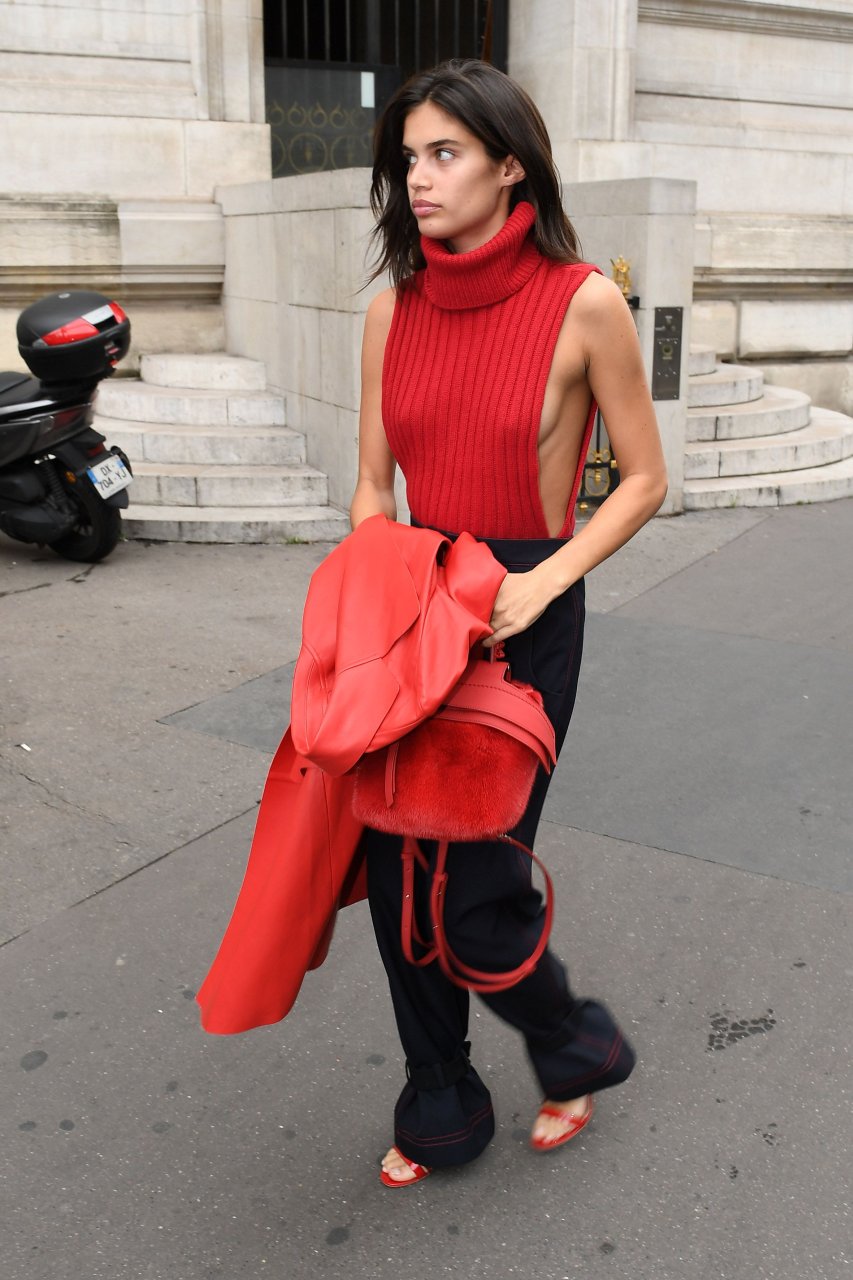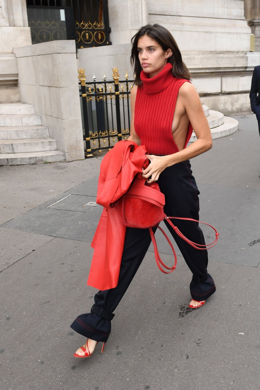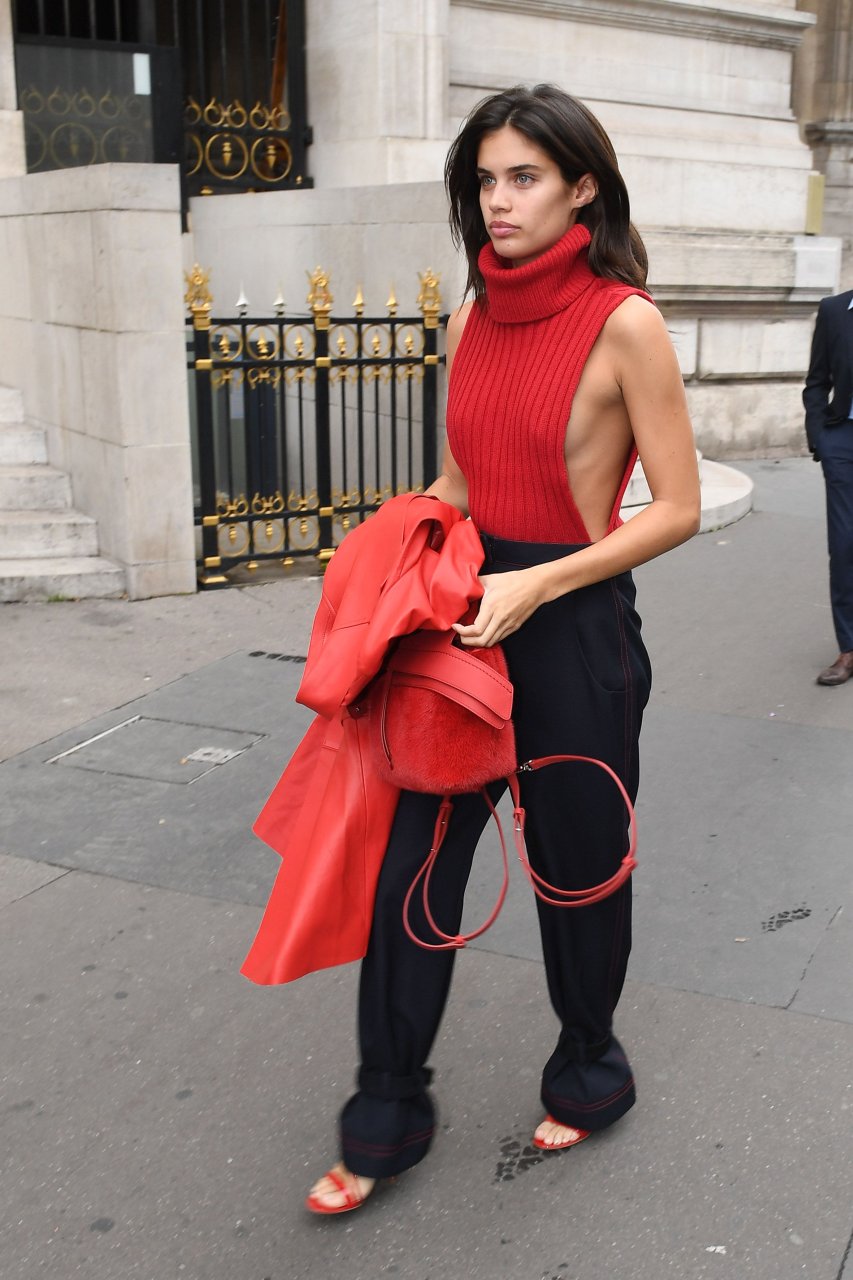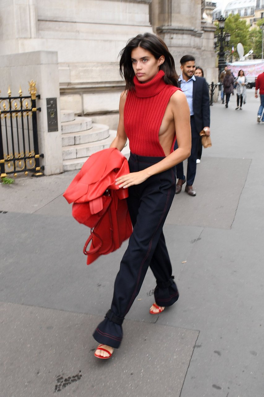 La modelo Sara Sampaio llega al desfile de Balmain Primavera/Verano 2018 durante la Semana de la Moda de París en París, Francia, 28/09/2017.