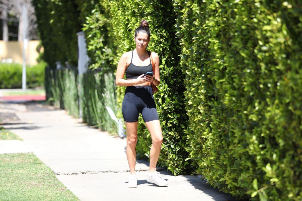 Model Sara Sampaio lleva su conjunto habitual de entrenamiento mientras sale de una sesión de Pilates esta tarde.