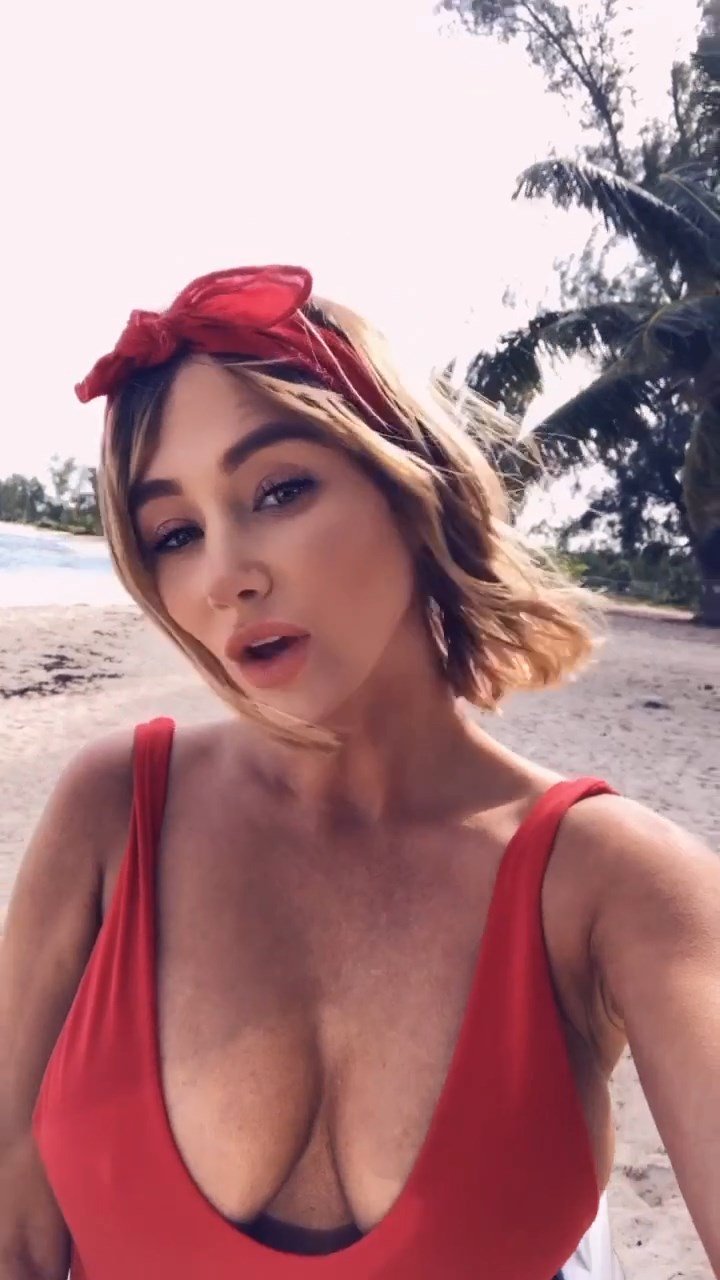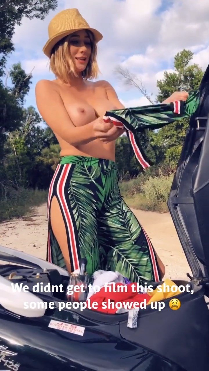 ¡Adivina qué! Sara Underwood no se quedó atrapada en un ascensor, así que ella y el fotógrafo finalmente pudieron salir del hotel y pasear por la isla. La aventura de hoy está subida al archivo de Nudogram.
