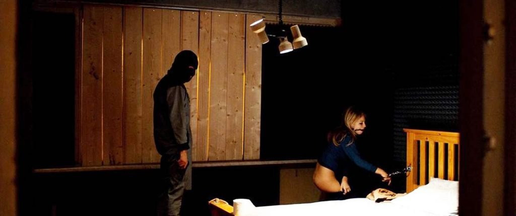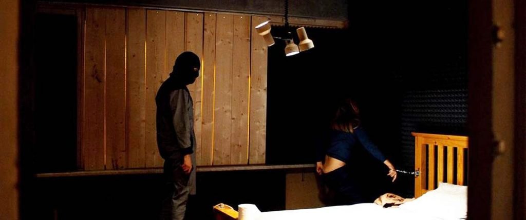 Mira la escena desnuda de Sarah Chronis en “Bloedlink” (también conocido como Reckless, 2014), donde puedes ver a Sarah atada a la cama, con los pantalones bajados hasta las rodillas. Puedes ver su trasero desnudo, y un hombre que la capturó está observando y esperando.