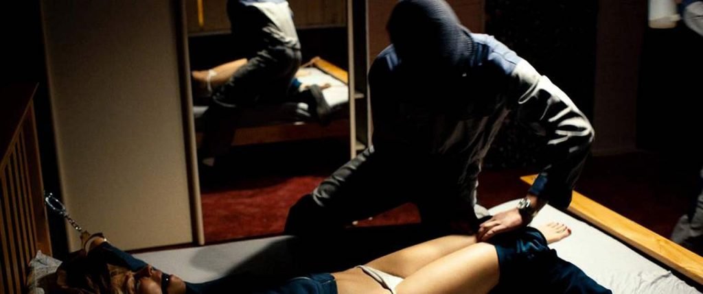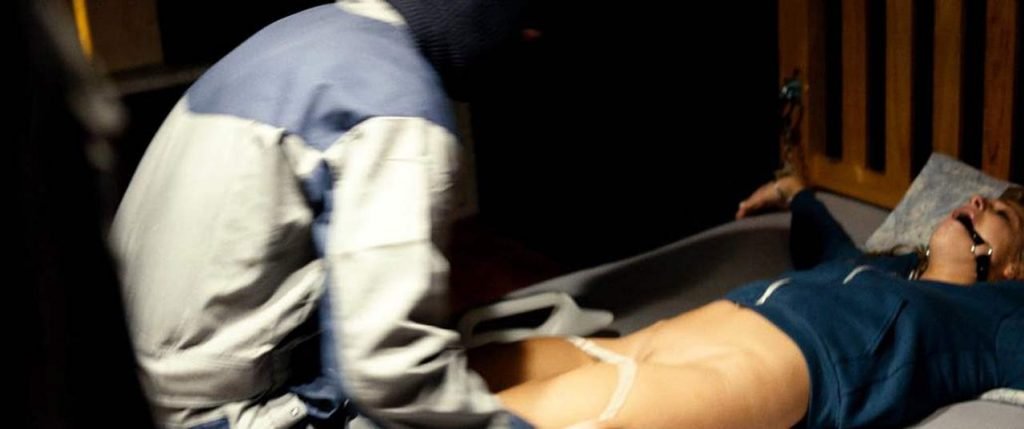 Mira la escena de la vagina de Sarah Chronis en “Bloedlink” (también conocido como Reckless, 2014), donde puedes ver a esta actriz neerlandesa atada en la cama, mientras un tipo malo con máscara intenta quitarle las bragas. Lo logró, y ves el peinado íntimo de Sarah, mientras ella lucha para no ser violada. Con una bola en la boca, Sarah gime y grita, ¡pero el hombre la domina!