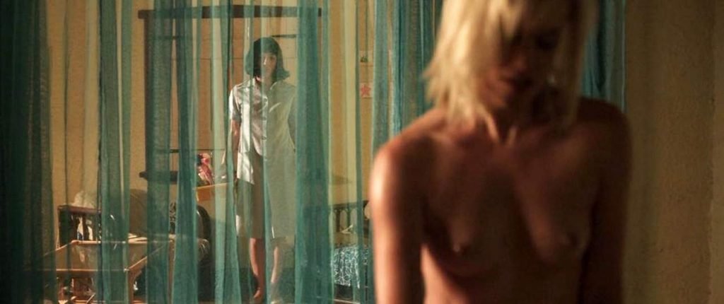 Mira la corta escena desnuda de Sarah Filippi en “Beso Ardiente” (2018), donde puedes ver sus pechos desnudos mientras monta a su amante y la otra mujer los observa desde una habitación separada.