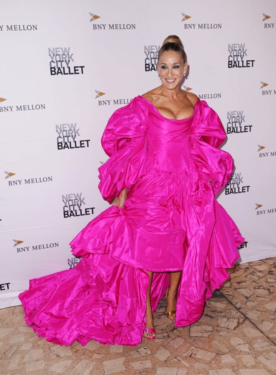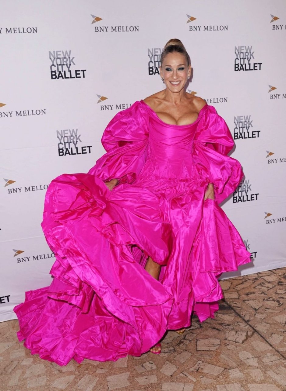 La actriz estadounidense Sarah Jessica Parker fue vista con un hermoso vestido rosa en la Gala de Moda de Otoño 2019 del Ballet de la Ciudad de Nueva York en el Lincoln Center en la ciudad de Nueva York, 26/09/2019.