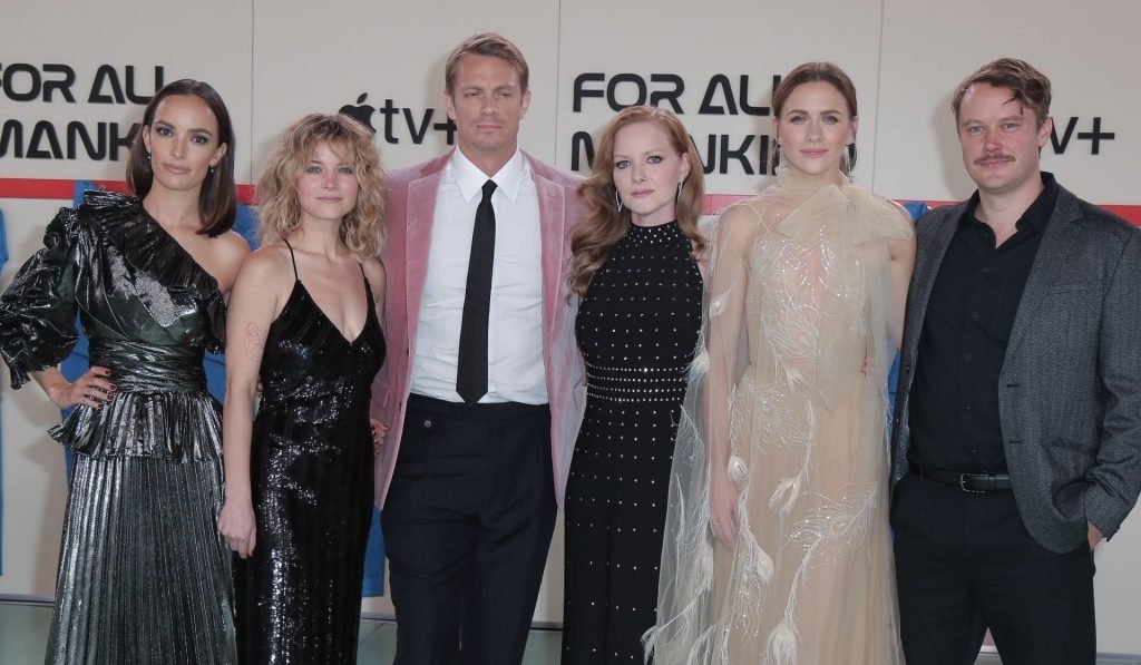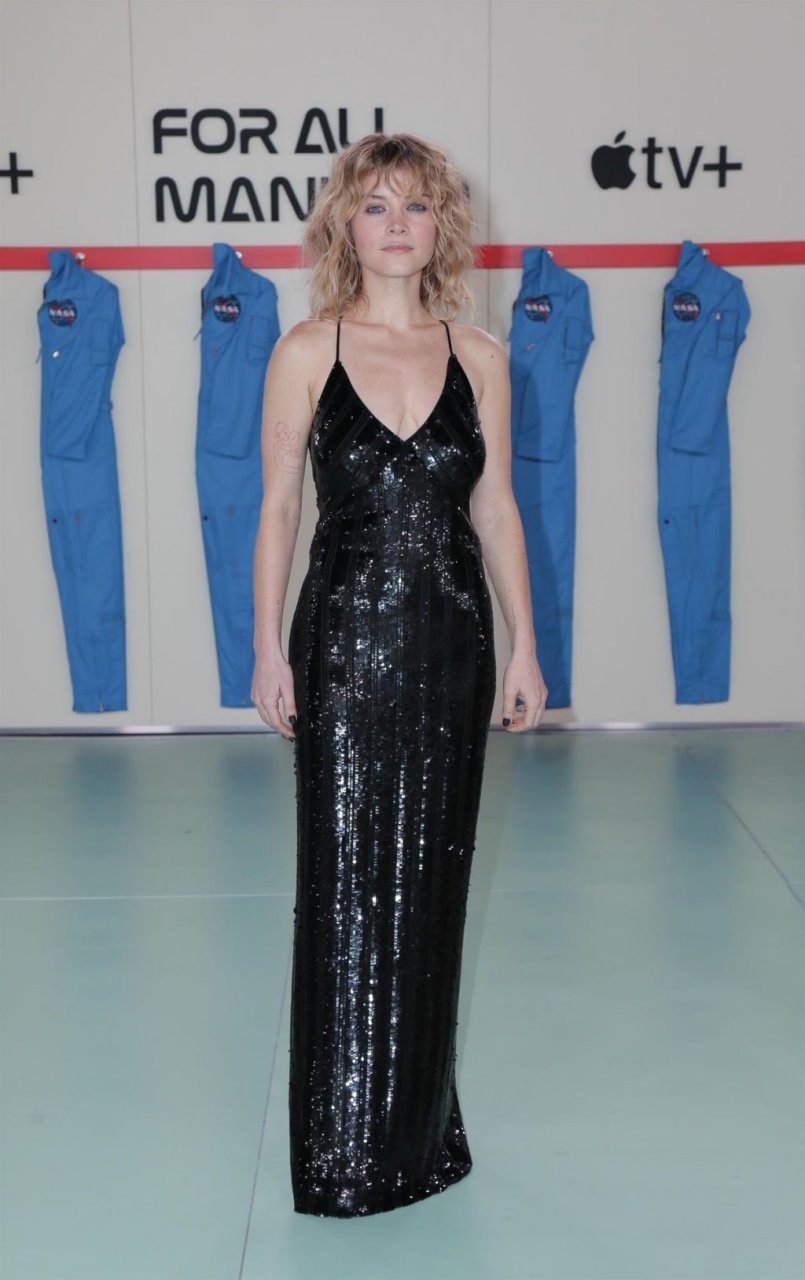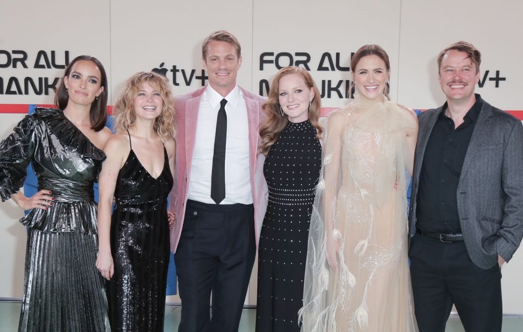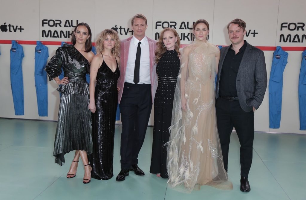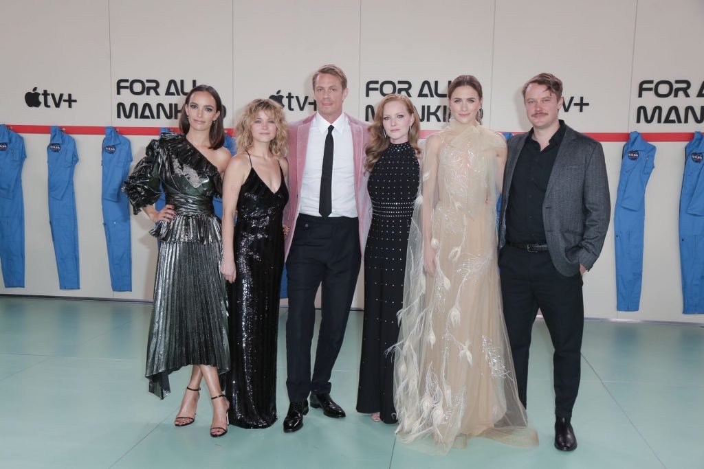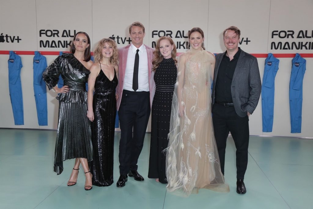 La actriz estadounidense Sarah Jones fue vista sin sostén junto con Jodi Balfour, Joel Kinnaman, Wrenn Schmidt, Shantel VanSanten, Michael Dorman y Krys Marshall en el estreno mundial de “For All Mankind” de Apple TV+ en el Regency Village Theatre en Westwood, 15/10/2019.