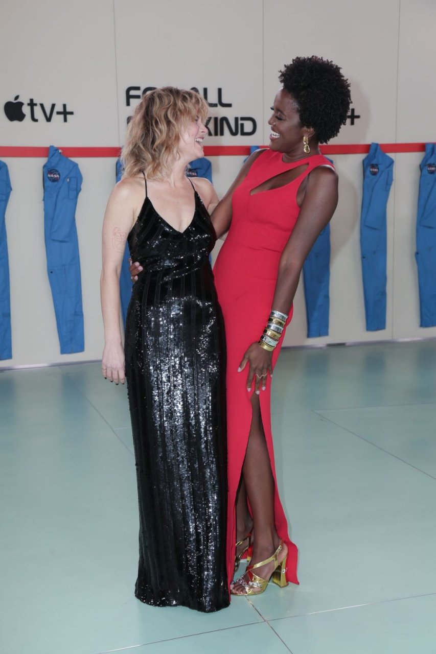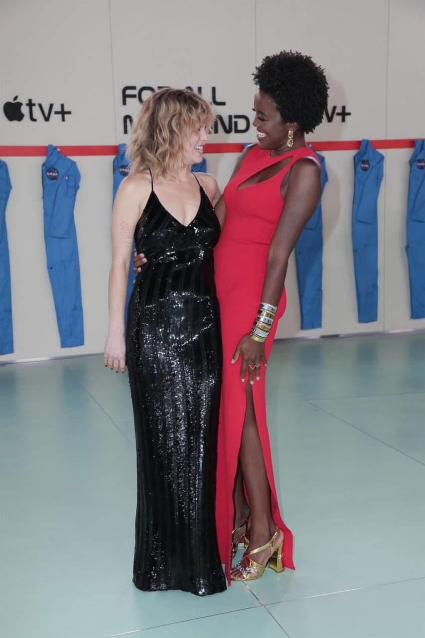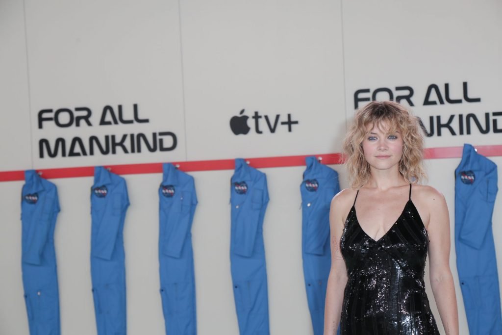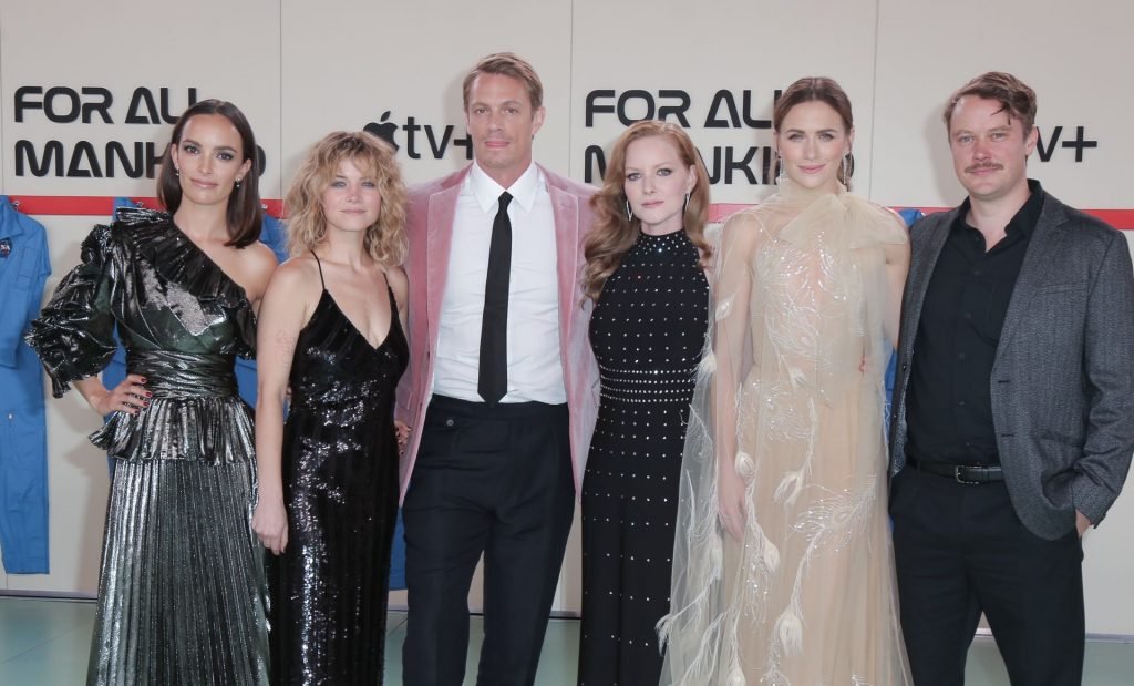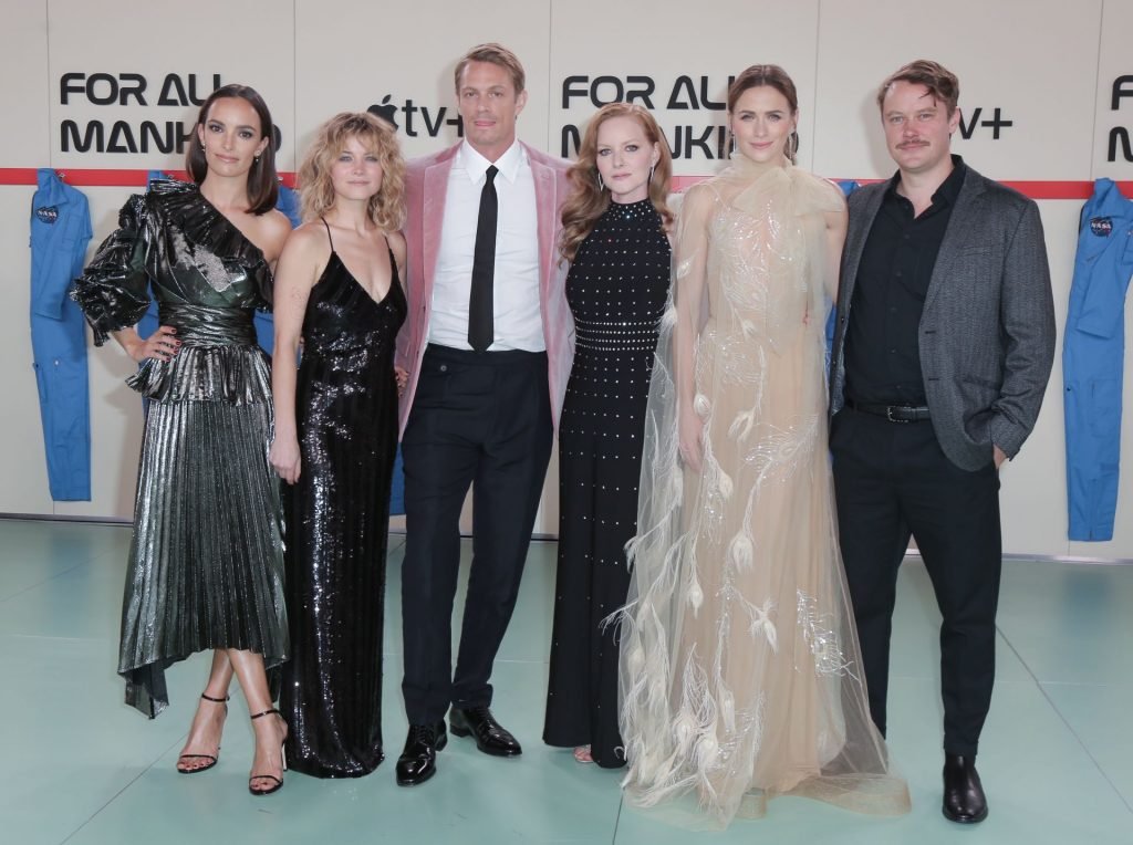 La actriz estadounidense Sarah Jones fue vista sin sostén junto con Jodi Balfour, Joel Kinnaman, Wrenn Schmidt, Shantel VanSanten, Michael Dorman y Krys Marshall en el estreno mundial de “For All Mankind” de Apple TV+ en el Regency Village Theatre en Westwood, 15/10/2019.