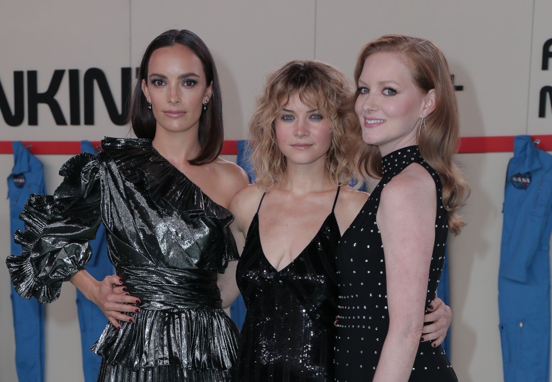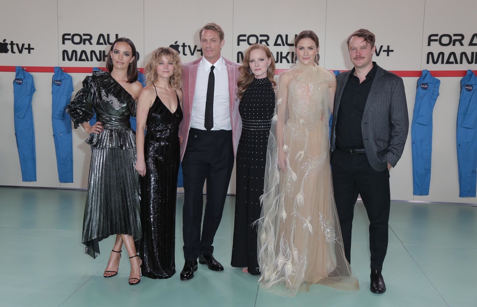 La actriz estadounidense Sarah Jones fue vista sin sostén junto con Jodi Balfour, Joel Kinnaman, Wrenn Schmidt, Shantel VanSanten, Michael Dorman y Krys Marshall en el estreno mundial de “For All Mankind” de Apple TV+ en el Regency Village Theatre en Westwood, 15/10/2019.