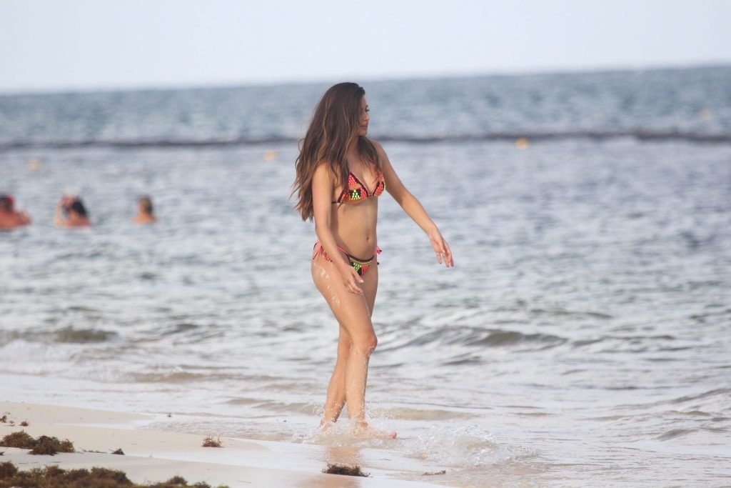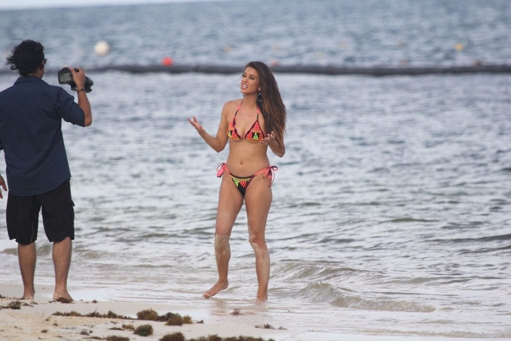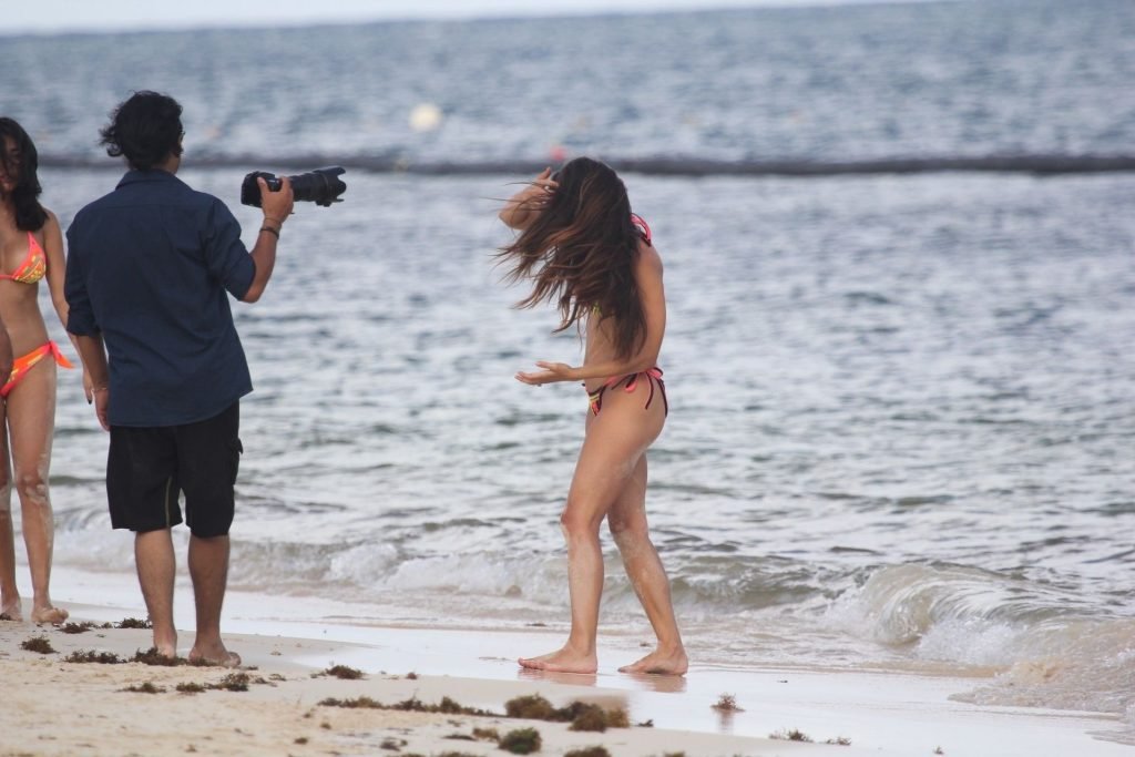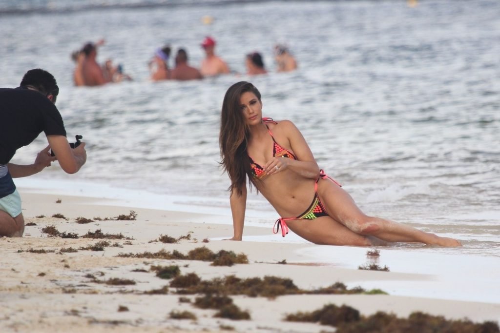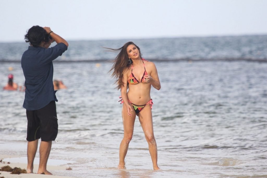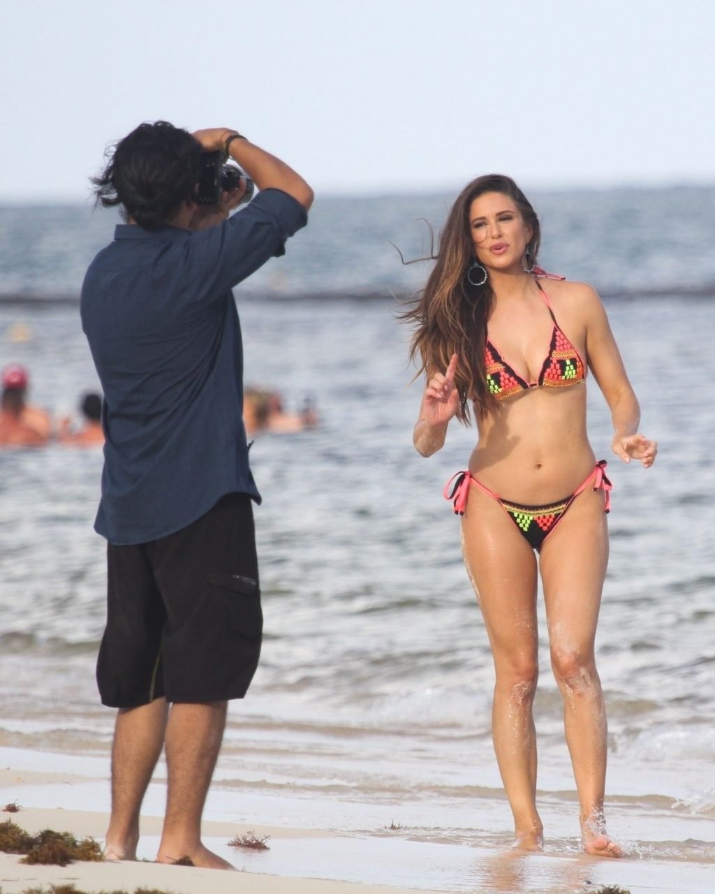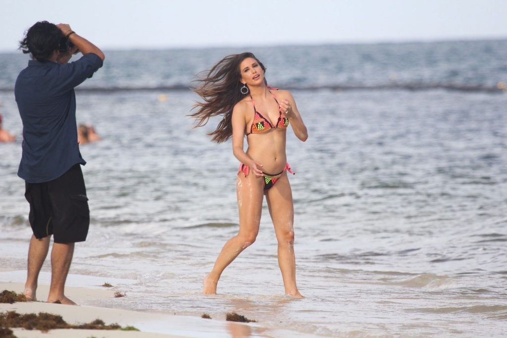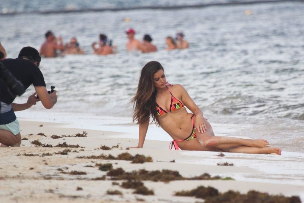 Model Sarah Rose Summers calienta la playa para una sesión de fotos en bikini, 29/09/2019. La ganadora de Miss USA 2018 lució un bikini neón rosa y verde para la sesión de fotos junto con otras modelos en bikini.