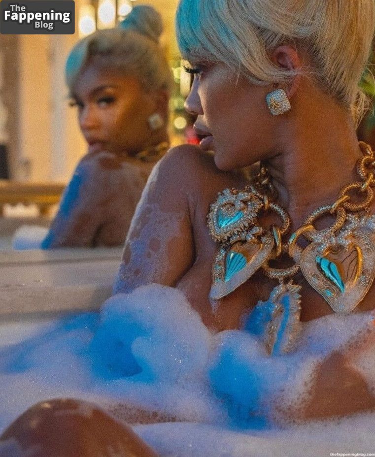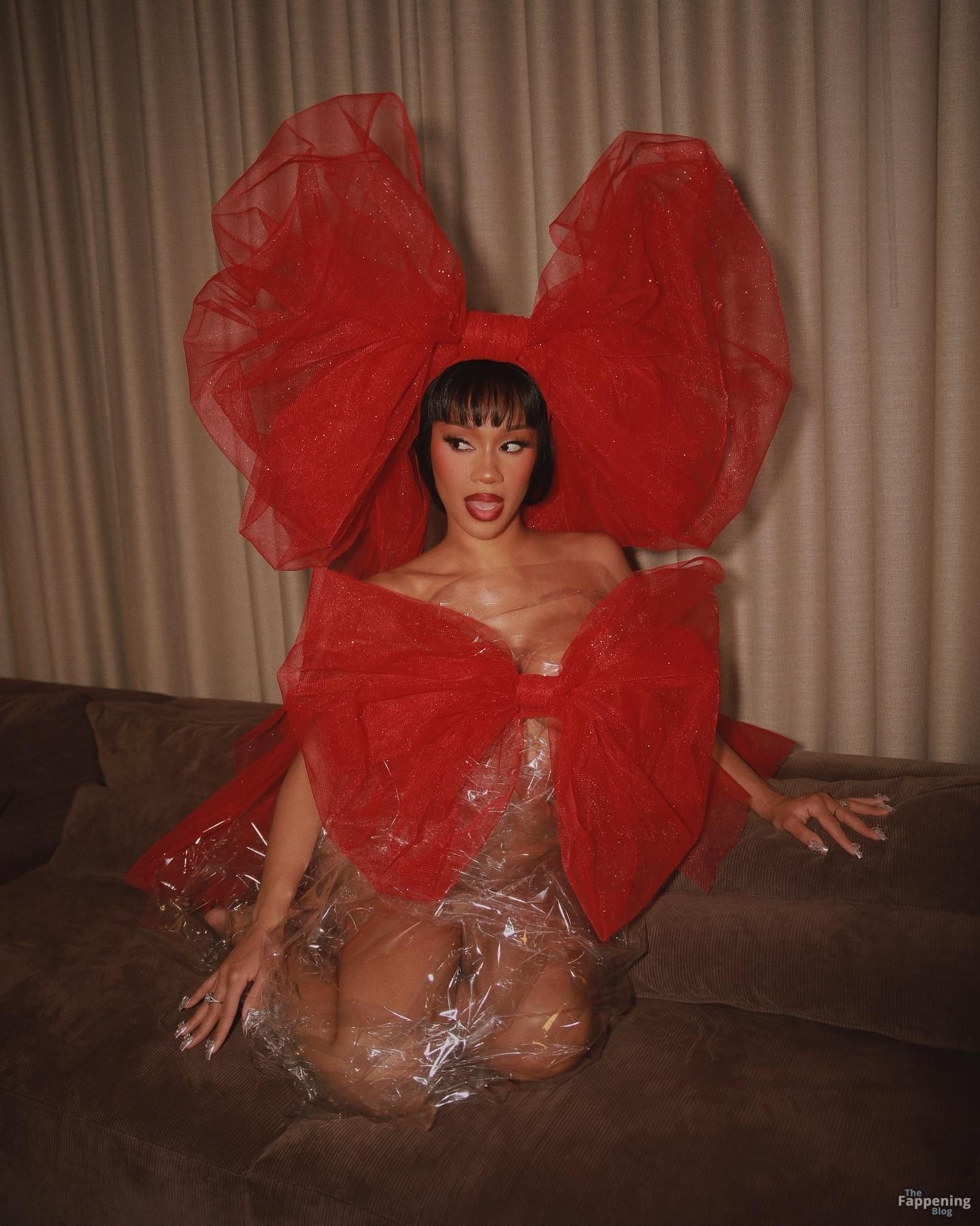 Echa un vistazo a la sensual mezcla de fotos de Saweetie en redes sociales y capturas de paparazzi, luciendo sus famosas tetas grandes y falsas.