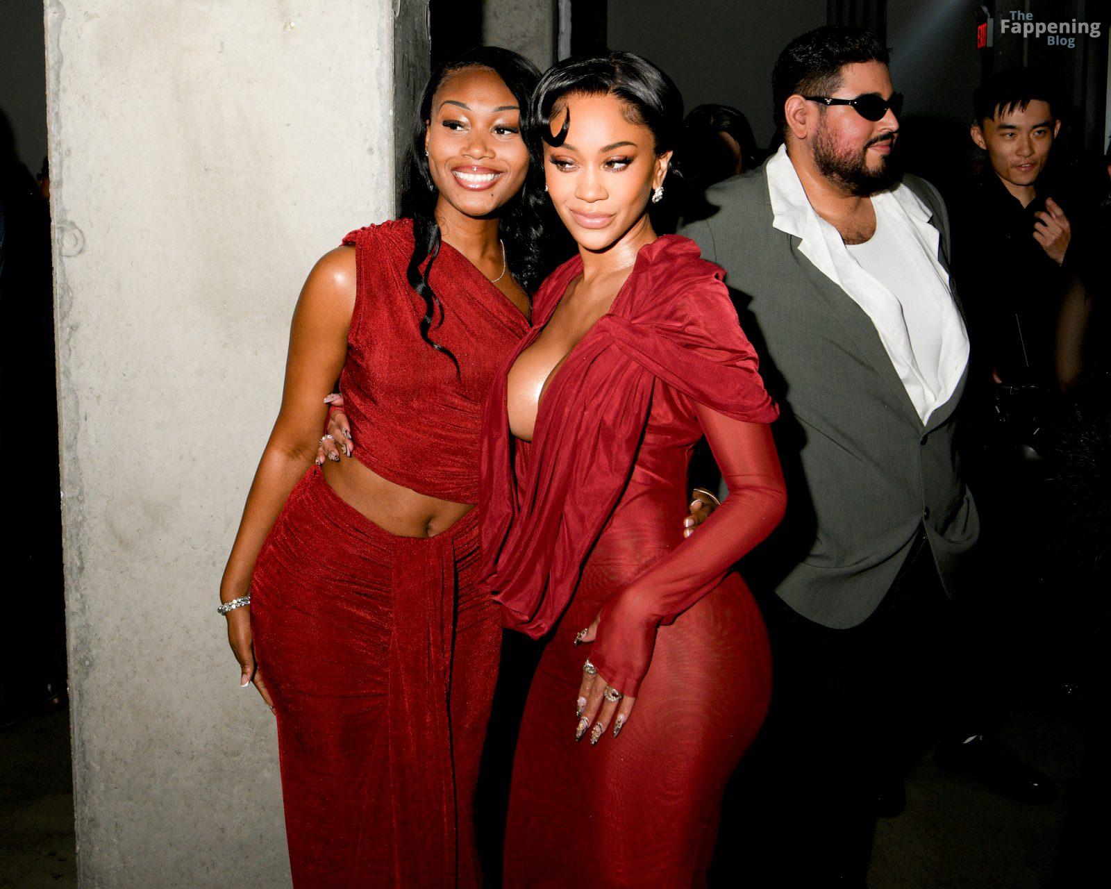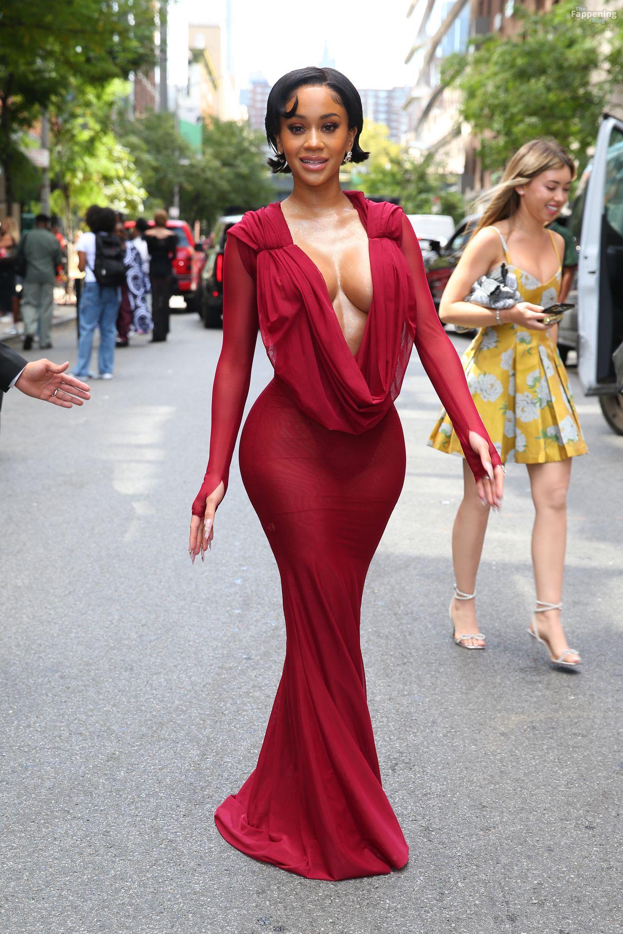 Saweetie Muestra Sus Sexy Pechos en un Vestido Rojo Transparente (71 Fotos)