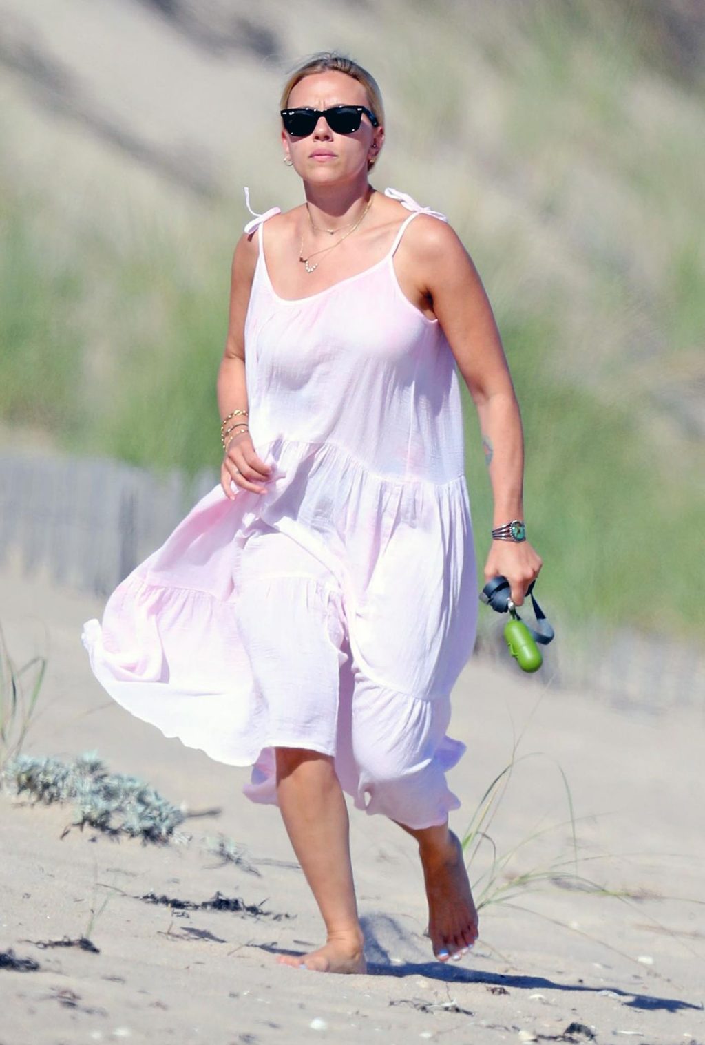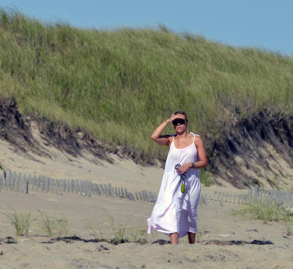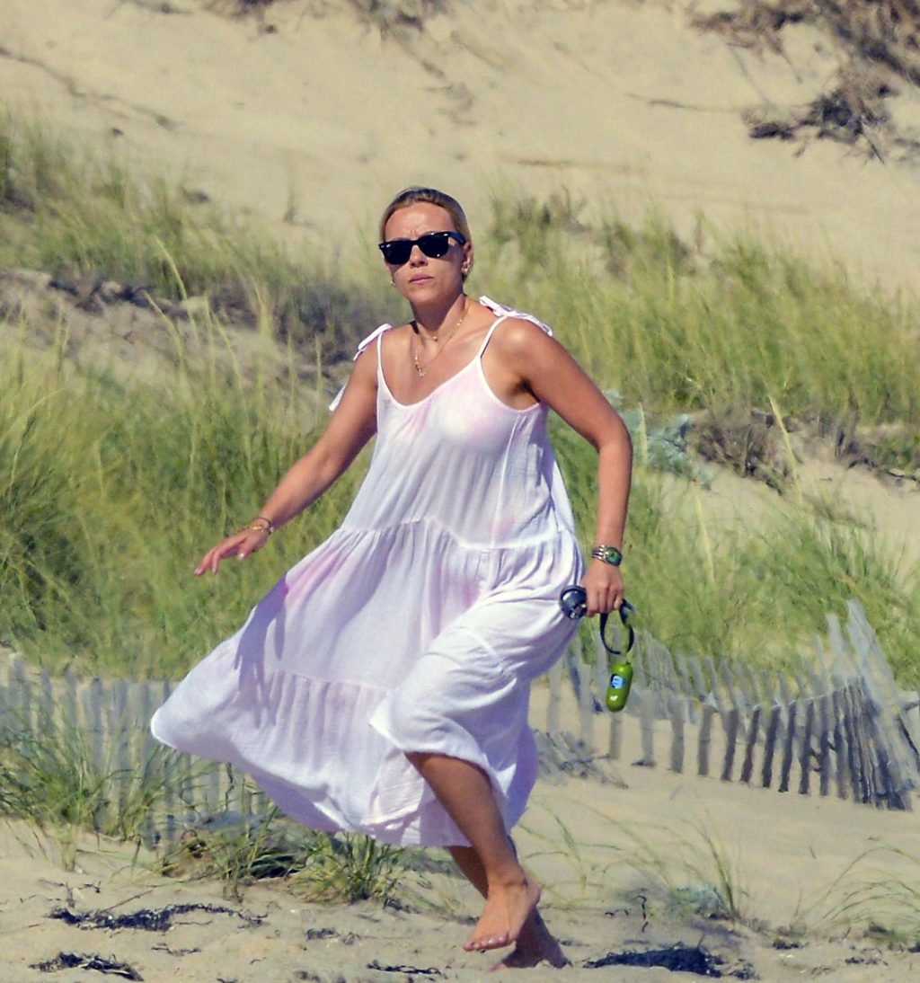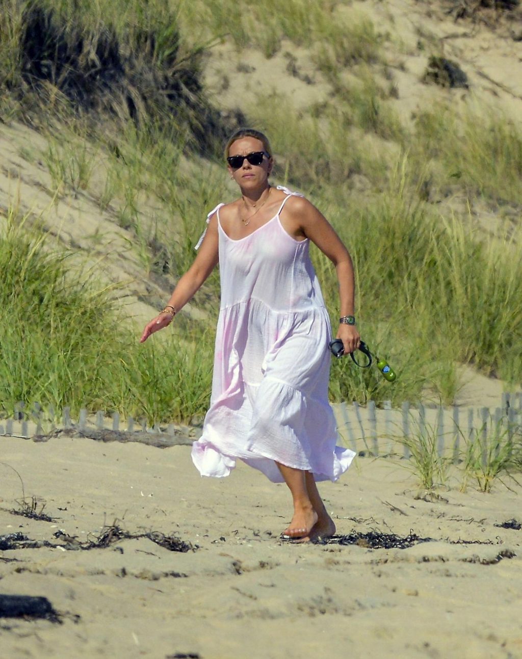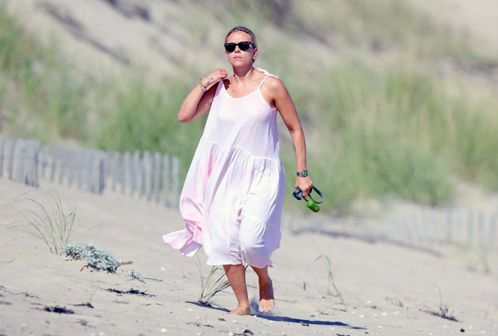 And now, guys, let’s take a look at what quarantine has done to our favorite blonde! She is either pregnant or just got fat during Corona because she is hiding her big stomach underneath a wide summer dress! She also did not wear a bra, and we can see that even her tits got fat and bigger! She went on a walk with her dog on the beach in the Hamptons as the paparazzi spotted her while sunbathing!