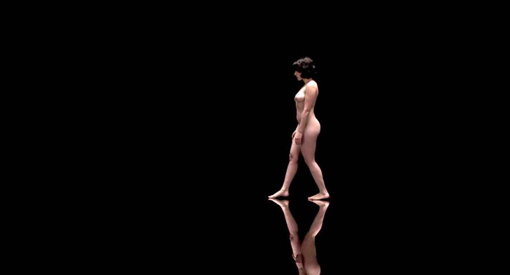 Check out a little bit of strange hot Scarlett Johansson naked scene from the movie ‘Under The Skin’. Where she is walking backward with a completely black background, utterly nude, while she steps slowly away from a guy and then stops, and her tits and butt are here visible from the side!