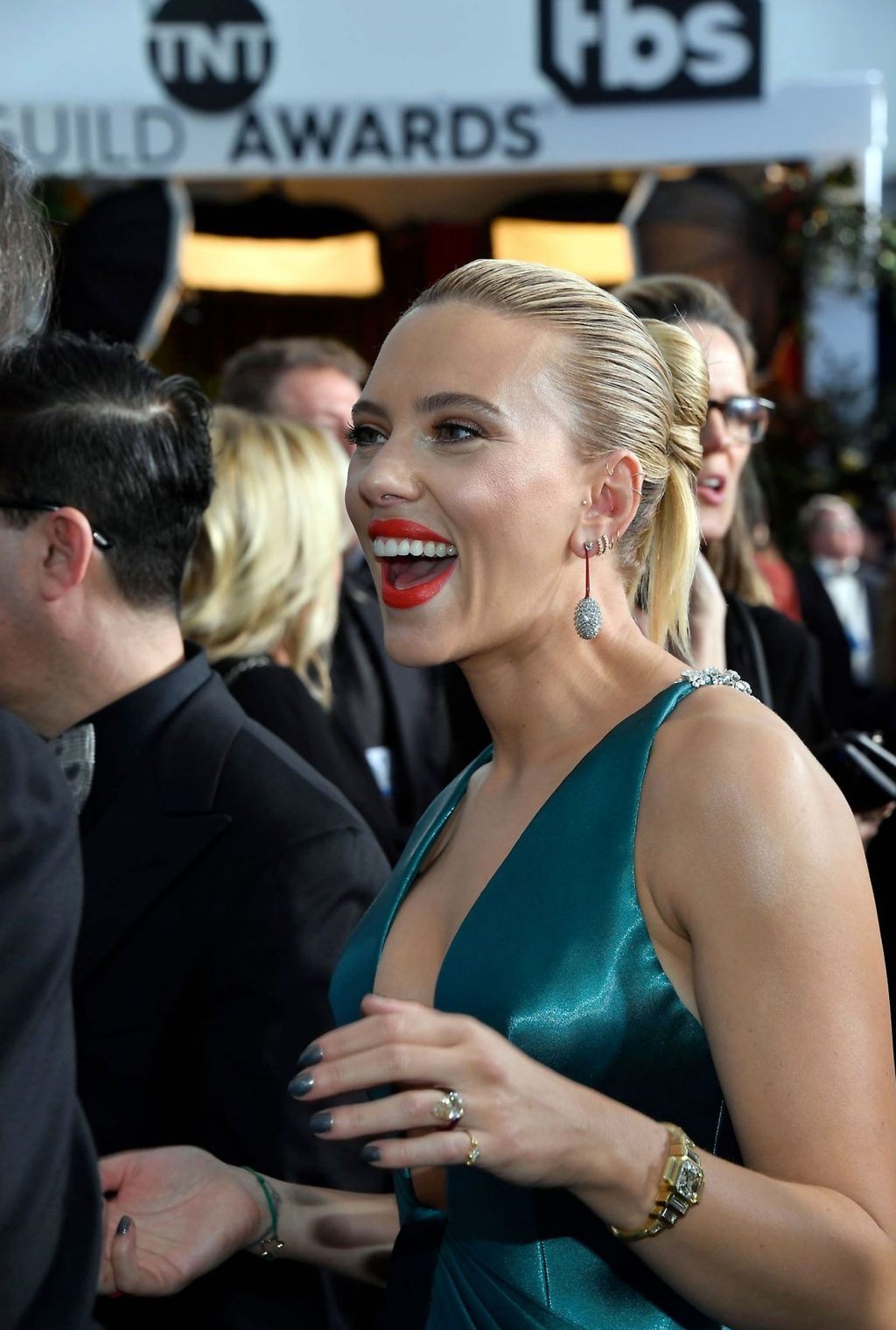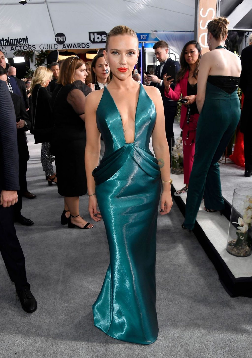 And I thought that Margot Robbie had the enormous cleavage of all time, but clearly, I might be wrong! Miss Scarlett Johansson had worn this dress with a cleavage that goes almost to her belly button! She attended the 26th Screen Actors Guild Awards at the Los Angeles Shrine Auditorium and Expo Hall.