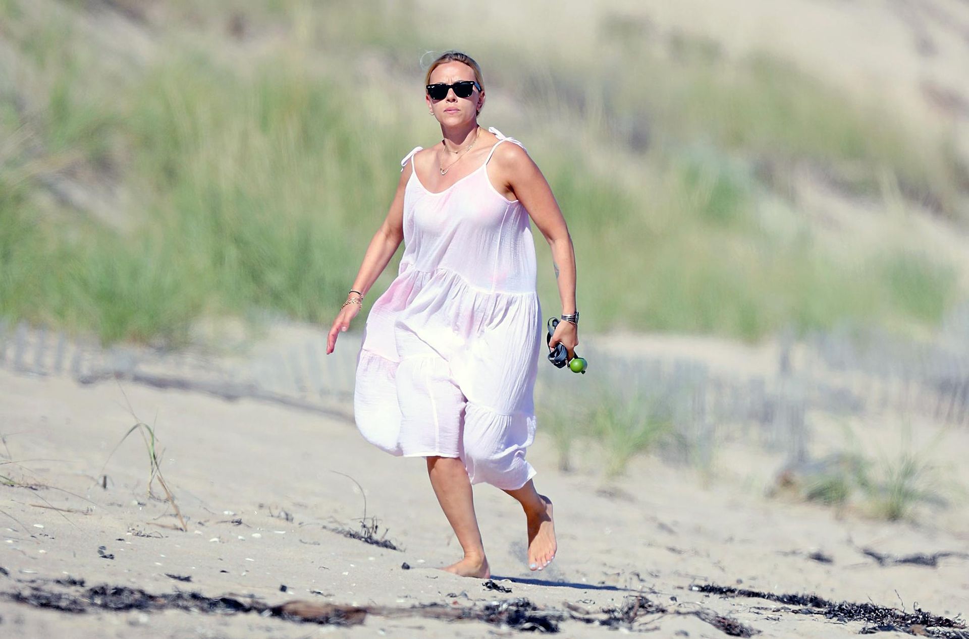 And now, guys, let’s take a look at what quarantine has done to our favorite blonde! She is either pregnant or just got fat during Corona because she is hiding her big stomach underneath a wide summer dress! She also did not wear a bra, and we can see that even her tits got fat and bigger! She went on a walk with her dog on the beach in the Hamptons as the paparazzi spotted her while sunbathing!