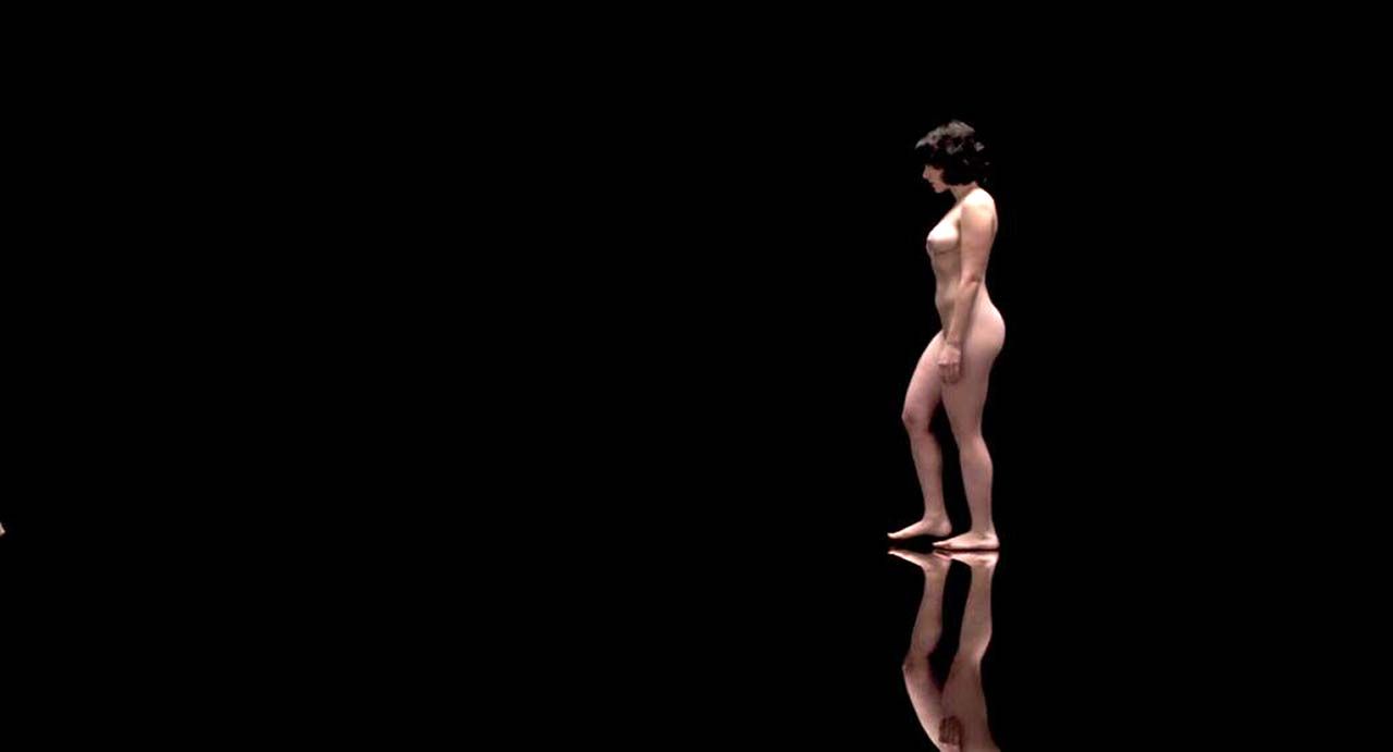 Check out a little bit of strange hot Scarlett Johansson naked scene from the movie ‘Under The Skin’. Where she is walking backward with a completely black background, utterly nude, while she steps slowly away from a guy and then stops, and her tits and butt are here visible from the side!