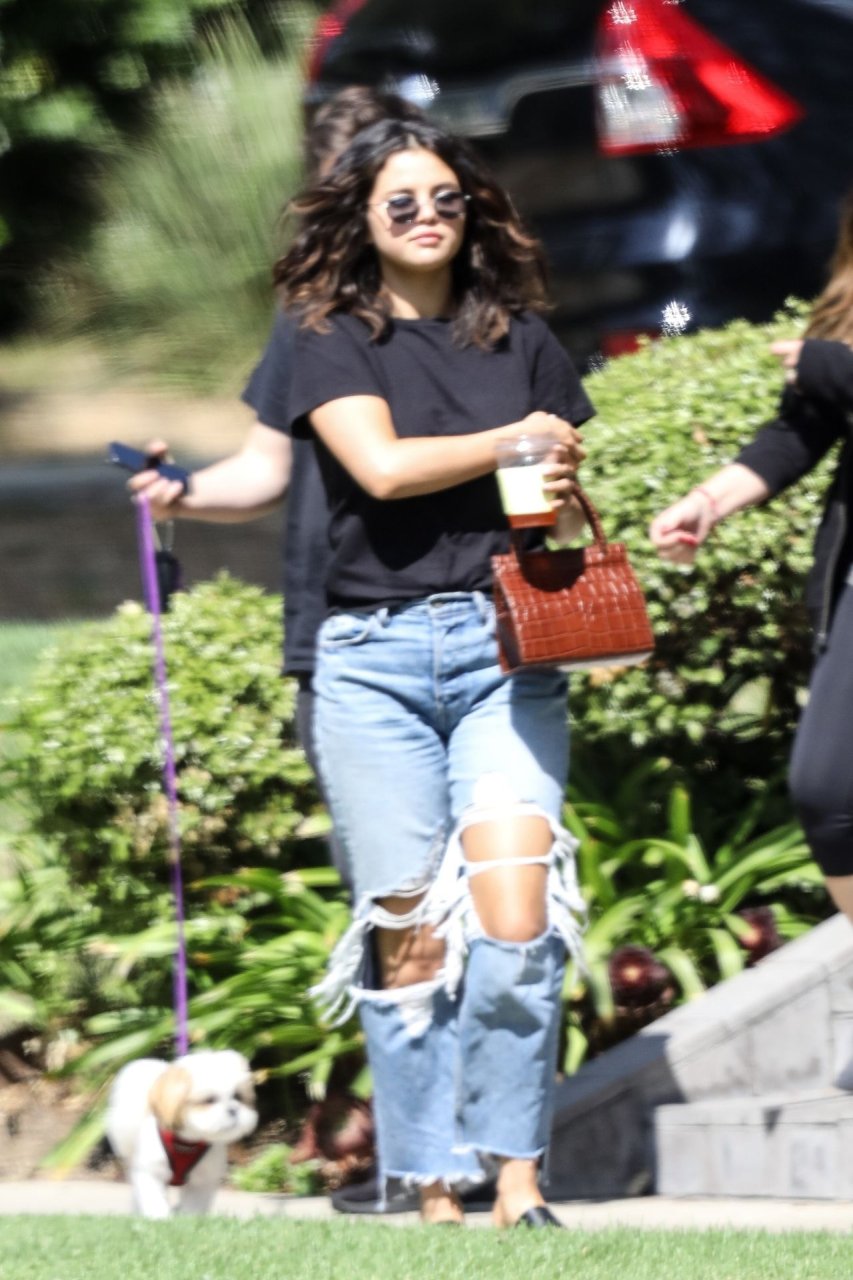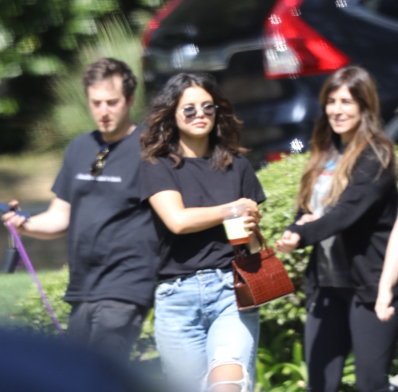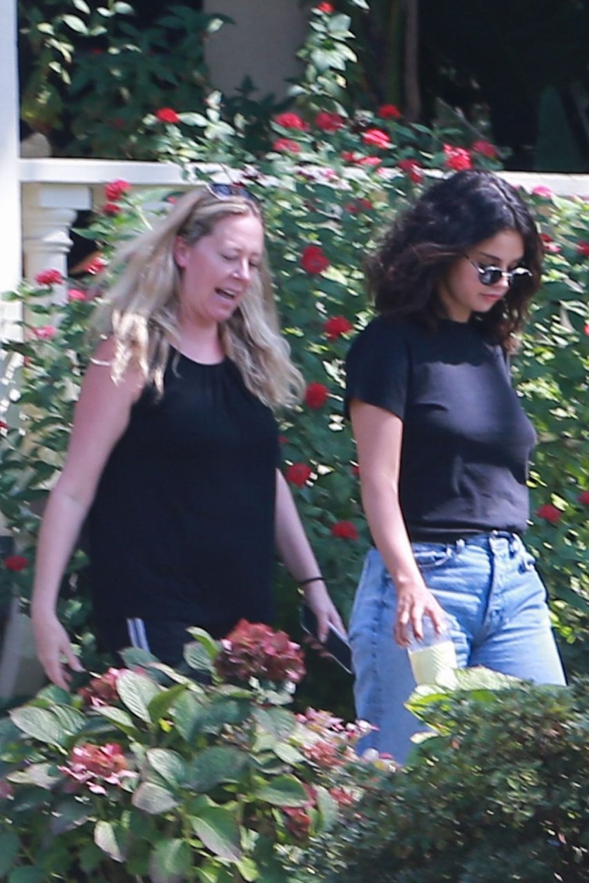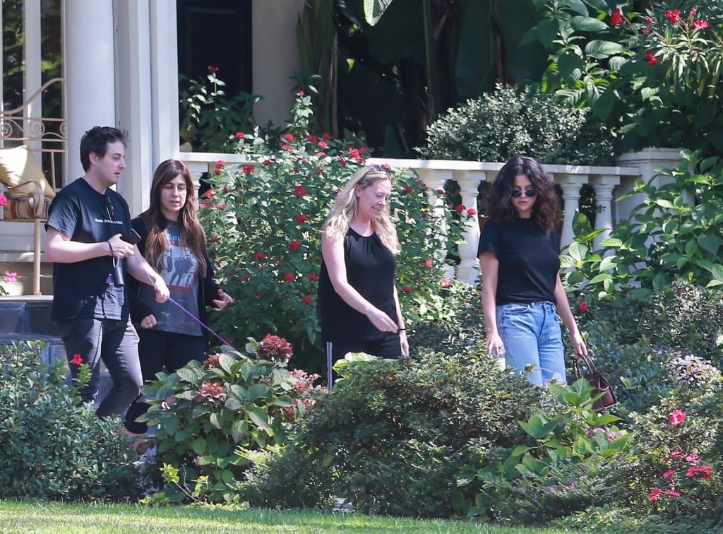 Selena Gomez pasa por la casa de un amigo mientras ella y un grupo de amigos salen juntos para una noche en Los Ángeles, 11/09/2019.