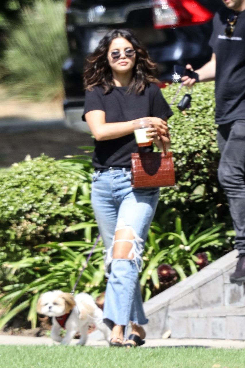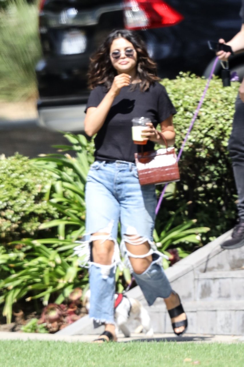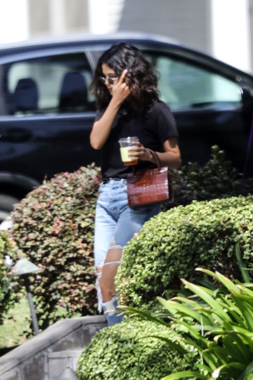 Selena Gomez pasa por la casa de un amigo mientras ella y un grupo de amigos salen juntos para una noche en Los Ángeles, 11/09/2019.