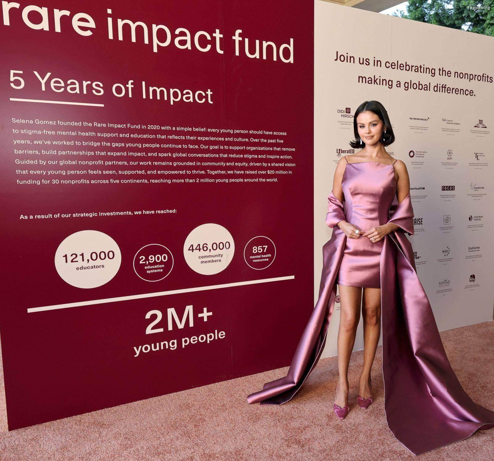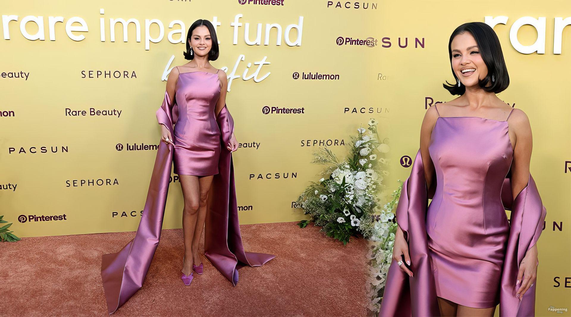 La actriz, cantante, productora, compositora y empresaria estadounidense Selena Gomez iluminó el 3er Beneficio Anual del Rare Impact Fund en Hollywood, luciendo un mini de satén rosa que mostraba sus impresionantes piernas.