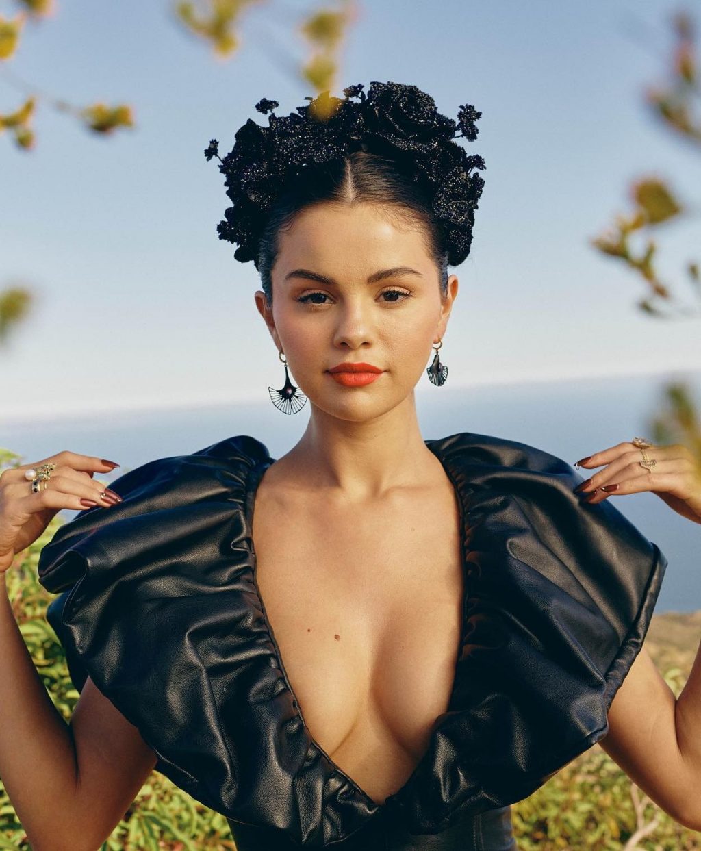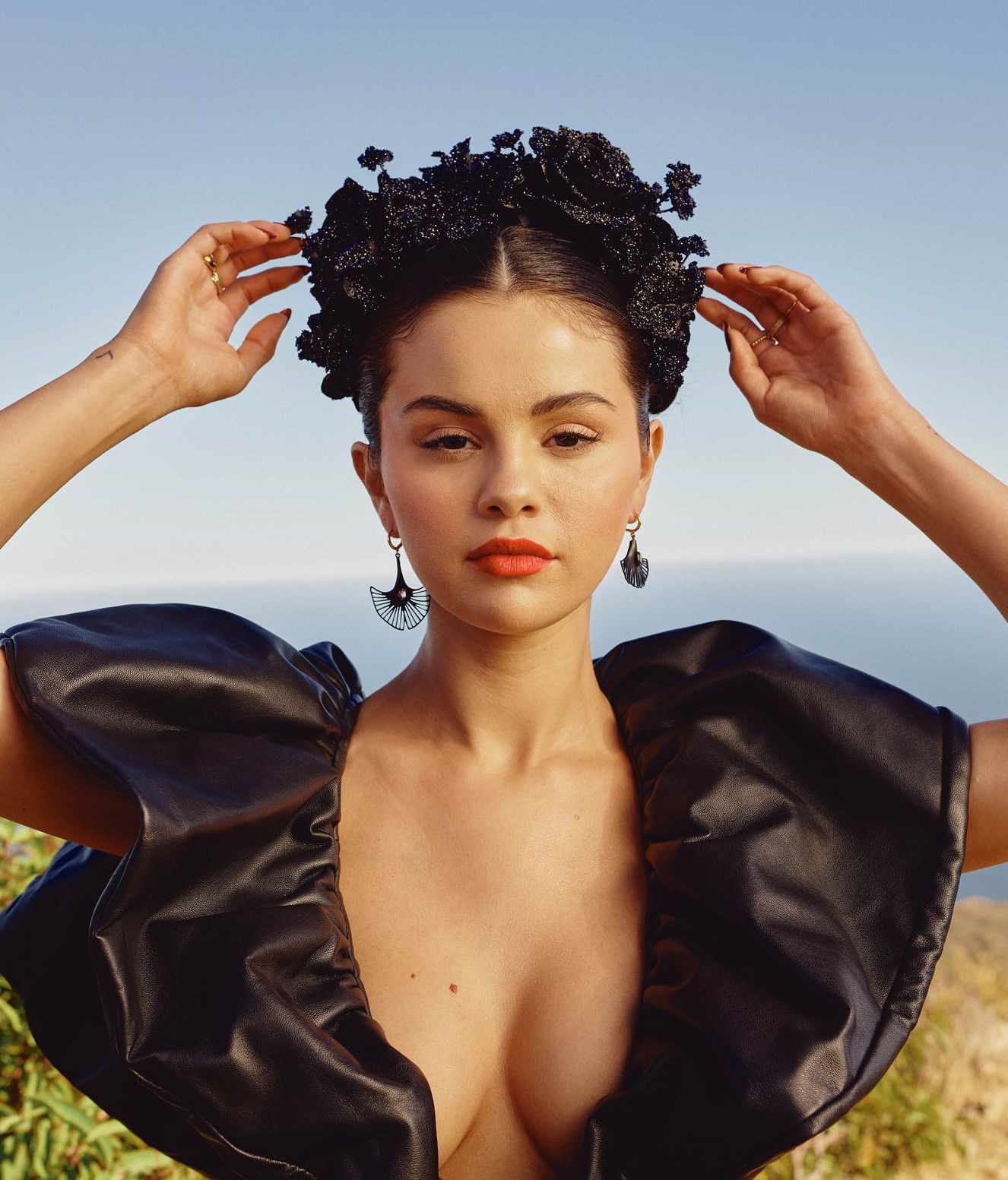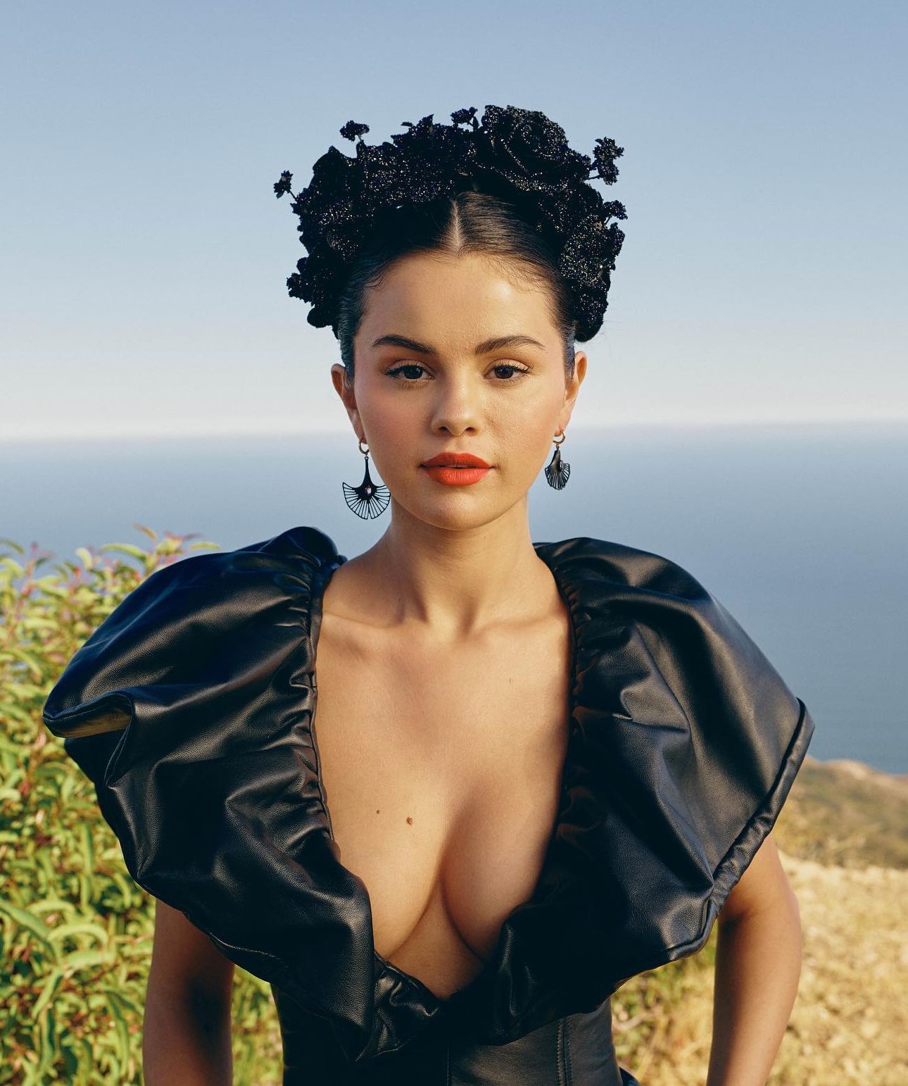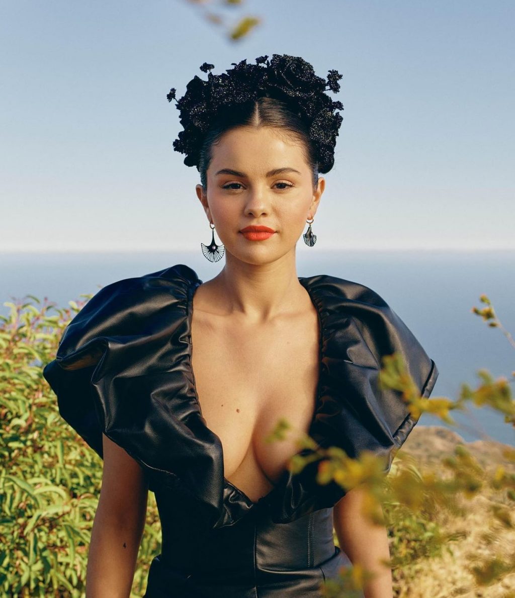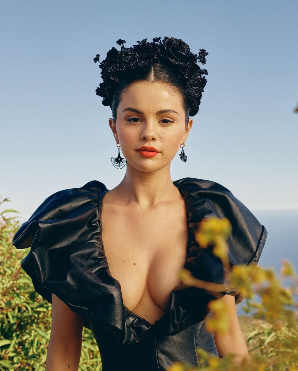 La cantante/actriz Selena Gomez muestra su escote y piernas sexys en una nueva sesión de fotos realizada por Micaiah Carter para la revista Allure (2020).