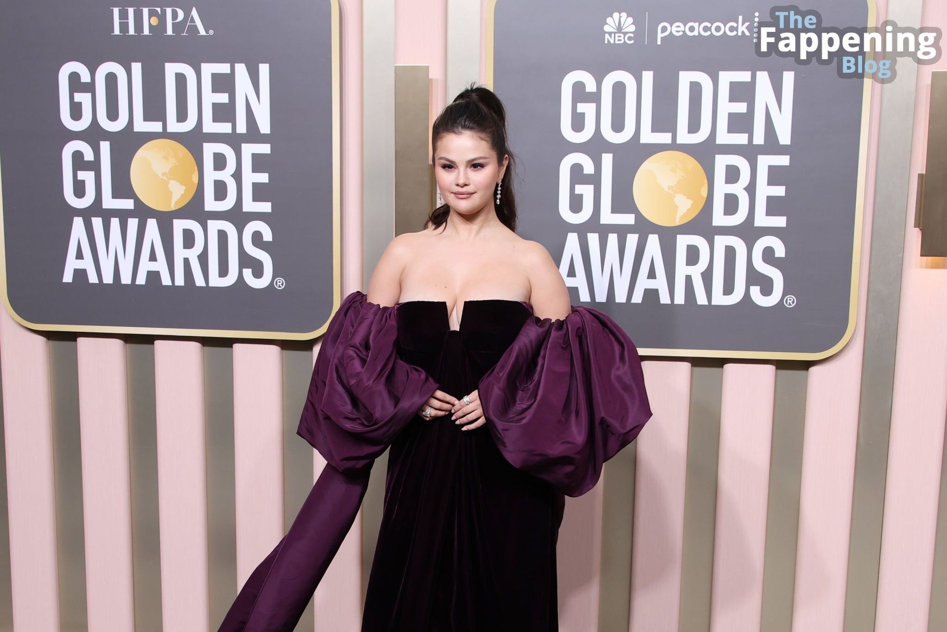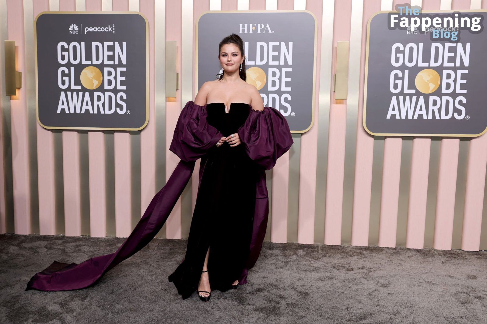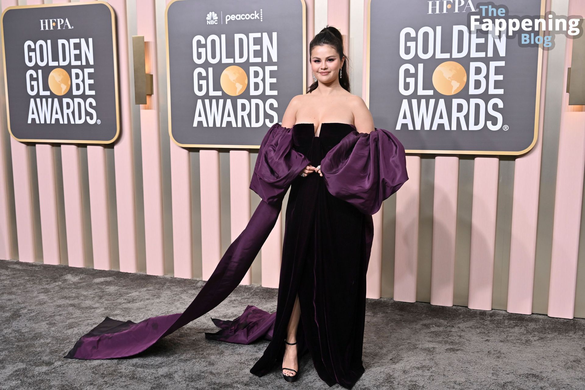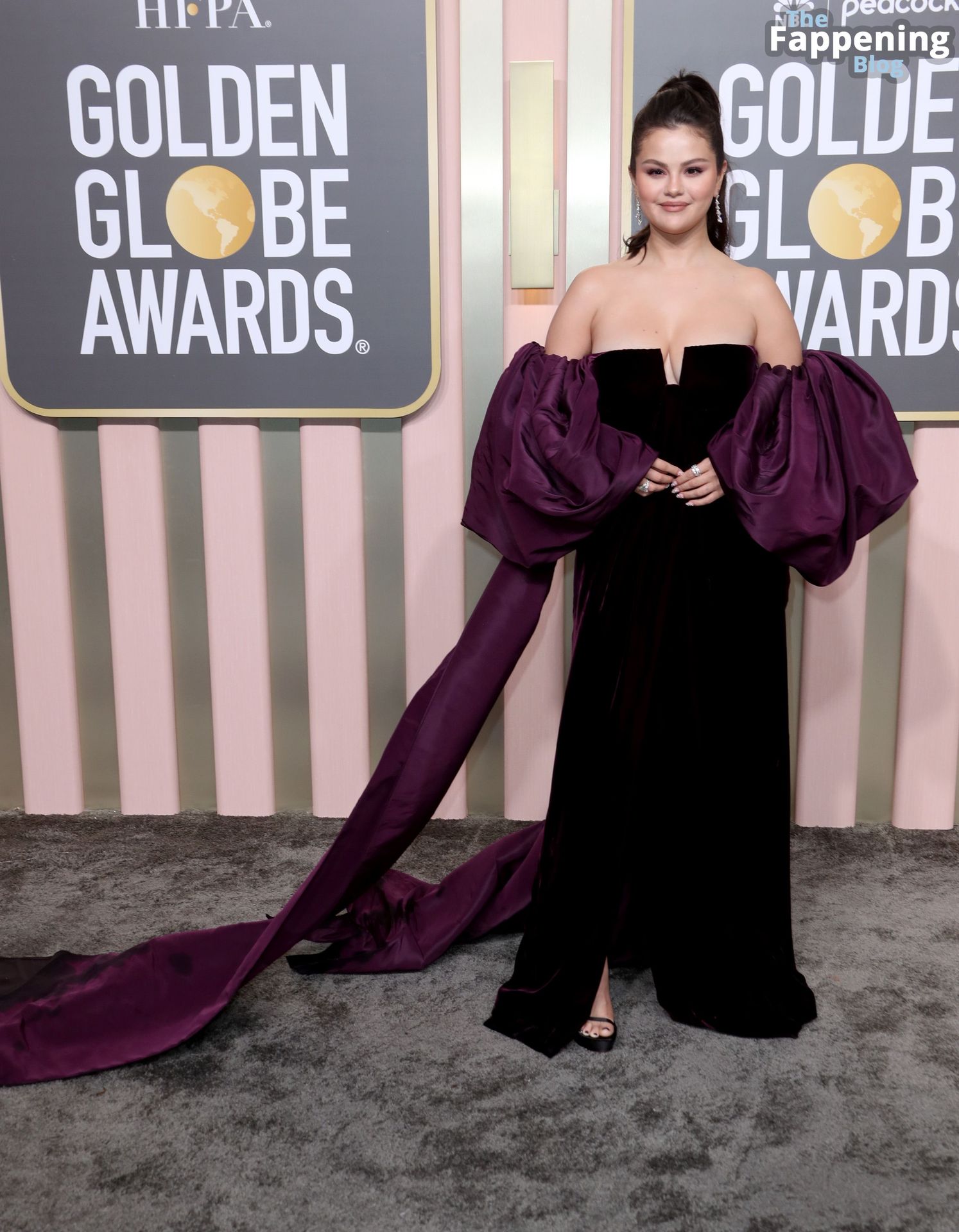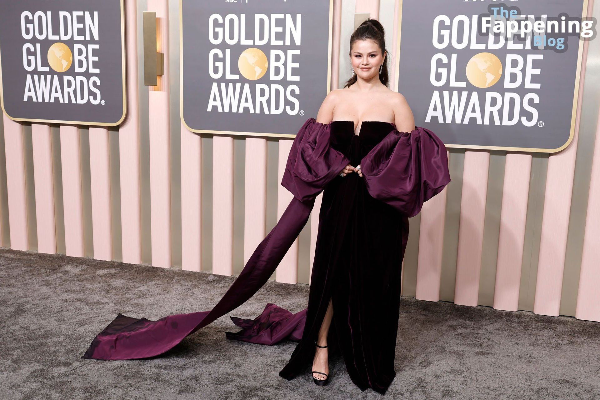 Cantante y La Estrella de The Fappening Selena Gomez posa en la alfombra roja en la 80ª Entrega Anual de los Globos de Oro en el Beverly Hilton en Beverly Hills, 01/10/2023.