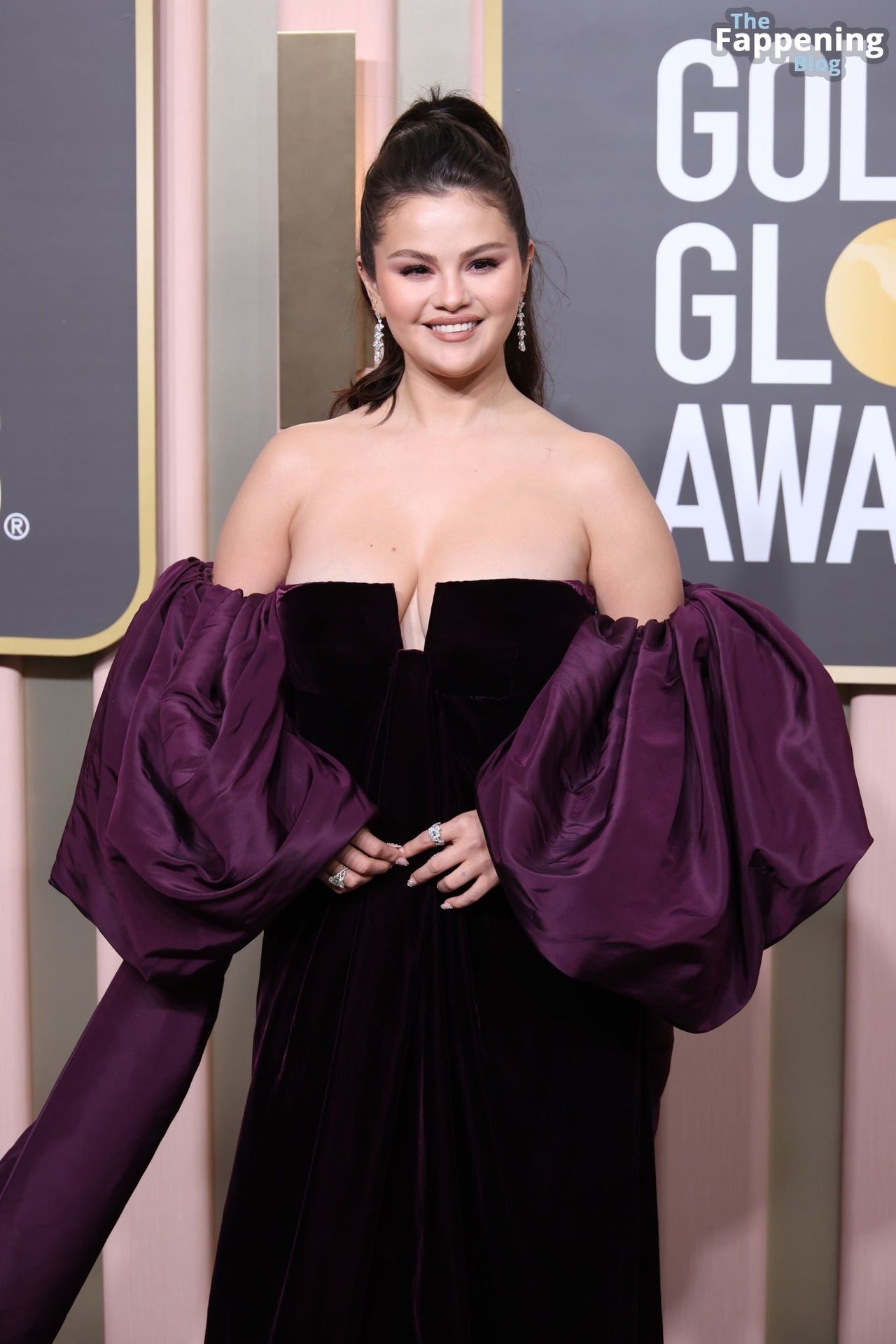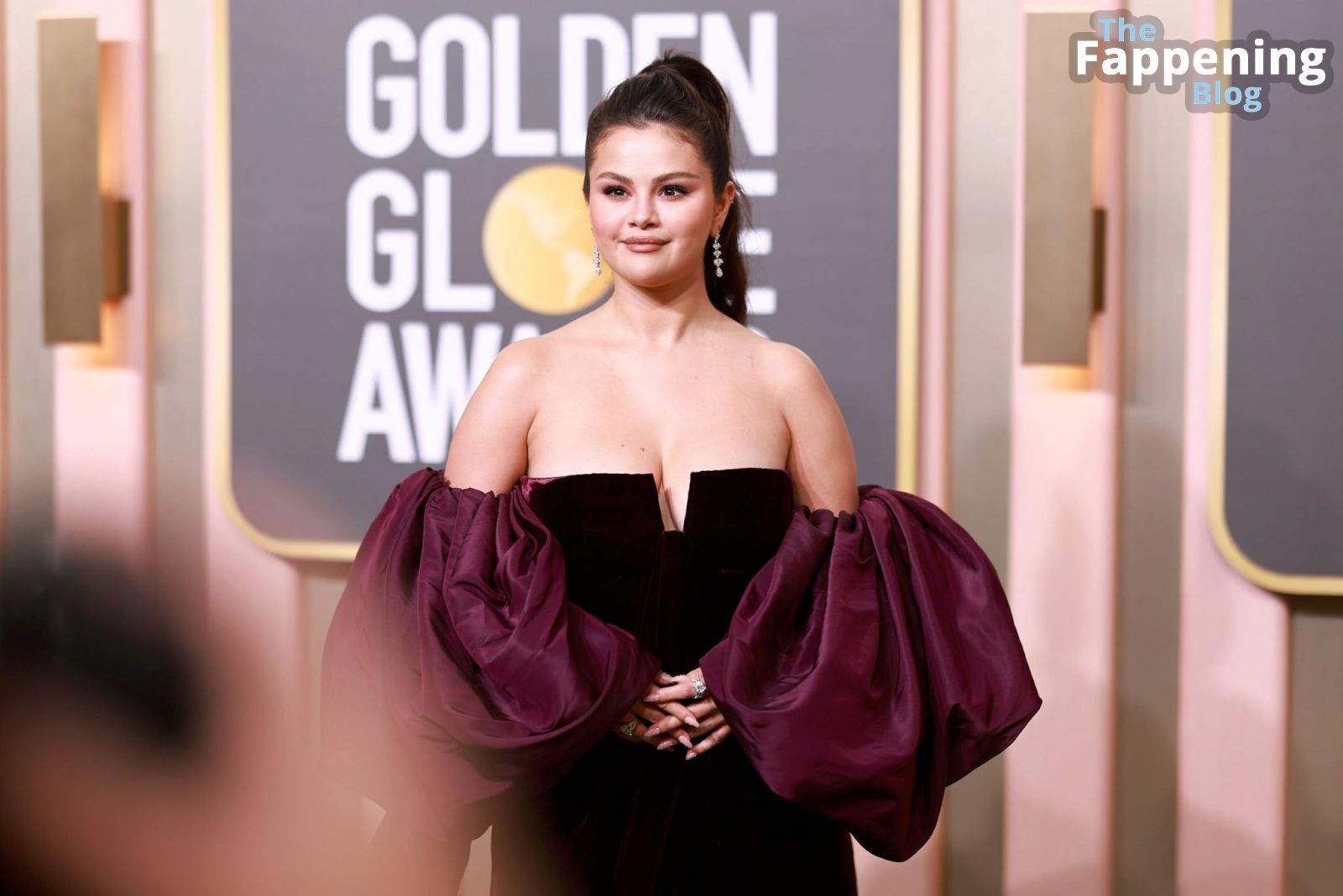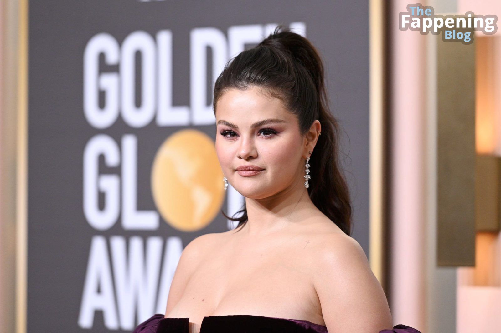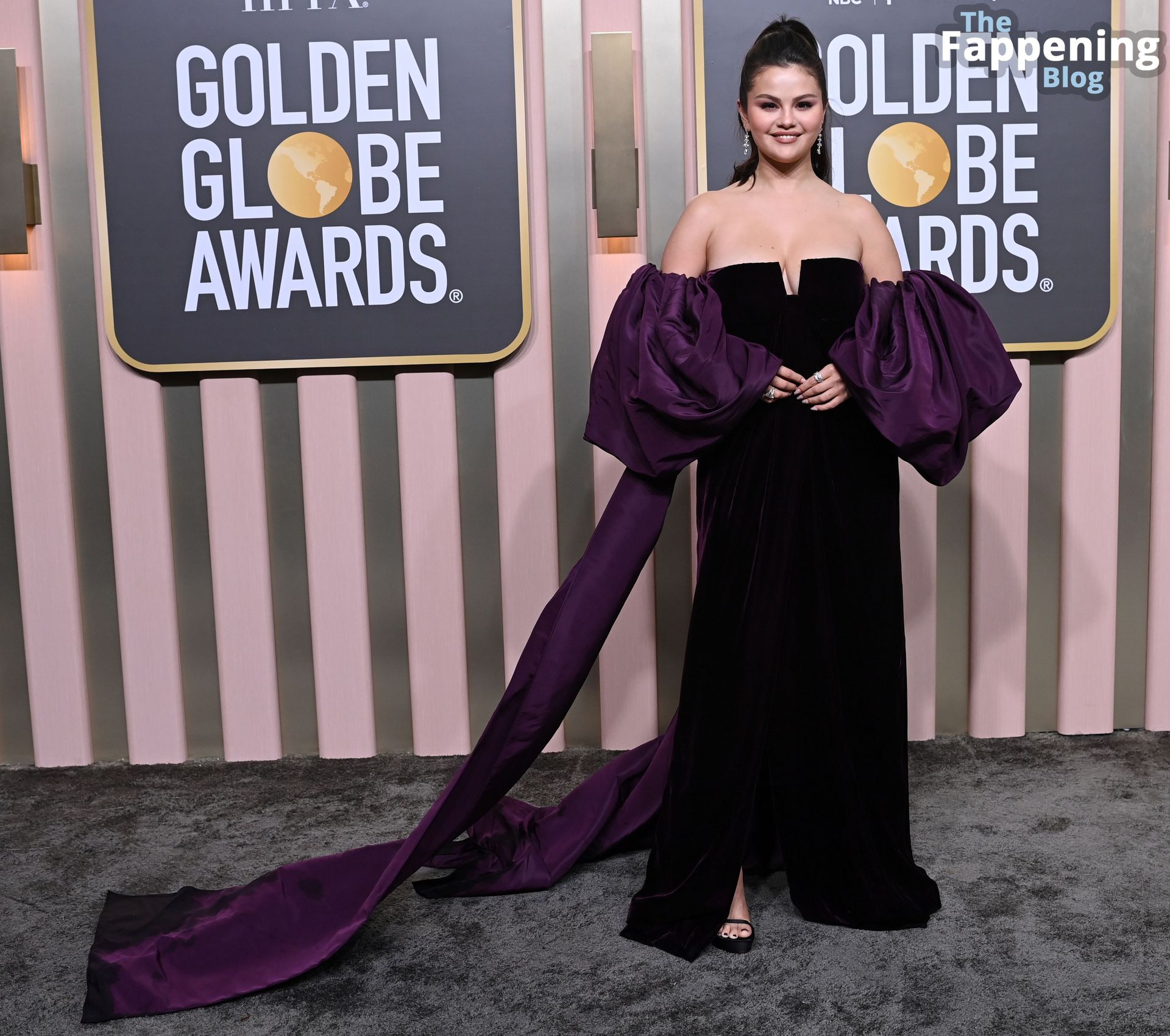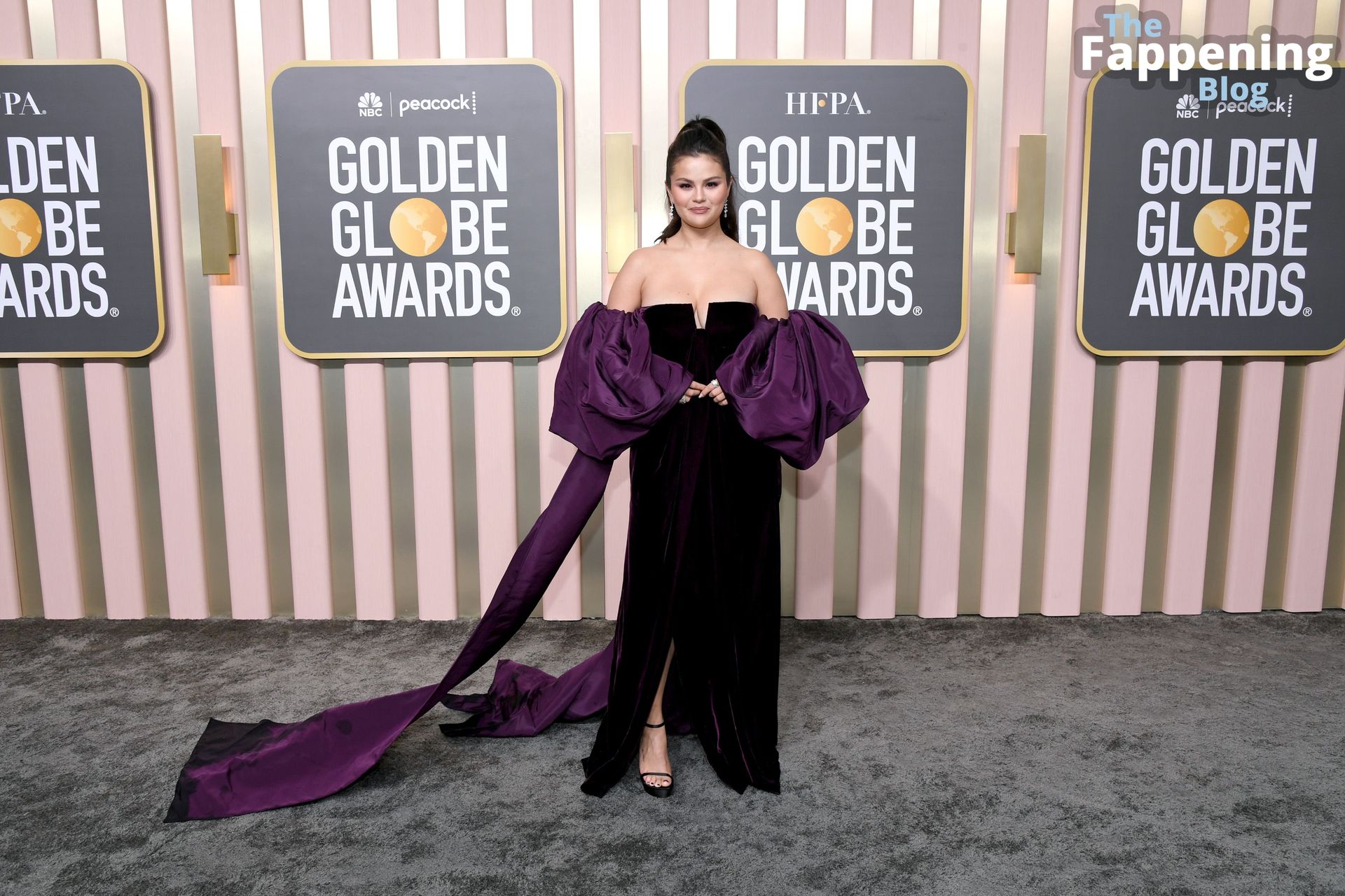 Cantante y La Estrella de The Fappening Selena Gomez posa en la alfombra roja en la 80ª Entrega Anual de los Globos de Oro en el Beverly Hilton en Beverly Hills, 01/10/2023.