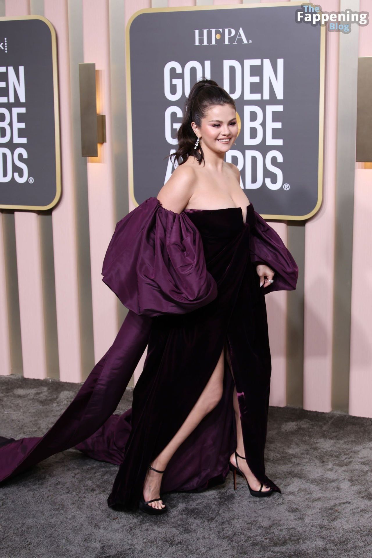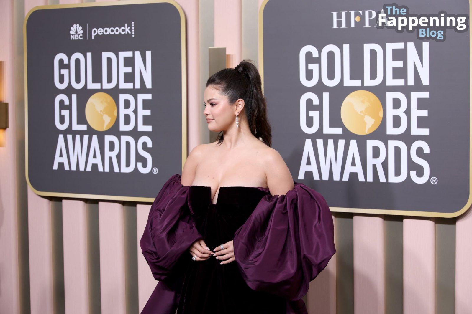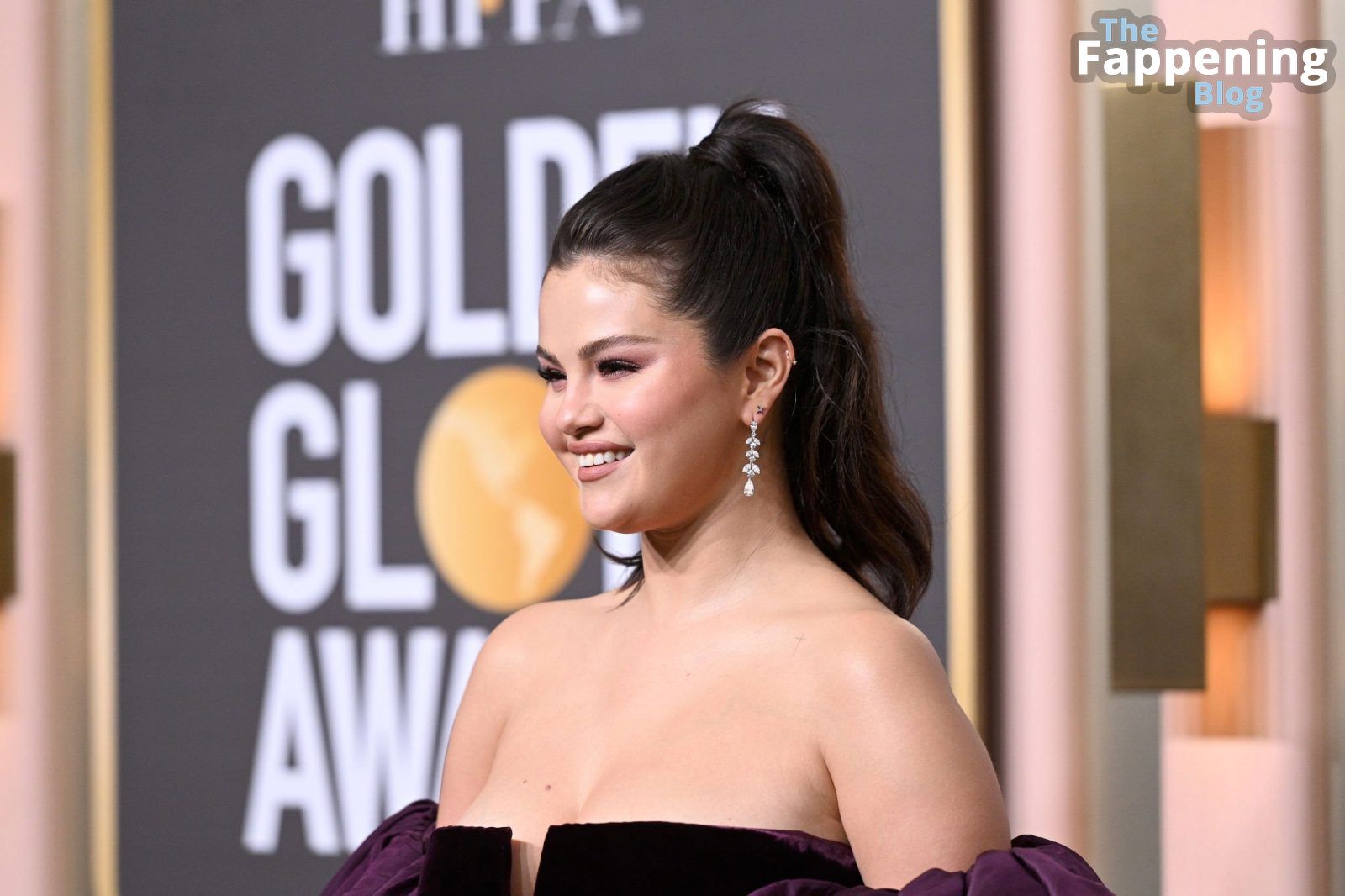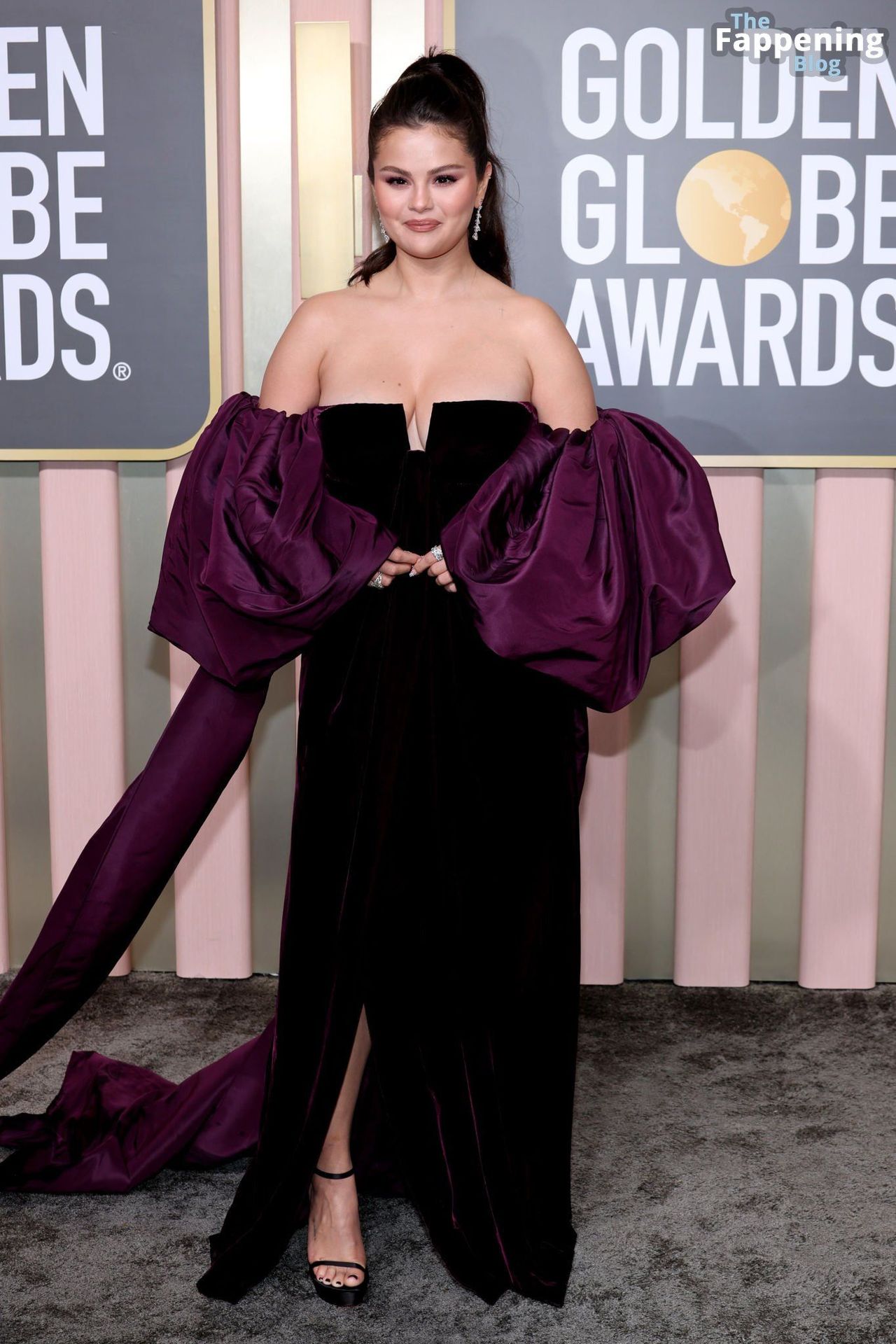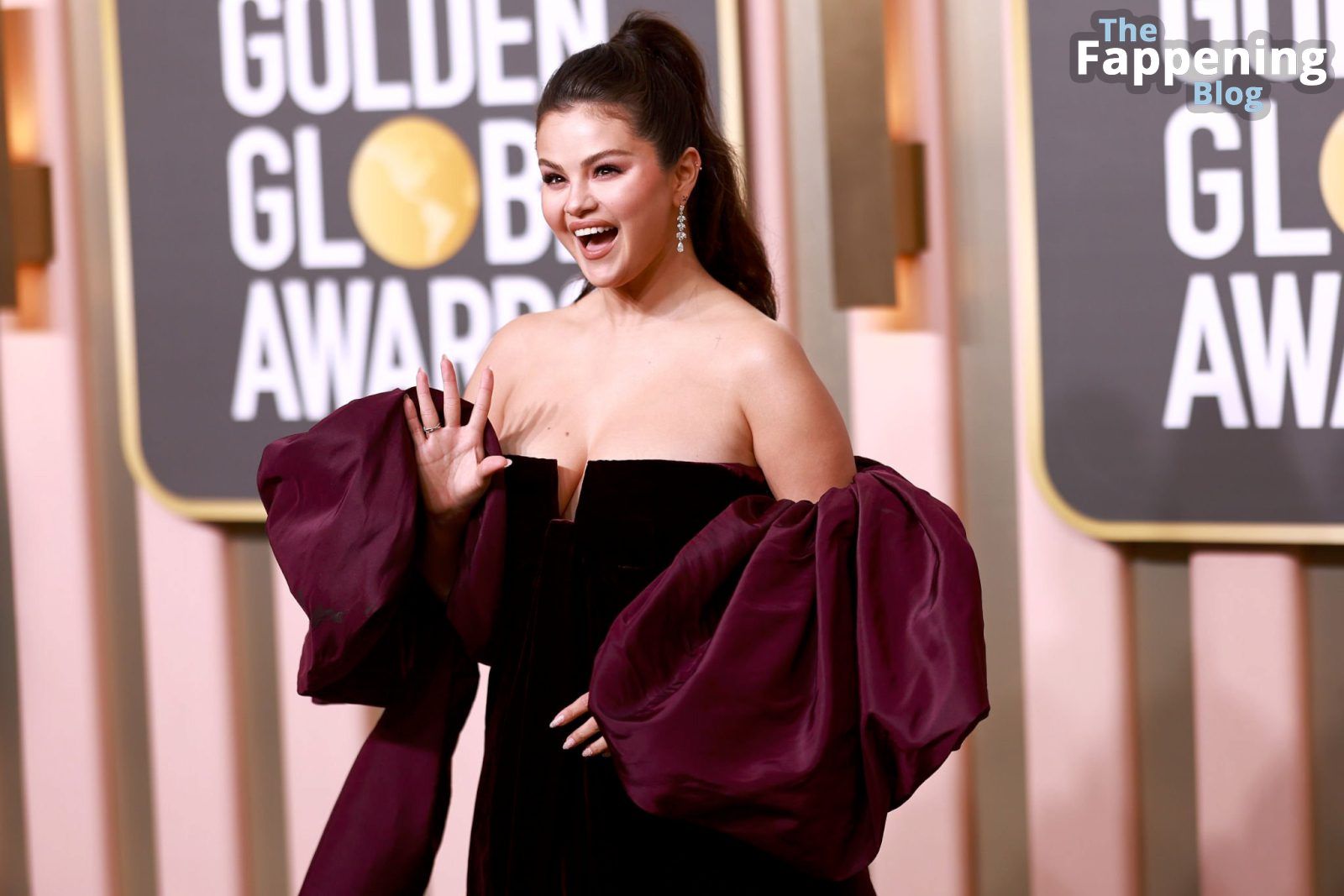 Cantante y La Estrella de The Fappening Selena Gomez posa en la alfombra roja en la 80ª Entrega Anual de los Globos de Oro en el Beverly Hilton en Beverly Hills, 01/10/2023.