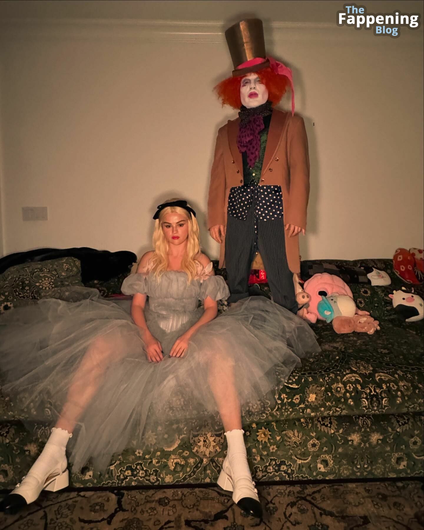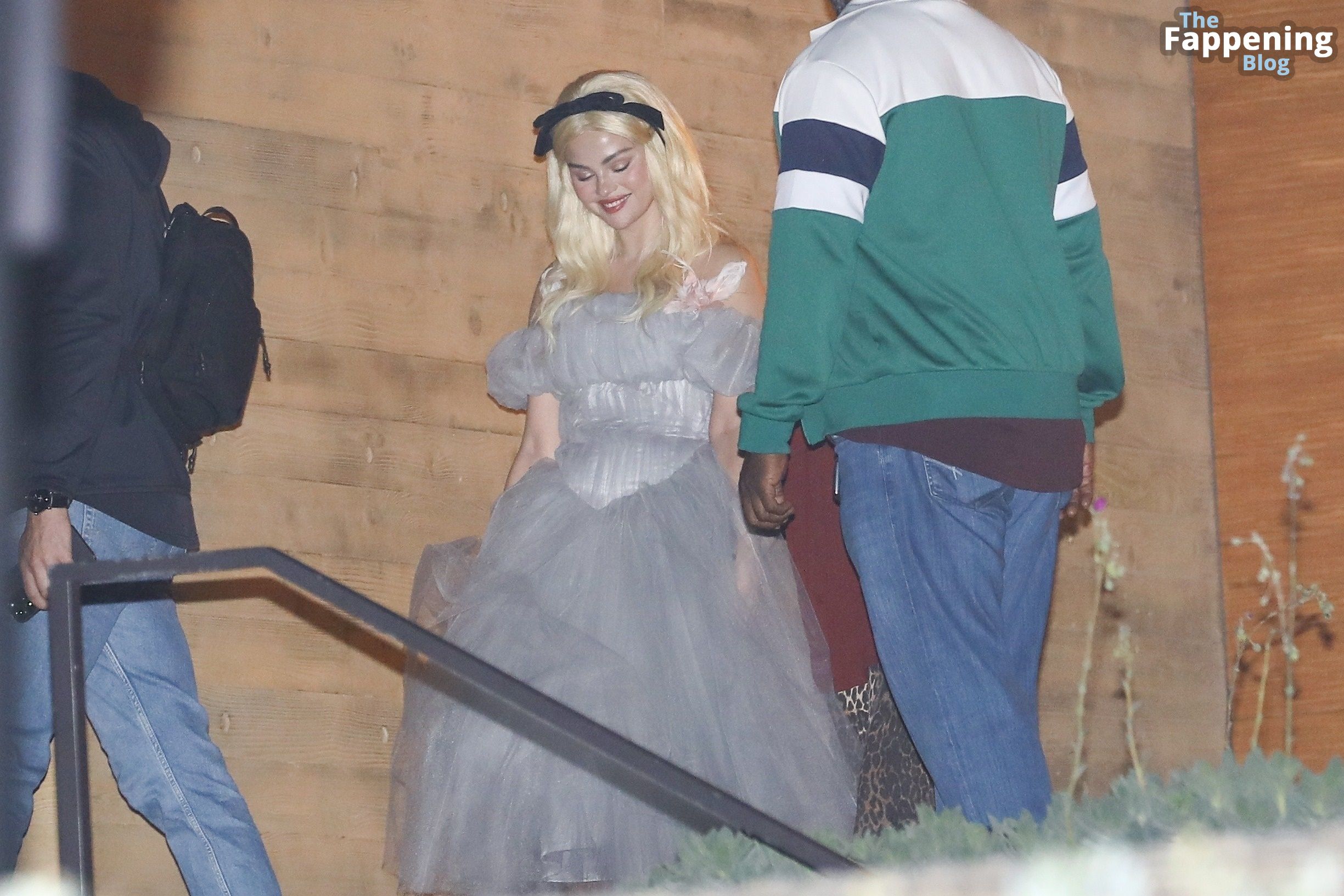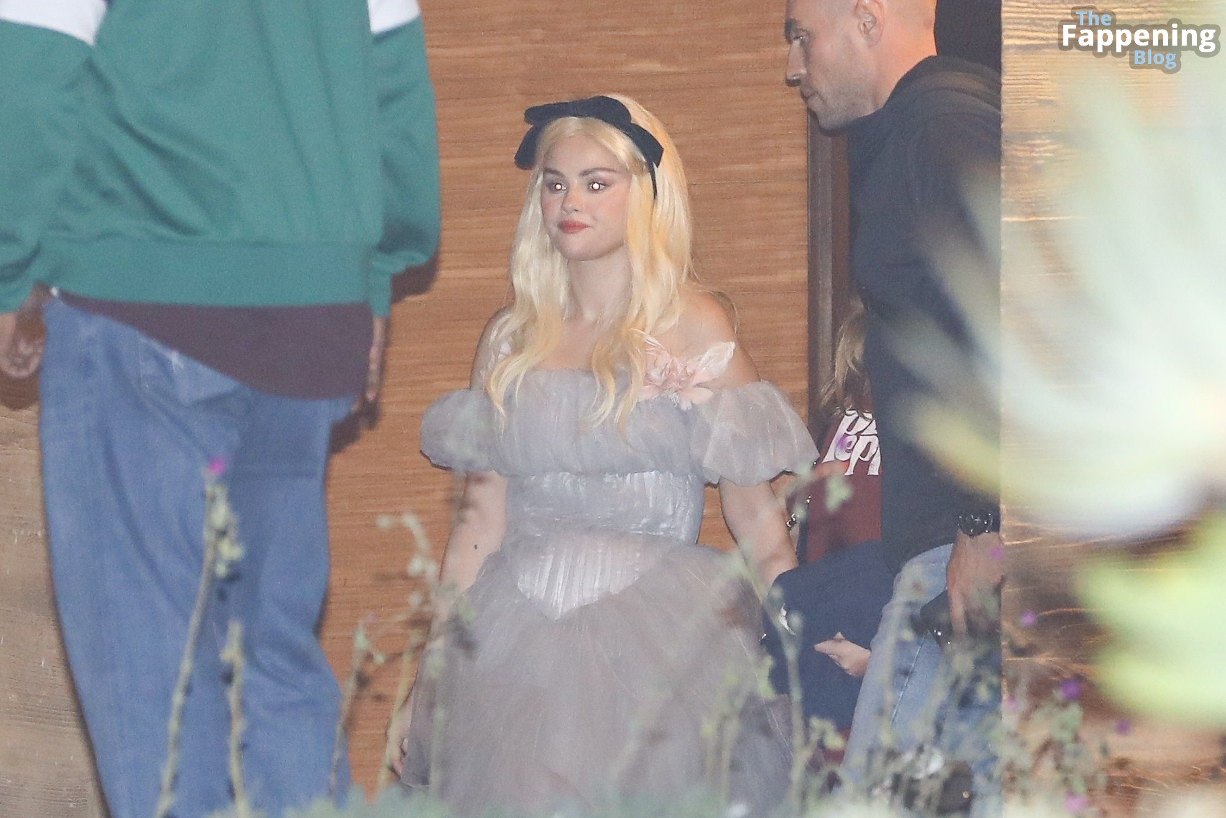 Selena Gomez luce impresionante con un atrevido conjunto de Alicia en el País de las Maravillas en Nobu, mostrando su generoso escote y subiendo la temperatura para Halloween.