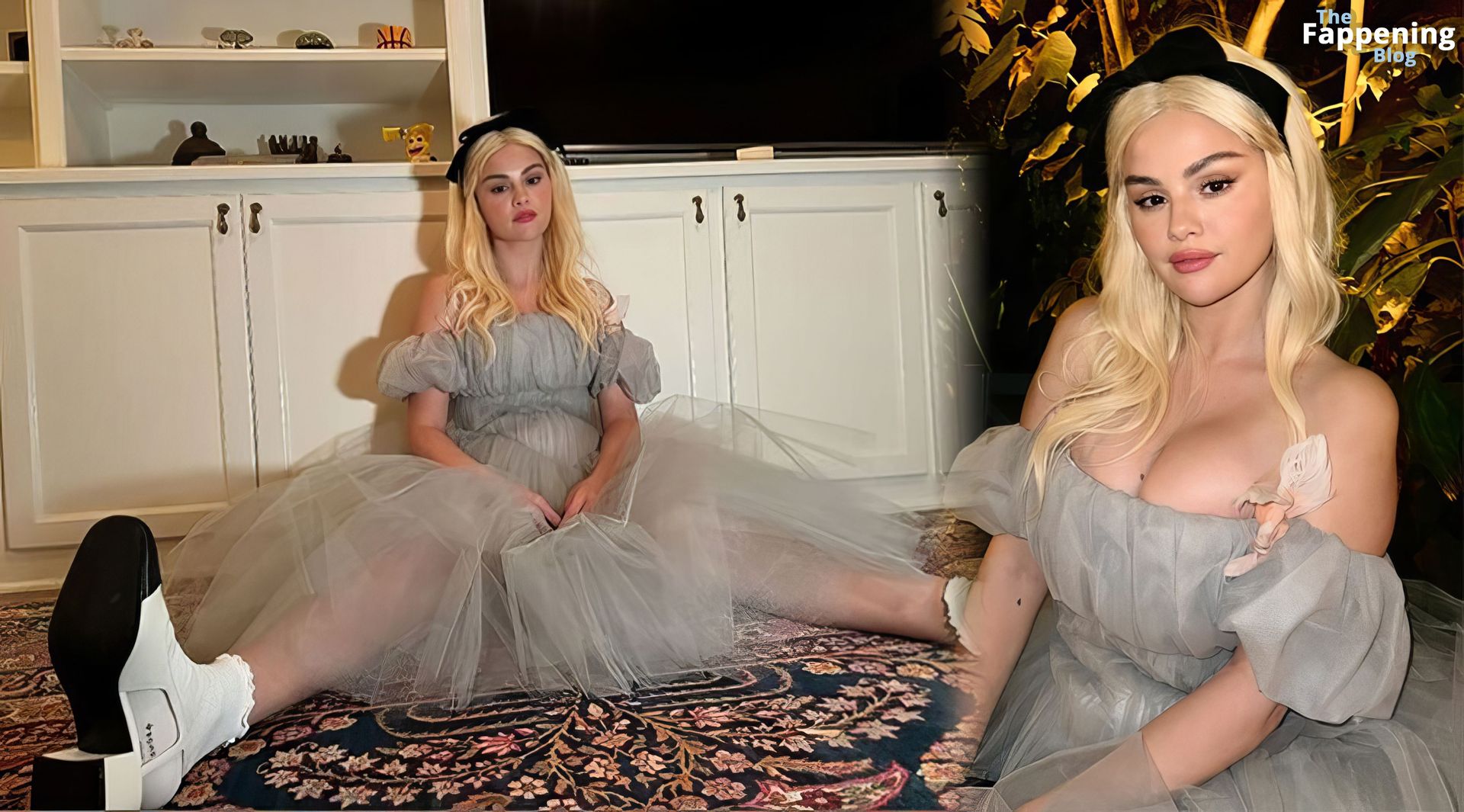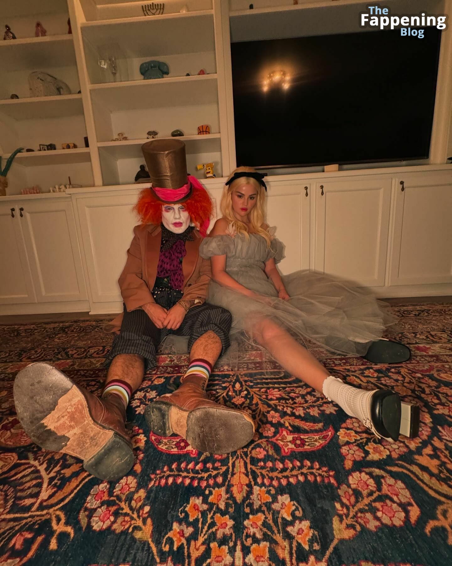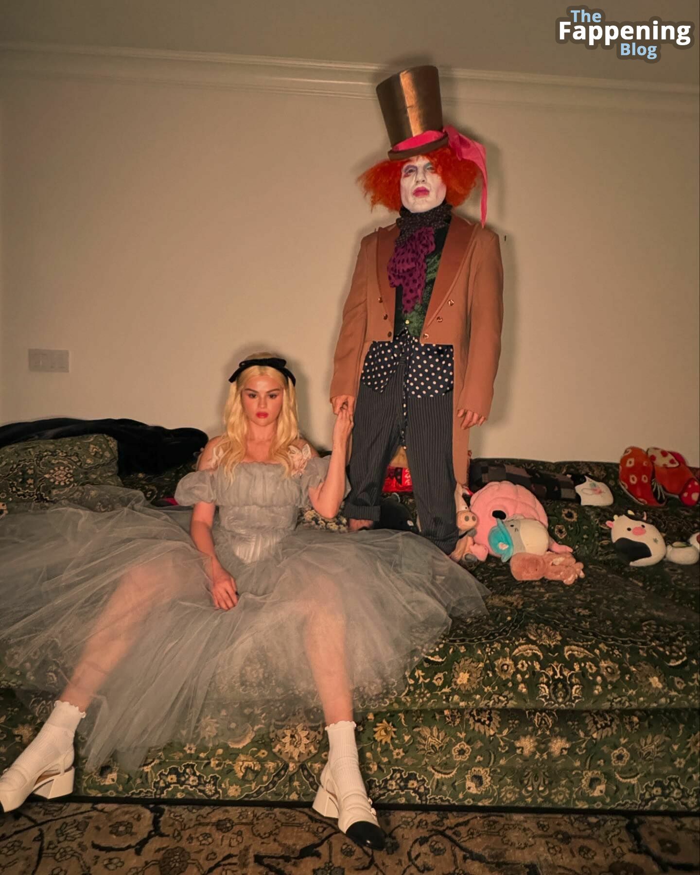 Selena Gomez luce impresionante con un atrevido conjunto de Alicia en el País de las Maravillas en Nobu, mostrando su generoso escote y subiendo la temperatura para Halloween.