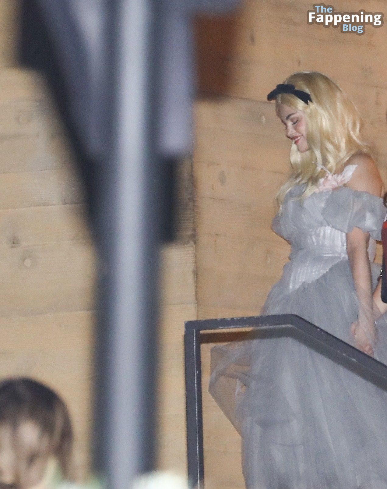 La estrella de The Fappening, cantante y actriz, luciendo un vestido de tul con volantes en capas y una peluca rubia con una cinta negra, fue vista saliendo de la cena en Nobu en Malibu con su hermana, viéndose absolutamente espectacular en su disfraz.