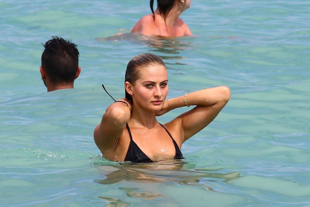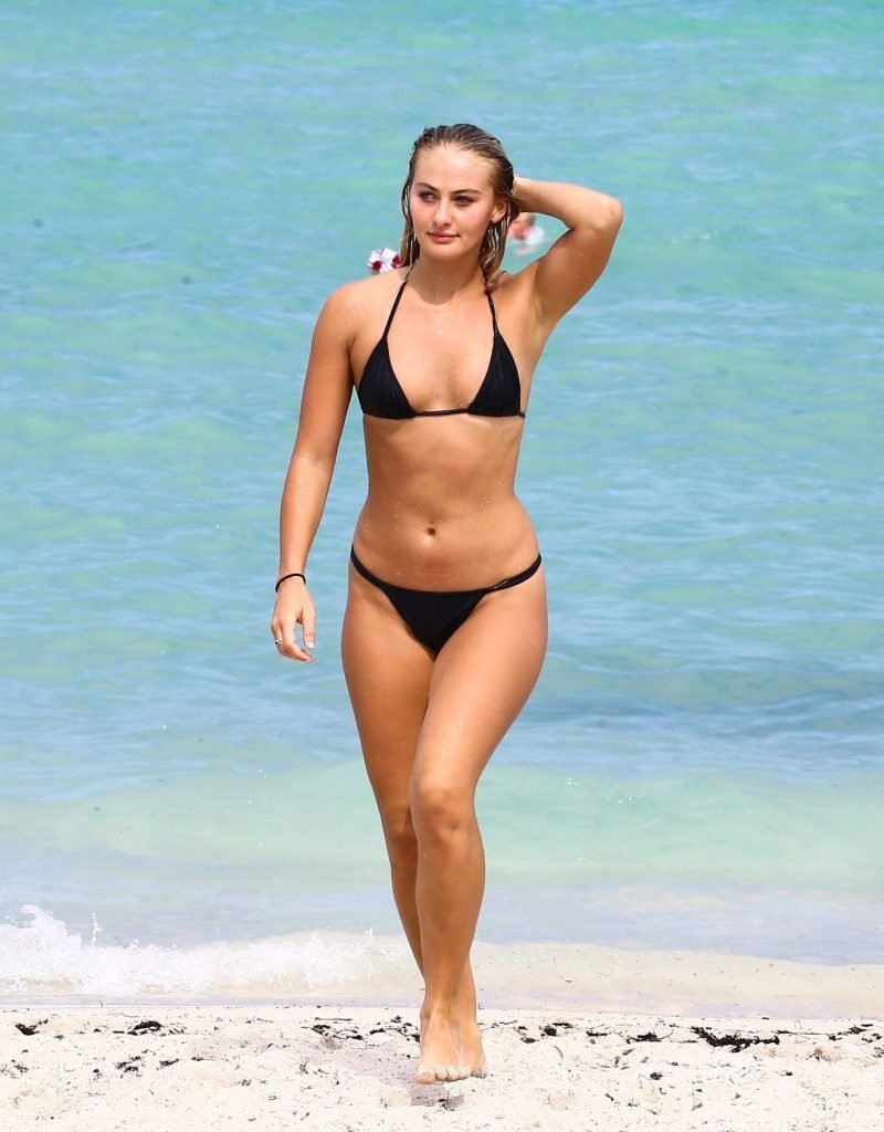 La modelo de 24 años Selena Weber muestra su perfecto cuerpo en bikini en la playa de Miami, 02/08/2017.