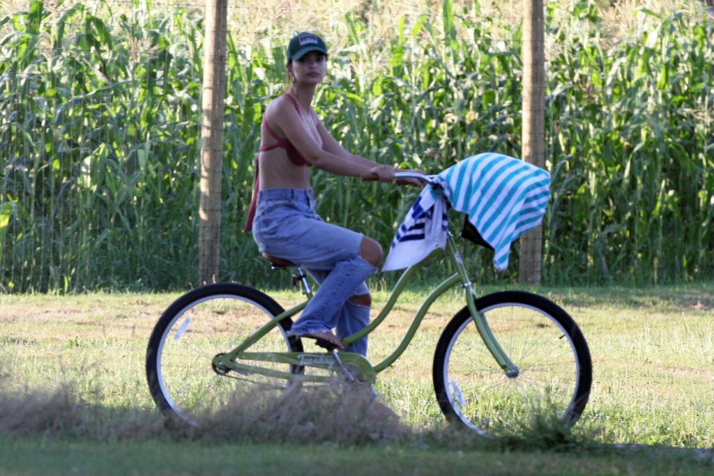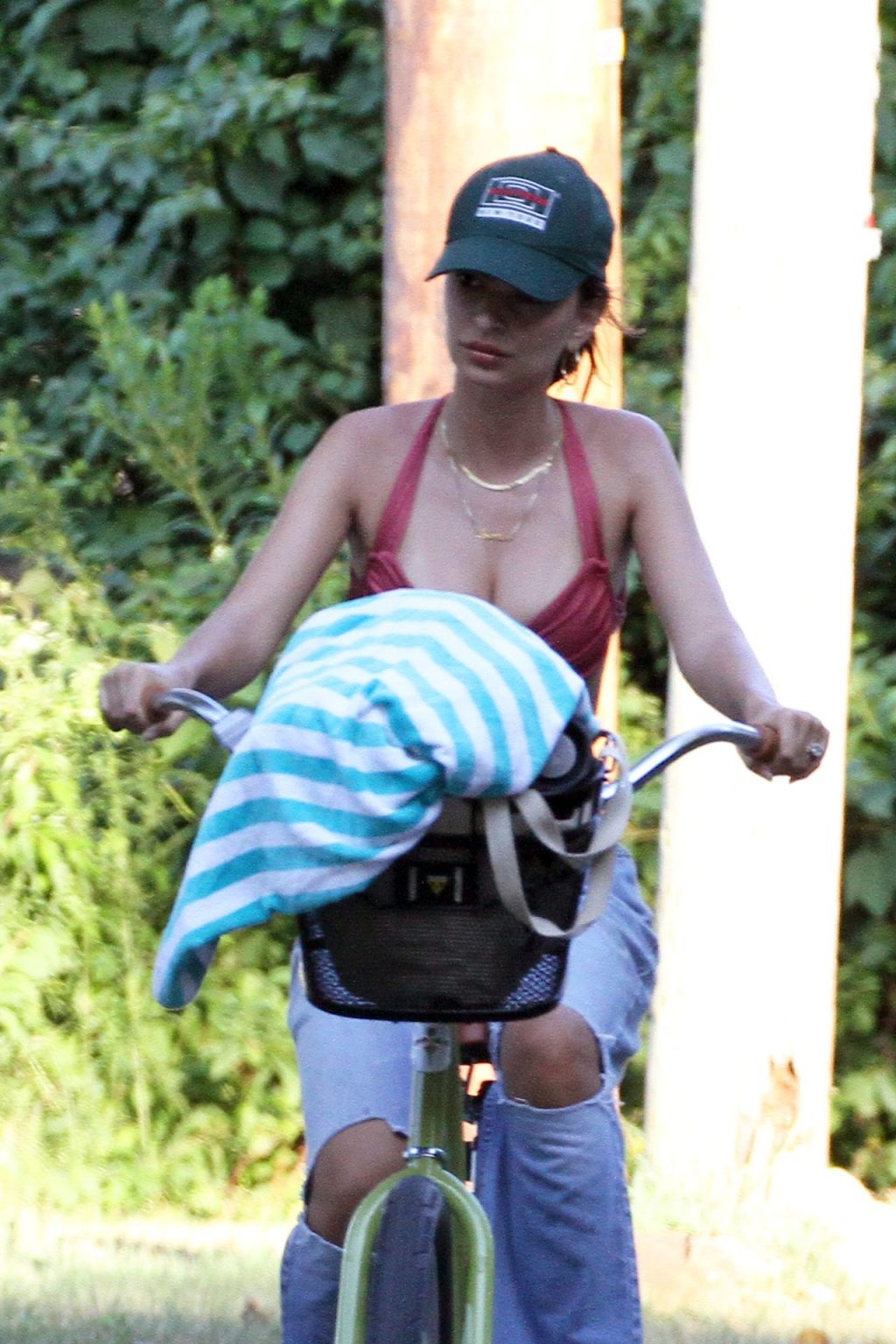 La estrella de The Fappening Emily Ratajkowski sale a pasear en bicicleta por The Hamptons, Nueva York, después de pasar parte del día en la playa, 08/05/2020.